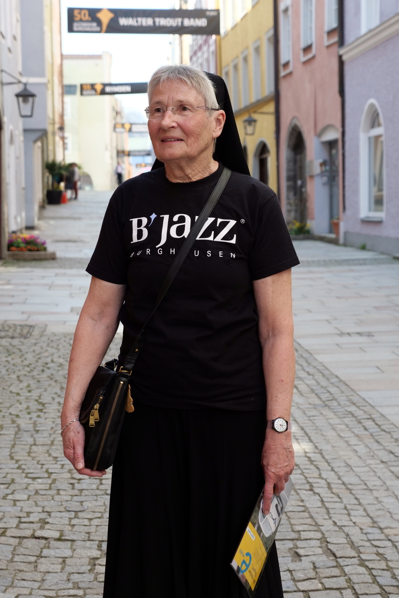 Last not least zählen in Burghausen neben den vielen Konzerten und Veranstaltungen all die wunderbaren Begegnungen und Gespräche am Rande des Festivals – denn Jazz bewegt! In der Fußgängerzone begegnete mir Schwester Carmen von der Altöttinger Kongregation der Schwestern vom Heiligen Kreuz im dezenten schwarzen Burghausener Jazz T-Shirt: „Ich mag Jazz und stehe dazu!“ Das ist, was den Jazz ausmacht: Weitblick, Offenheit und Toleranz, der ohne Grenzen verbindet!