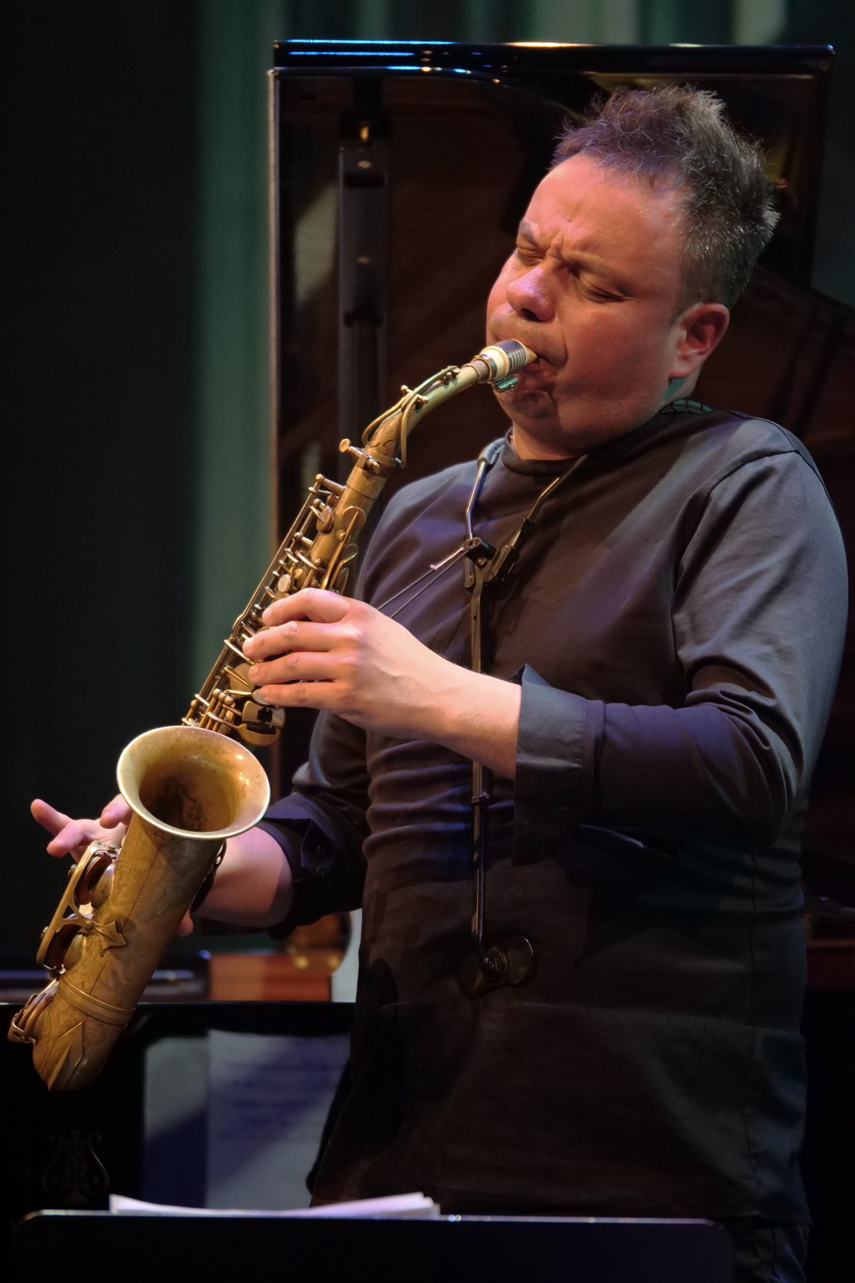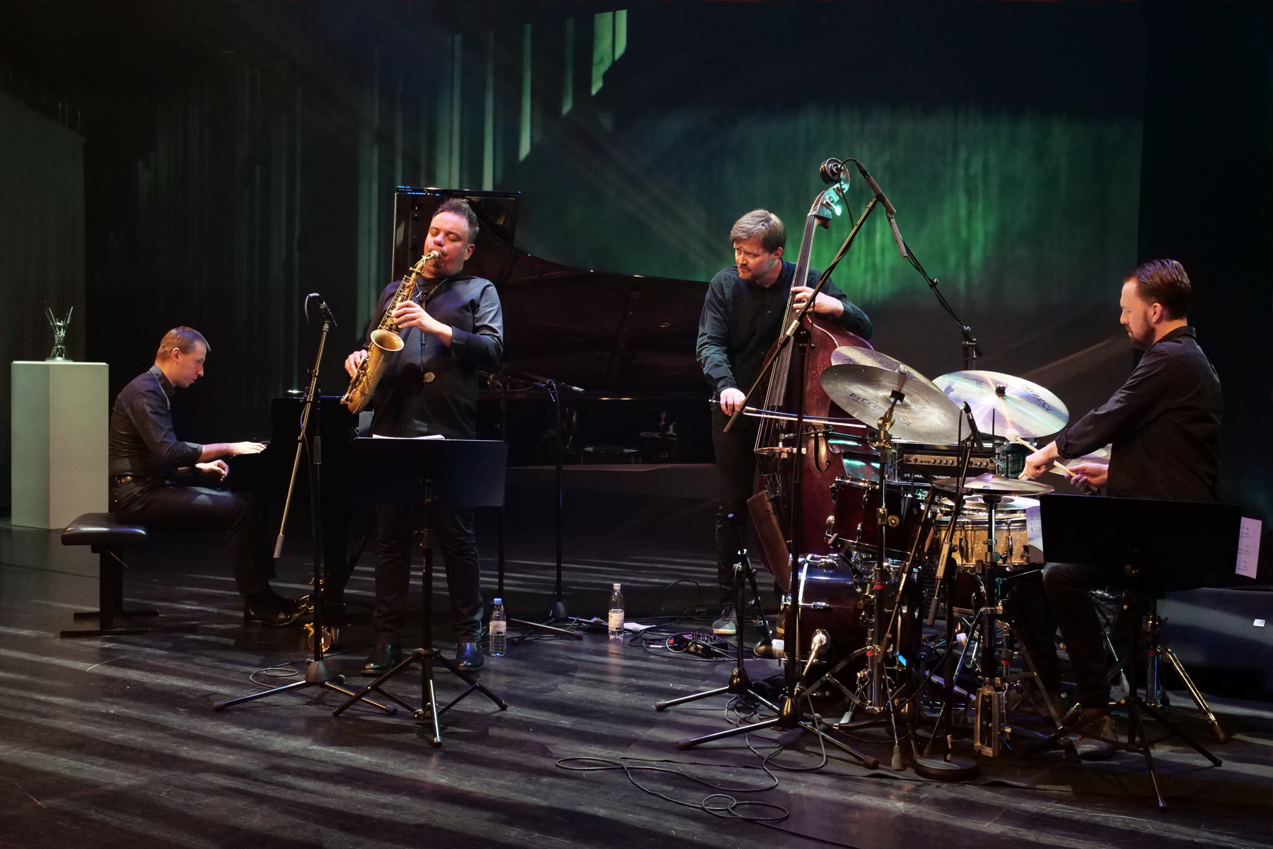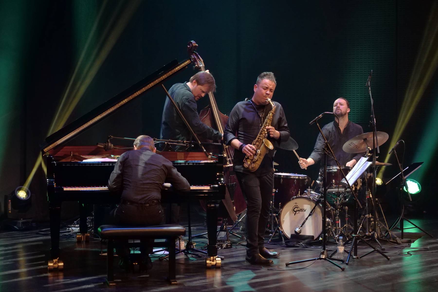 München, 4. Mai 2019. „Saxophone Worlds“ verwandelte das Auditorium der BMW Welt zu einem Jazz Erlebnis der besonderen Art. Das Maciej Obara Quartett mit Dominik Wania am Klavier, Ole Morten Vagan am Bass und Gard Nilssen am Schlagzeug konnte sich gegen das Rudresh Mahanthappa Quintett durchsetzen und den Wettbewerb für sich entscheiden.