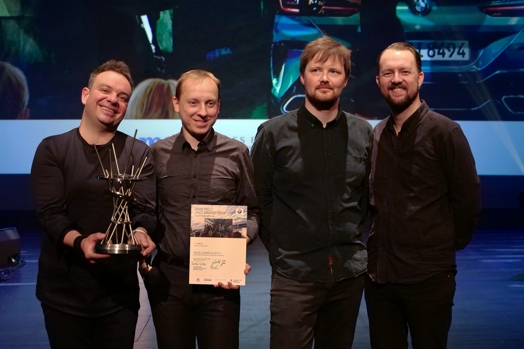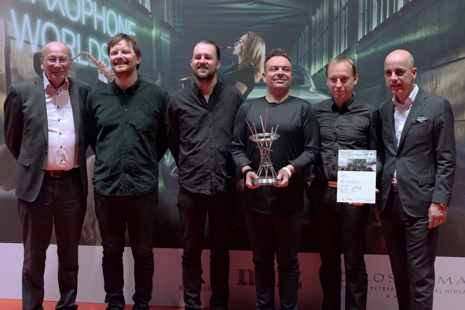 Dr. Nicolas Peter, Mitglied des Vorstands der BMW AG, Finanzen, überreichte gemeinsam mit dem Kulturreferenten der Landeshauptstadt München, Dr. Hans-Georg Küppers, die eigens von BMW Design entworfene Trophäe an die Gewinner. Um die musikalisch herausragende Performance beider Ensembles zu untermalen, wurden sie jeweils mit einem Preisgeld ausgezeichnet. Das Maciej Obara erhielt 10.000 Euro, während sich die zweitplatzierte Band, das Rudresh Mahanthappa Quintet, über 5.000 Euro freuen durfte.
