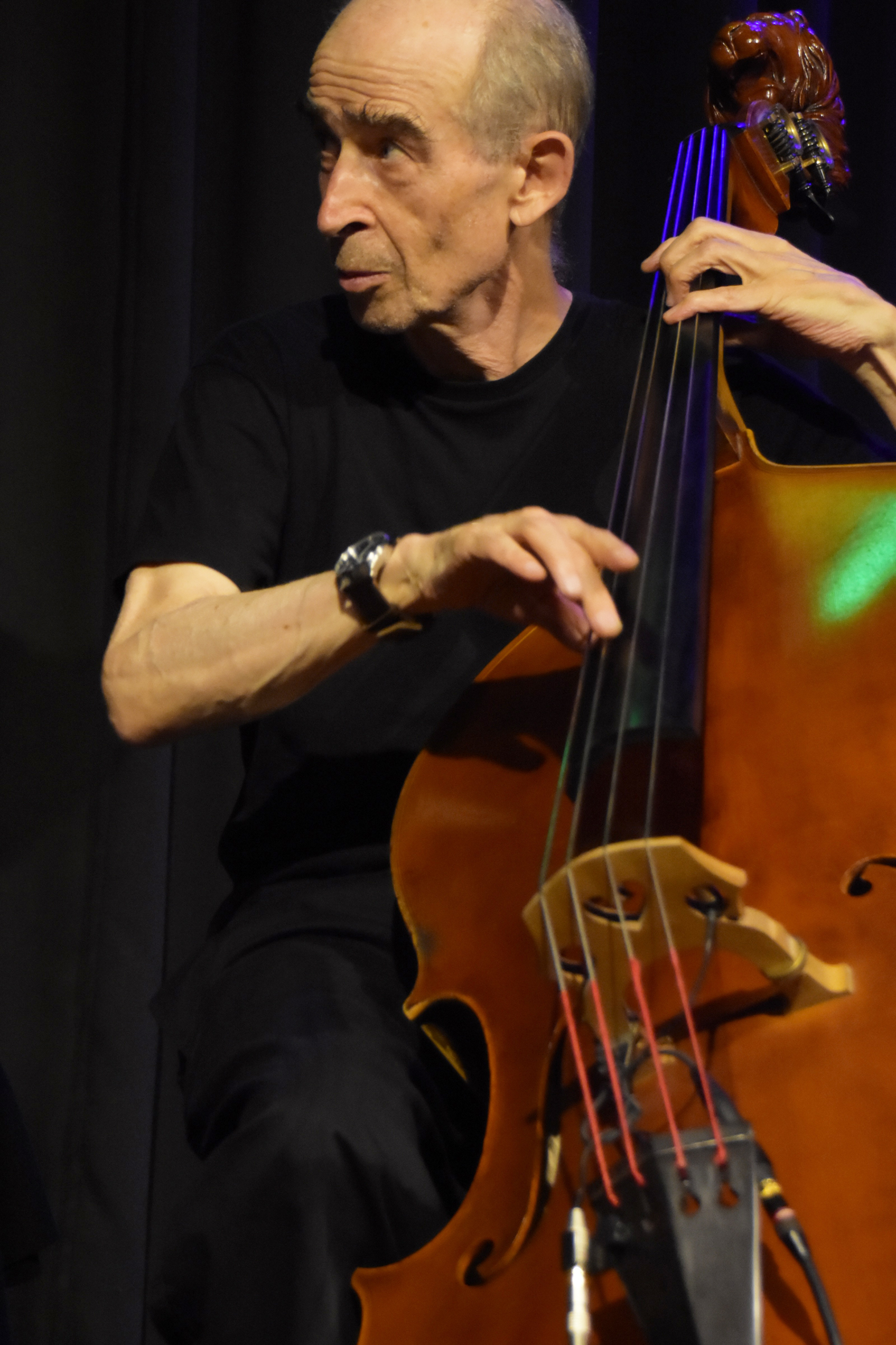 Fast ein eigener Kosmos, entfaltet der Holzbläser ein lyrisch-zartes Klanggewebe voller Poesie, das bis an den Rand der Hörbarkeit geht. Dann wieder wird er schrill, kratzbürstig, spröde und herausfordernd laut, korrespondiert dabei auf eigenwillig exzentrische Weise mit dem viel körperlichen Spiel Christy Dorans auf der elektrischen Gitarre. In manchen Momenten lässt sich nicht mehr klar unterscheiden, ob einzelne Klänge und Soundfarben vom Gitarristen Doran erzeugt sind oder aus Leimgrubers Saxofon hervorbrechen. Gemeinsam mit dem 70-jährigen Kontrabassisten Bobby Burri, der noch heute als Dozent an der Hochschule in Luzern Jazzbass lehrt, und Fredy Studer, einem Magier am herkömmlichen Drumset, entwickeln sie aus dem Moment ihre Musik, die von Anfang bis Ende vor allem eines ist – höllisch spannend.