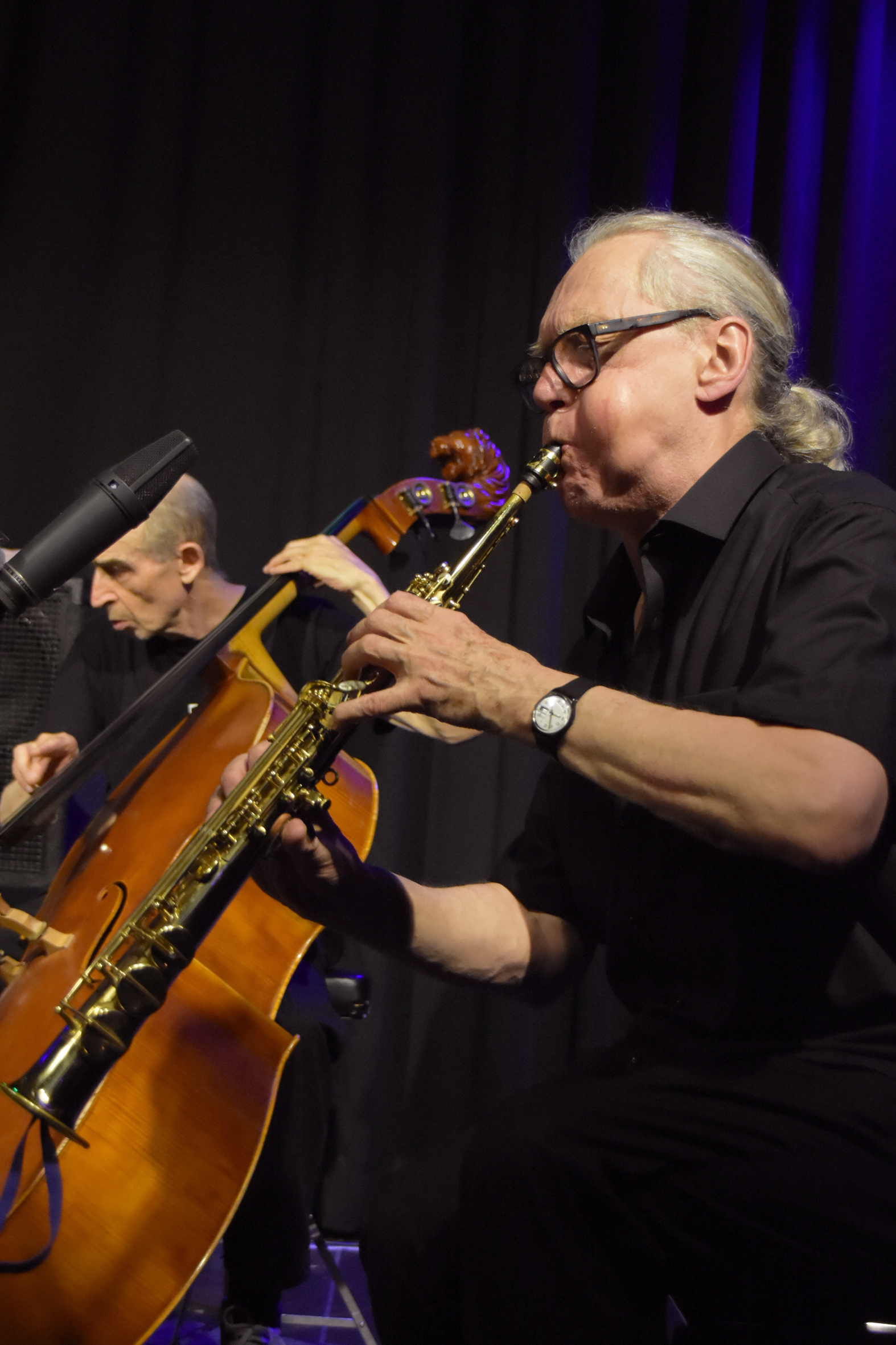 Es sei das beste gewesen, was sie seit langem gehört habe. Etwas unsicher, aber mit leuchtenden Augen, hält die junge Frau Urs Leimgruber und Christy Doran nach deren Auftritt mit OM im Leeren Beutel ein abgelöstes Plakat zum Signieren hin. Sie spiele selbst Musik, erklärt sie und antwortet auf die Frage nach ihrem Alter: „18 Jahre.“ „So muss es sein“, strahlt sie darauf der 67-jährige Saxofonist an, „die Jugend hört unsere Musik“. Damit übertreibt der grauhaarige Musiker mit dem adretten Pferdeschwanz zwar leicht, denn das Gros der Zuhörer im Konzertraum gehört eindeutig älteren Semestern an. Vermutlich haben einige schon die erste Auflage des Quartetts in den späten 70er- oder frühen 80er-Jahren miterlebt.