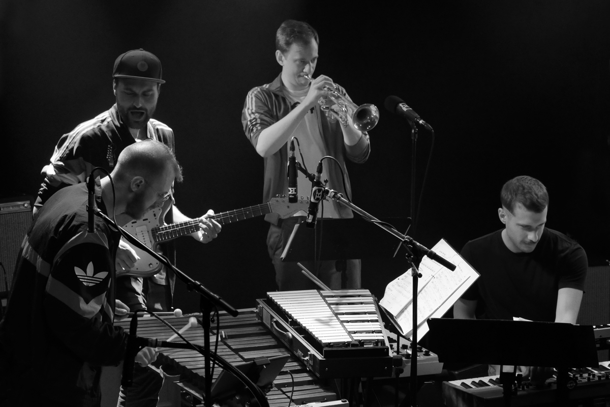 Wenn die vier Jungs von TOYTOY dann mal aufdrehen, rappelt es erst einmal gehörig im Club! Diesmal haben sie sich mit Unterstützung von Jan Kaiser an der Trompete und dem Keyboarder Yannis Anft das Kultalbum „Bambule“ von den ABSOLUTE BEGINNERS im Hamburger Musikclub „Knust“ vorgenommen. Ein absolutes Heimspiel kann man dazu sagen und ein Gelungenes noch obendrein. Das 1998 aufgenommene Album ist nach wie vor state of the art in Sachen Hamburger Hip-Hop Schule und bietet für TOYTOY erstklassige Möglichkeiten die Songs mit ihrem versiert kompromisslosen Spiel aufzumotzen und umzumodeln. Dabei lassen sie sich von Anfang an nicht auf eine Richtung festnageln. Sowohl Jazz-Fusion als auch smoother Funk oder Rockelemente fließen ein, gewürzt, wie sollte es bei „Bambule“ auch anders sein neben all-that-jazz-thing-sounds, mit glasklaren Hip-Hop Elementen. Zwischendurch wird mal eben Ellingtons „Caravan“ eingeflochten und last not least noch sessionmäßig gejammt. TOYTOY spielt, improvisiert, verbreitet dabei irrsinnig gute Stimmung und setzt ganz nebenbei einer der bedeutendsten Hamburger Possen ein musikalisches Denkmal. Allein Songs wie „Hammerhart“, „Das Boot“ oder „Liebes Lied“ zeigen auch nach mehr als zwanzig Jahren, welche Strahlkraft sie nicht nur im Hip-Hop, sondern auch heute noch in diesem speziellen Kontext haben.