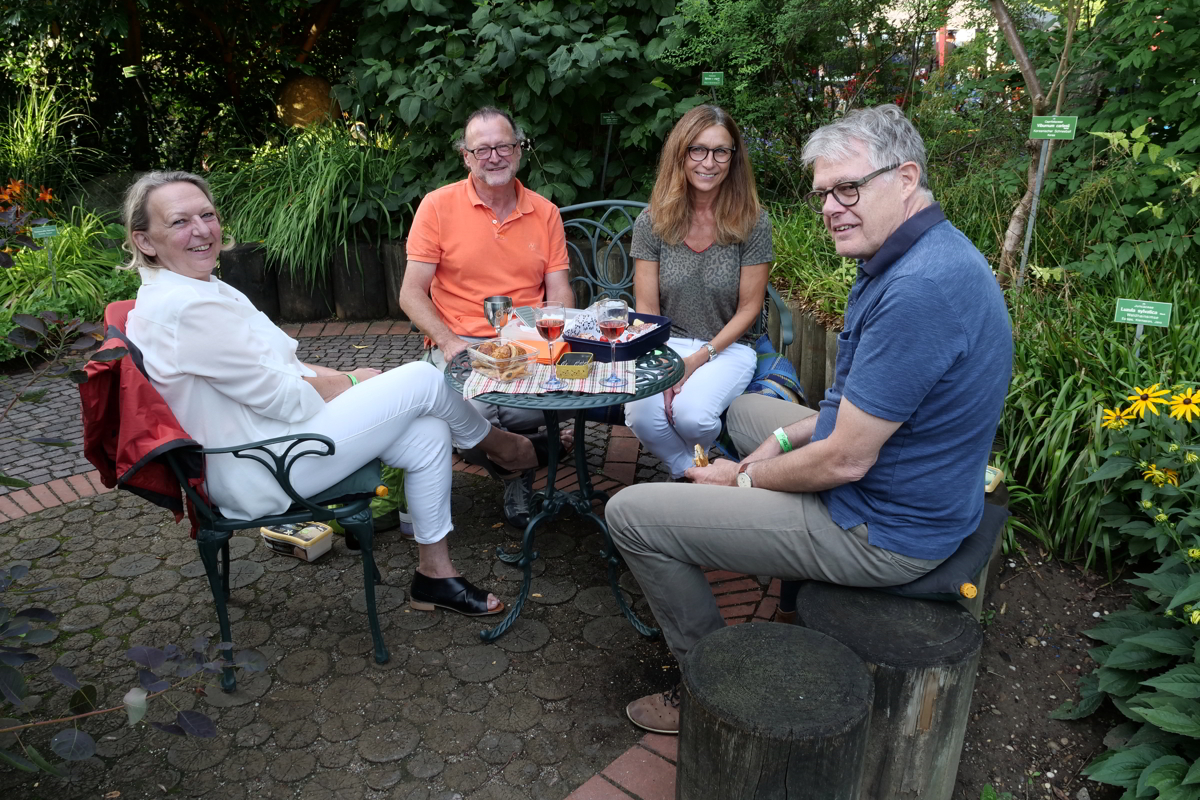 Was macht die „Sommernachtskonzerte im Botanischen Garten“ des Augsburger Jazzsommers im Vergleich zu anderen Jazzfestivals sonst noch einzigartig? Diese Frage ist schnell beantwortet: das Miteinander des Publikums unter sich und mit den Musikern. Wenn man sich zum Jazzsommer aufmacht, richtet man sich entsprechend darauf ein. Sitzkissen, Decken, eine Jacke für kühlere Abende, vor allem aber ein Korb mit Getränken und gutem Essen ist enorm wichtig. Man trifft sich beim Festival mit Freunden und Bekannten, kommuniziert miteinander, isst und trinkt zusammen, genießt bereits die gute Stimmung vor dem Konzert, die erstklassige Atmosphäre und dann die Auftritte internationaler Stars. Die wiederum sind durch die Bank begeistert vom Ambiente, kommen in den Pausen mit dem Publikum ins Gespräch und tauschen sich gern und bereitwillig aus. Das ist das Besondere an dem Augsburger Jazzsommer!