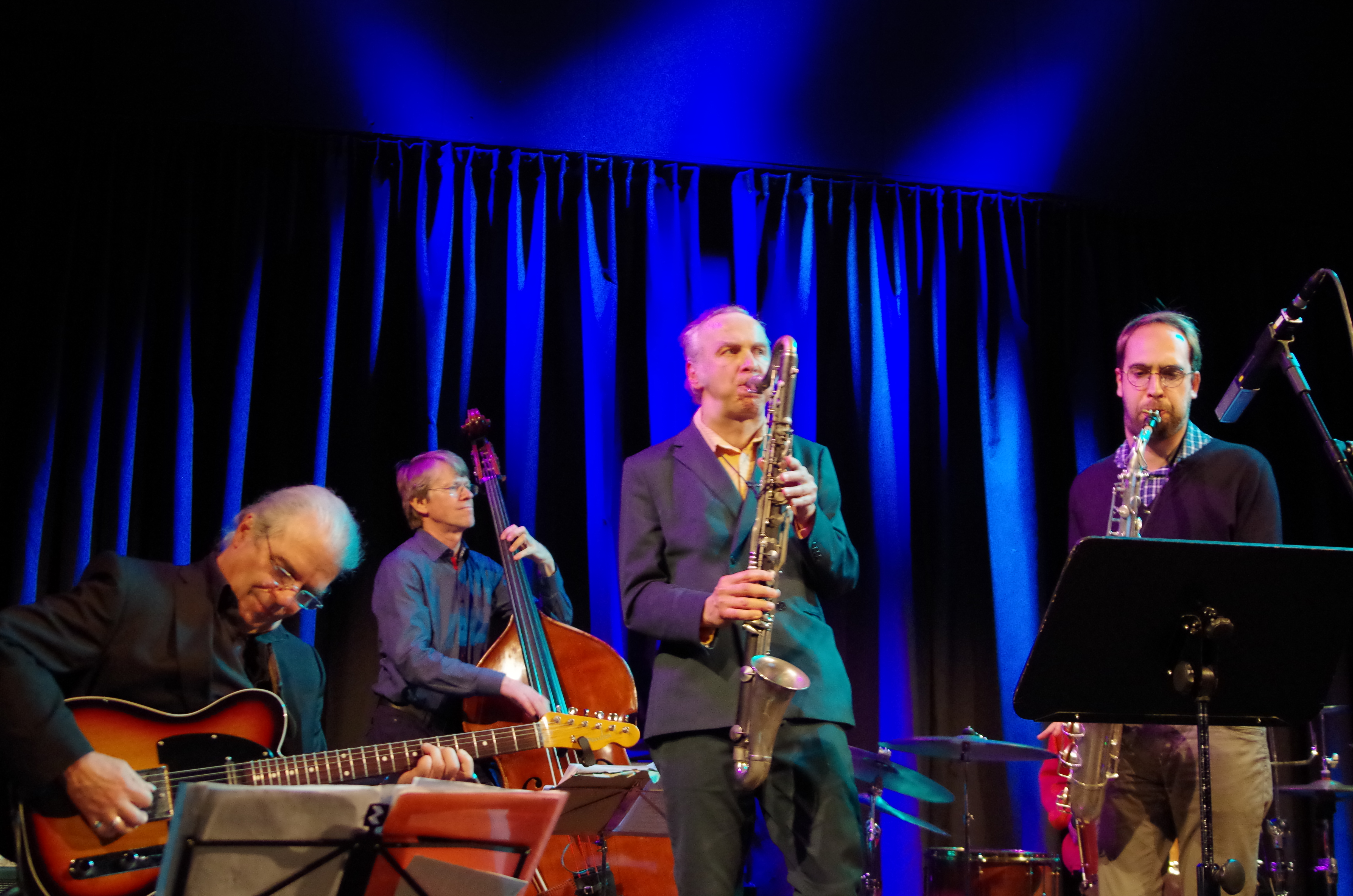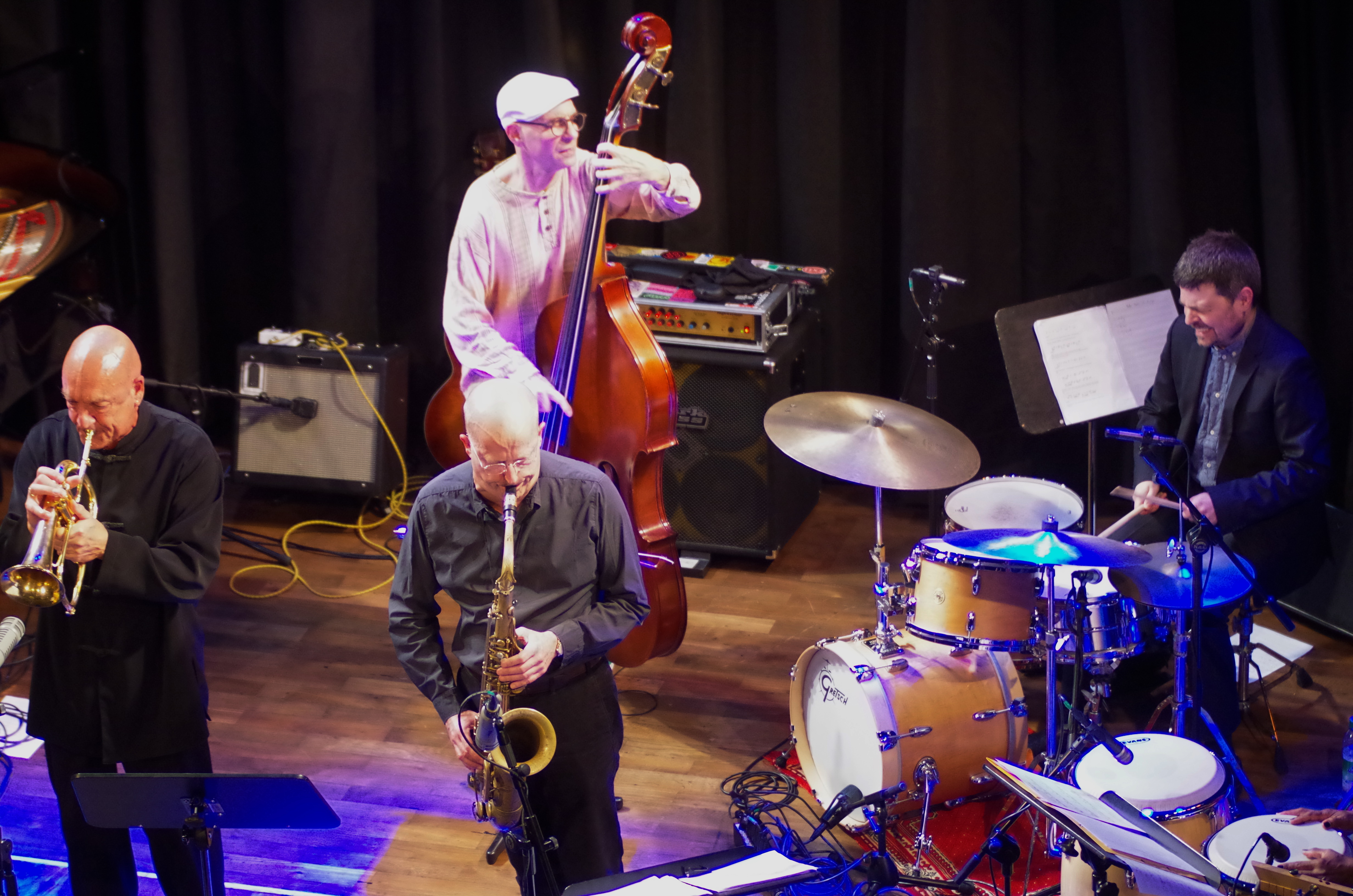 Einige der Musiker der vier Bands, die das Festival 2019 eröffneten, waren auch schon in den Anfangsjahren dabei. Schließlich wollten und wollen sich die Jazzmusiker mit ihrer Initiative zusätzliche Auftrittsmöglichkeiten verschaffen, wenn diese auch bei weitem nicht den Vereinsmitgliedern und längst auch nicht mehr nur Münchener Musikern vorbehalten sind. Diese standen und stehen aber beim Jubiläum eindeutig im Fokus. Zum Auftakt präsentierten drei Bands ihre bei ENJA Records erschienen Alben: Matthias Gmelin mit „Vibes Waltz“ (CD 9764) rhythmusbetonten Modern Jazz in Oktett-Besetzung mit Tim Collins, Jason Seizer, Diony Varìas Astudillo, Peter O’Mara und den Ex-Münchnern Johannes Faber, Emanuel Ruffler und Marc Abrams. Geoff Goodmans Programm „The Opposite Of What“ (ENJ 9678) mit Rudi Mahall, Matthieu Bordenave, Henning Sieverts und Bill Elgart bewegte sich zwischen moderner Jazztradition und Experiment und steckte und voller schöner Melodien, aber auch Überraschungen.