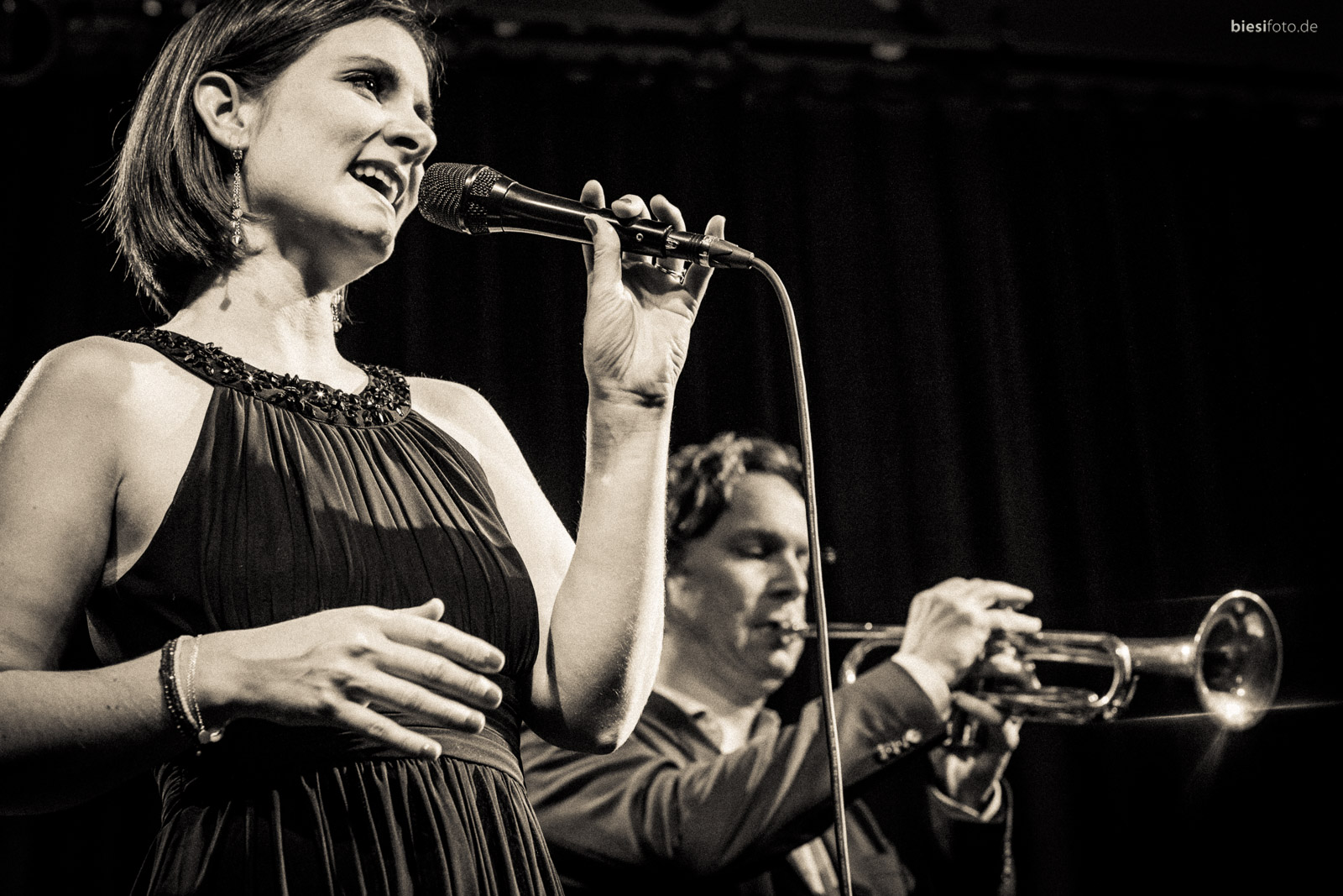 Barbara hat aber auch großen Respekt vor den Texten anderer Autoren, etwa deutscher Chansons aus der Zeit eines Theo Mackeben oder auch der Knef. Auf der 2016 bei JazzHausMusik erschienenen CD „eins und eins…“ mit der von Georg Ruby geleiteten experimentellen Band JassLab de Cologne (plus Markus Koch, tp, flgh; Sebastian Büscher, ts; Moritz Götzen, b; Vince Deckstein, dr) werden diese Texte allerdings auch ganz kräftig durch die Mangel gedreht, mit dem überraschenden Effekt, dass scheinbar abgedroschene Evergreens wie „Frauen sind keine Engel“ oder der berühmte noch in Berlin verbliebene Koffer oder auch die irgendwie doch längst verblühten roten Rosen der Knef einen neuen sprachlichen Sinn und frischen Glanz erhalten. Absolut hörenswert!