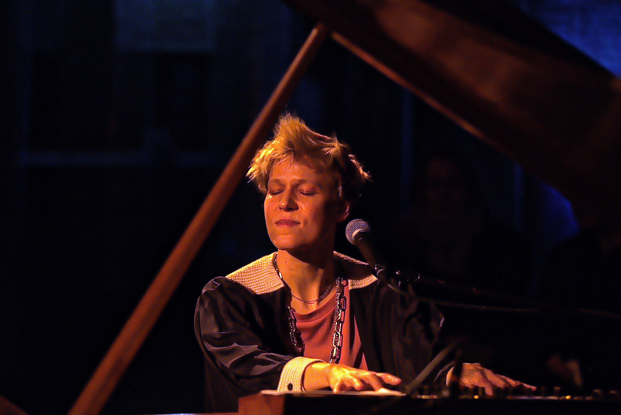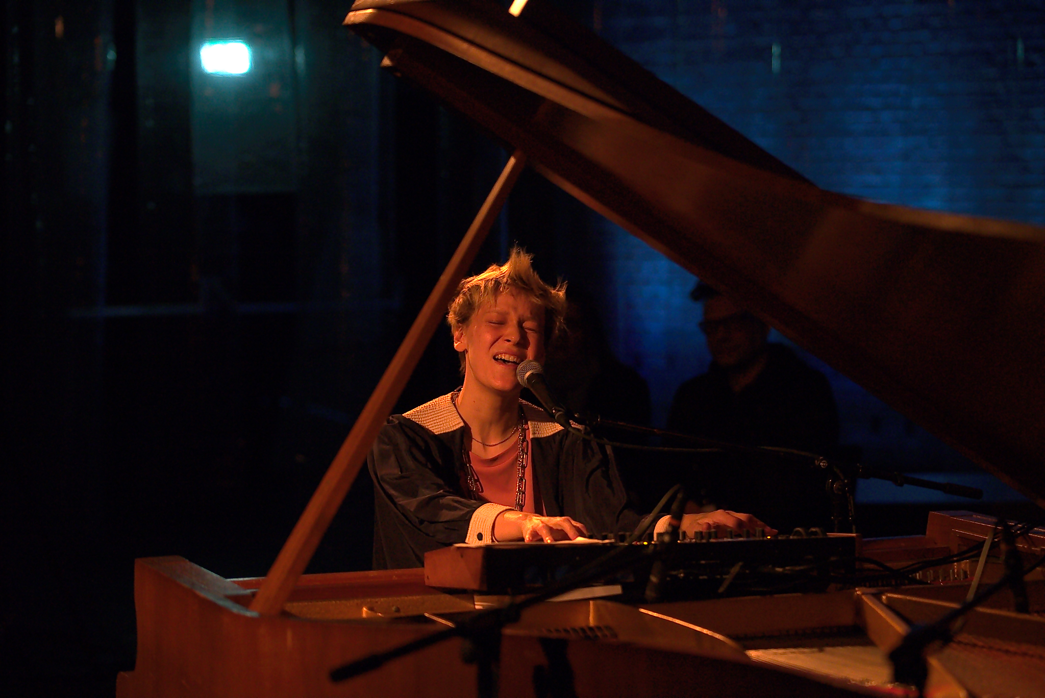 Der ehemalige Altarraum ist an diesem Abend mit durchsichtigem Zellophan umbaut, was – gepaart mit einer exquisiten Soundanlage – eine stylische Clublounge ergibt. Aufregend ist allein schon, wie sich in der atmosphärisch beeindruckenden Liveperformance an diesem Ort bei dieser zarten Person gleich vier mächtige Komponenten bündeln: Sie kann singen – und wie! Mit einer empfindsamen, manchmal brüchigen, durchaus an die Melancholie von Portishead erinnernden Stimme. Sie spielt Klavier – mit ausdrucksstark artikuliertem Anschlag. Simultan benutzt sie einen Synthesizer als das, was dieses Instrument sein will: Nicht als verschämtes Hilfsmittel, sondern als Lieferant expressiver, manchmal wabernd psychedelischer Flächenklänge.