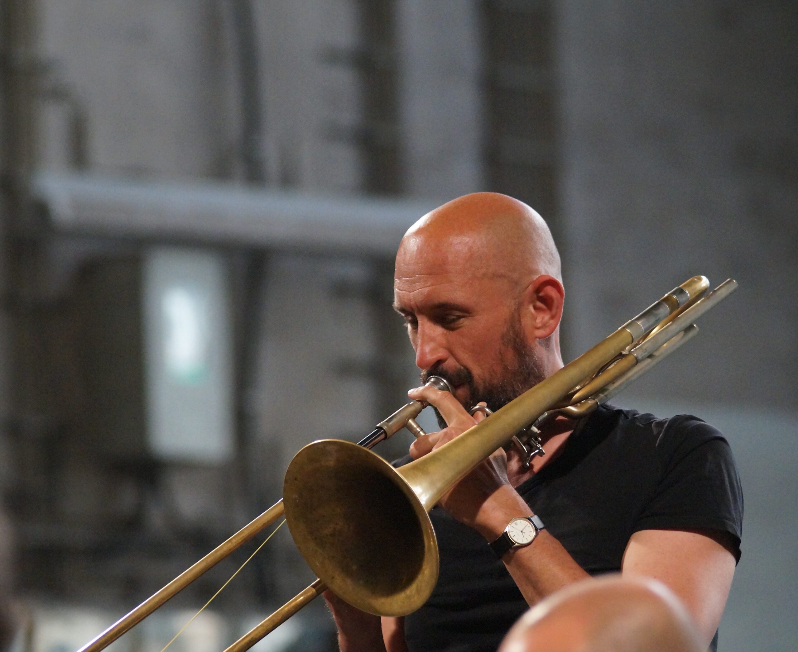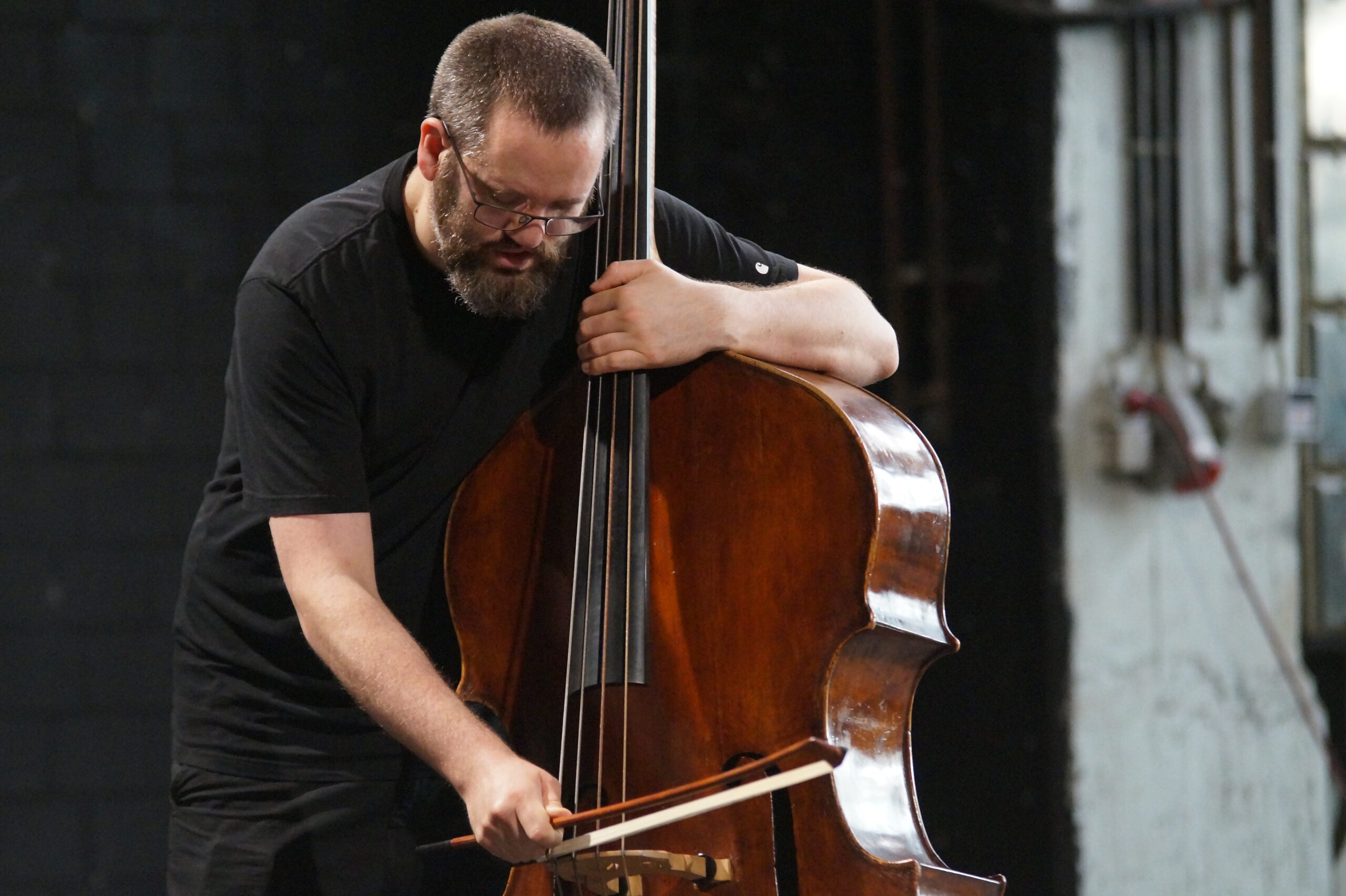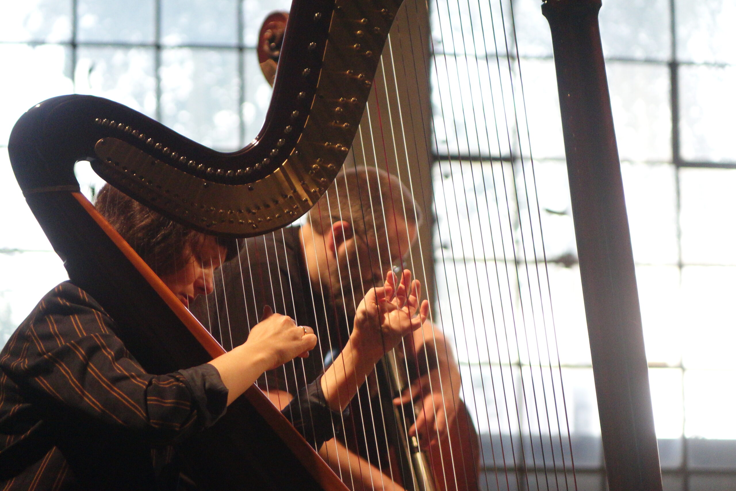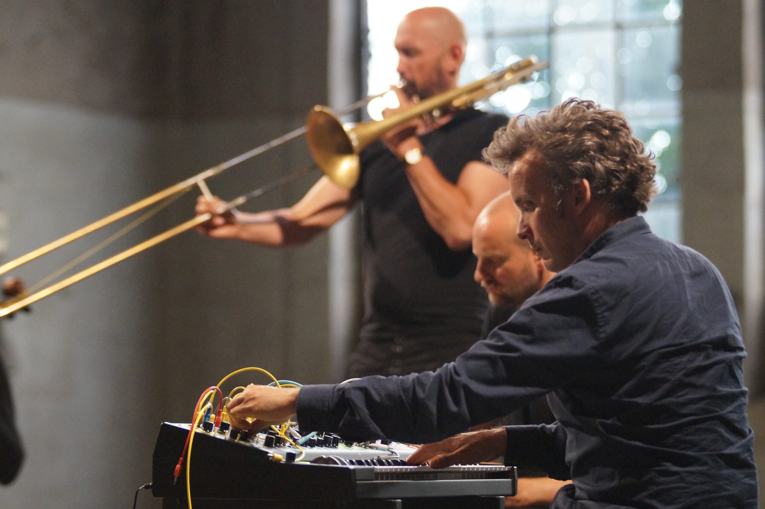 Aus dem Moment heraus agieren, auf Augenhöhe kommunizieren, sensibel interagieren und damit Grenzen aufheben, etwa zwischen “Musik” und Geräusch, zwischen Klang und Raum – darum geht es in der Titanick-Halle an diesem Abend. Letztere ist groß und karg. Die “Antworten” auf Cello, Harfe, Posaune, präparierter Snaredrum, Kontrabass und Synthesizer fallen bevorzugt leise und zerbrechlich aus. Ob da eine gewisse Ehrfurcht vor diesen Mauern, die sowieso durch nichts zum Einsturz gebracht werden können, mitschwingt?