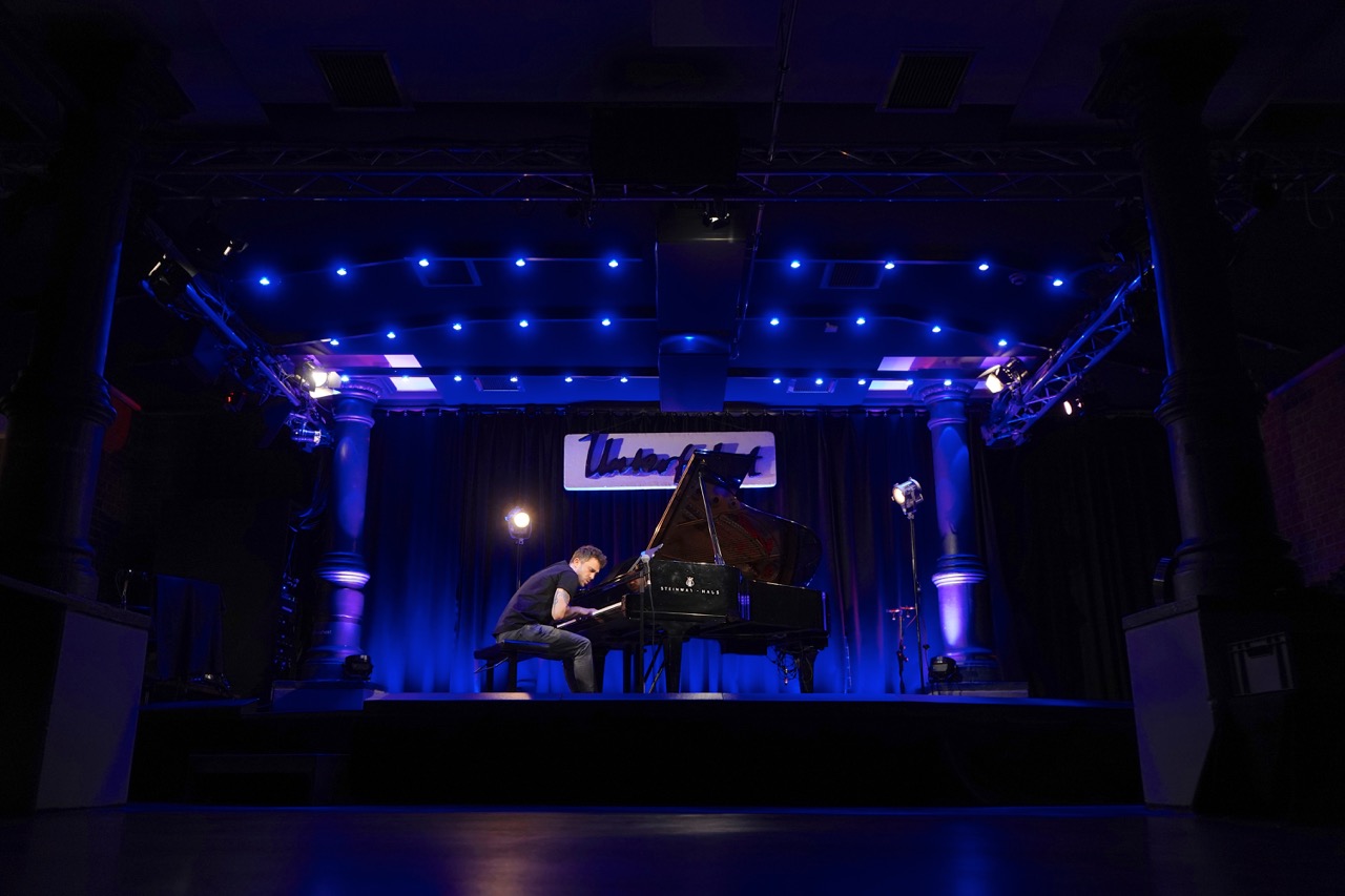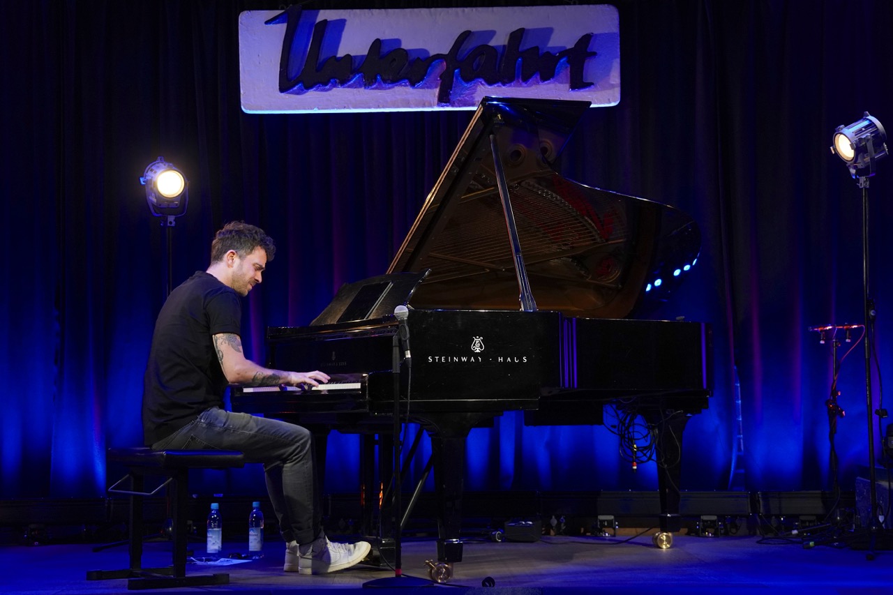 Die meisten Songs aber sind eigene Stücke, tendenziell im Balladenton und mit gestalterischen Eigenheiten, die er im Laufe der Jahre von Vorbildern wie Meister Mehldau übernommen und im Anschluss daran weiter entwickelt hat. Allhoff lässt die Stimmen kommunizieren, in fließenden linienbetonten Bewegungen, manchmal brandend, sich aufbäumend, zumeist aber in einem Wechselspiel melodisch fundierter Schwebungen. Man sei nackt, meint der hinterher, wenn man mit dem Solo-Klavier auf der Bühne antrete und habe wenig Chancen, seine Fehler zu verstecken. Von Unsicherheiten war auf der Bühne der Unterfahrt jedoch wenig zu spüren. Wenn überhaupt, dann nur der absurden Situation geschuldet, im leeren Club ein volles Haus zu imaginieren. Die paar Leute vom Technik-Team jedenfalls applaudierten, was die Hände hergaben. Und das Publikum im Stream schickte viele Herzen. (Mehr zum Stream-Programs auf der Website www.unterfahrt.de). Ralf Dombrowski