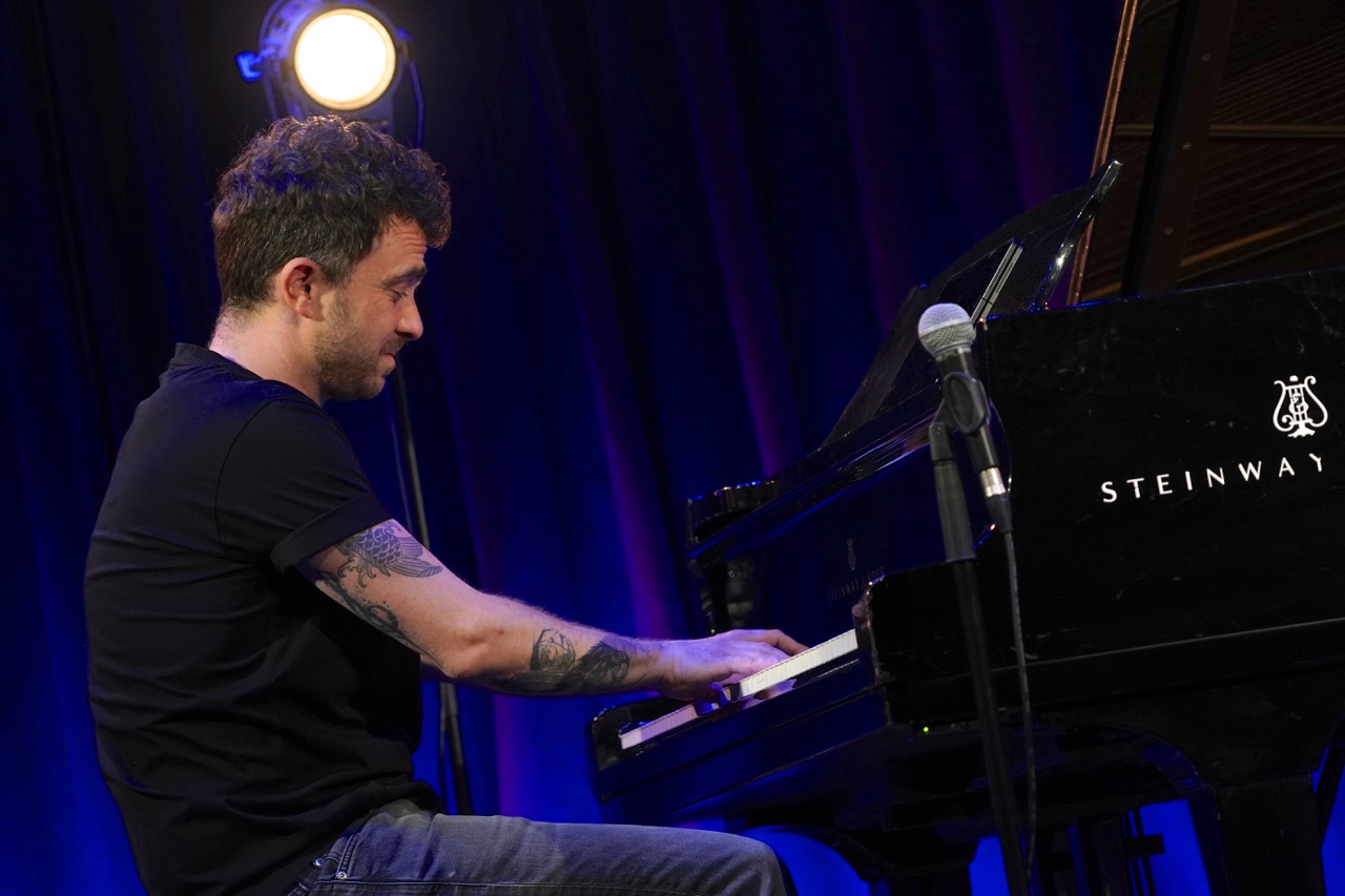 Da sitzt Tim Allhoff dann auf der Bühne, moderiert in den leeren Raum und widmet sich dem Steinway des Hauses, einerseits latent irritiert angesichts der Laborsituation, andererseits zutiefst beglückt, endlich einmal wieder in die Vollen gehen zu können. Es ist sein erstes Konzert seit einem halben Jahr und die lange Pause führt dazu, dass weit mehr neue Stücke als sonst im Programm landen, um ihre öffentliche Feuertaufe zu erhalten. Manche haben noch keinen Titel, sind erst vor einigen Tagen entstanden, andere existieren wie „Morla“ bereits seit einigen Wochen in Streaming-Varianten im Umfeld seiner Label-Arbeit. Mehrmals gönnt sich Allhoff auch Exkurse, beschleunigt und perforiert einen Beatles-Song, spielt abgelegenere Standards wie „In The Wee Small Hours“ oder „If I Should Loose You“ oder beschließt den Abend mit dem Satz einer Orgelsonate von Bach.