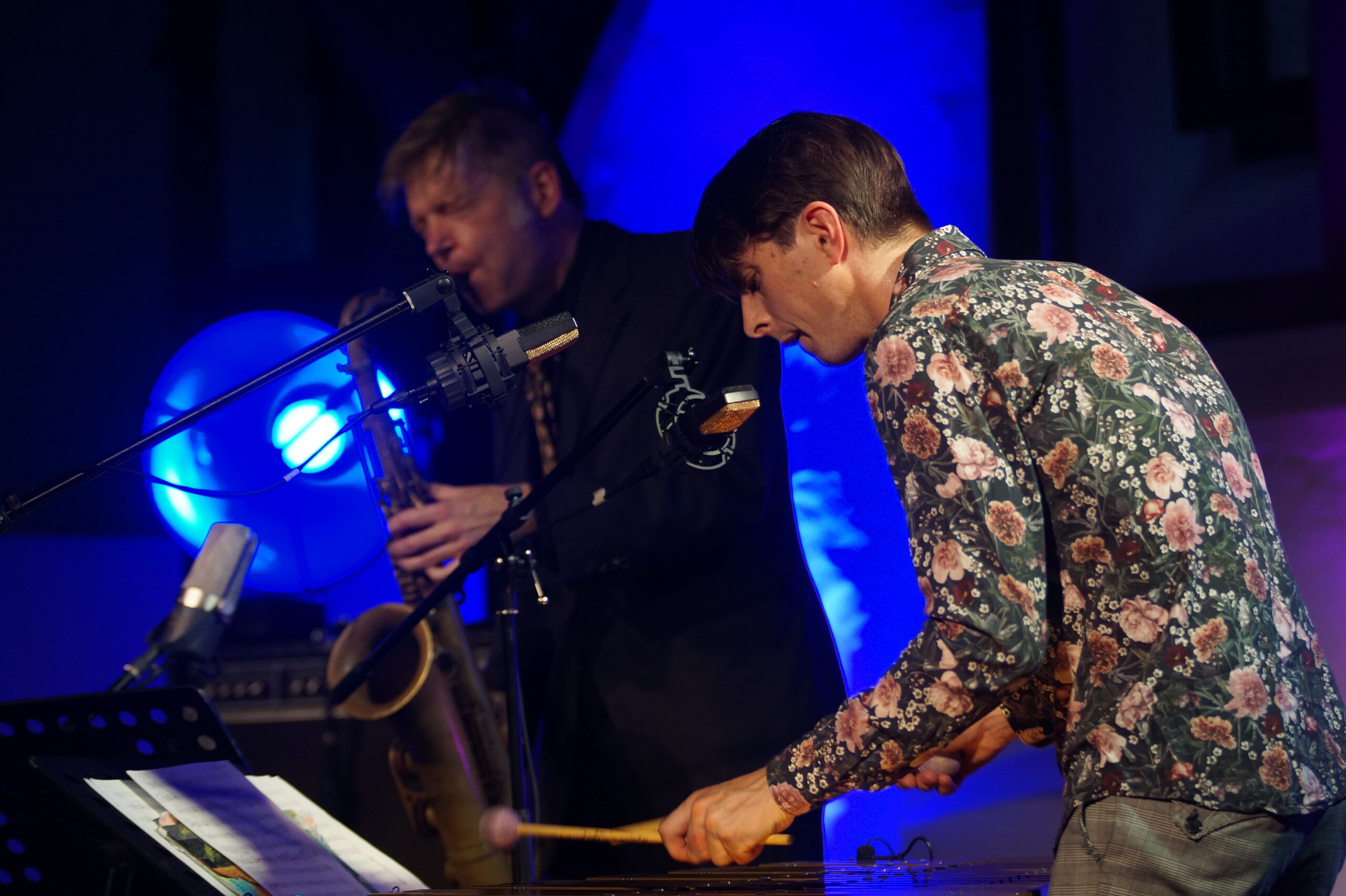 Der dritte im Bunde ist der britische, heute im Elsass lebende Vibrafonist Jim Hart. Er steckt farbenreich mäandernde Klangräume auf seinem Vibraphon ab und reitet – auch wenn endlos viele Töne frei werden – unerschütterlich die gemeinsame emotionale Welle. Vieles kommt aus der zeitgenössischen europäischen Kunstmusik. Noch mehr fließen afrikanische Balafon-Stilistiken ein. Aber die Haupt-Inspirationsquelle bleibt bei allen dreien die eigene Fantasie. Am Ende waren Daniel Erdmann, Saxofon, Theo Ceccaldi, Violine sowie Jim Hart am Vibrafon genauso überwältigt wir ihr Publikum.