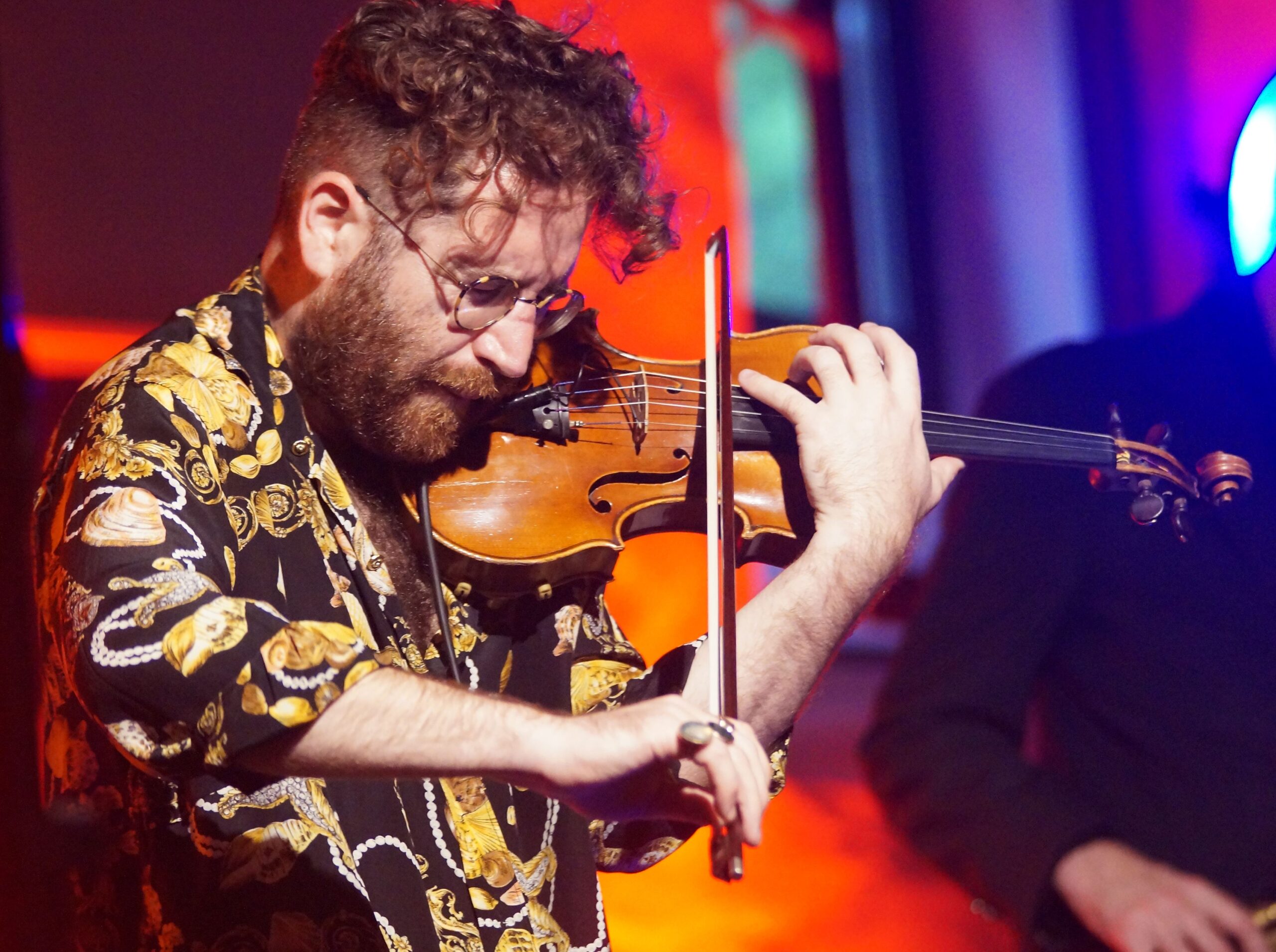 Theo Ceccaldis Violine ist in diesem Trio das Epizentrum. Bzw. es ist nicht das Instrument, sondern vor allem dieser ausdrucksstarke französische Musiker mit korsischen und nordafrikanischen Wurzeln, dessen Werkzeuge zufällig Violine und manchmal auch Viola sind. Und die er in einer so aufregenden stilistischen Bandbreite beherrscht, dass jede Lobeshymne von “einem der besten internationalen Jazzgeiger der Gegenwart” in diesem Moment wohl von jedem unterschrieben wird. Oft wird das kleine Streichinstrument zum perkussiven Motor, ja, ersetzt sogar phasenweise den Bass…