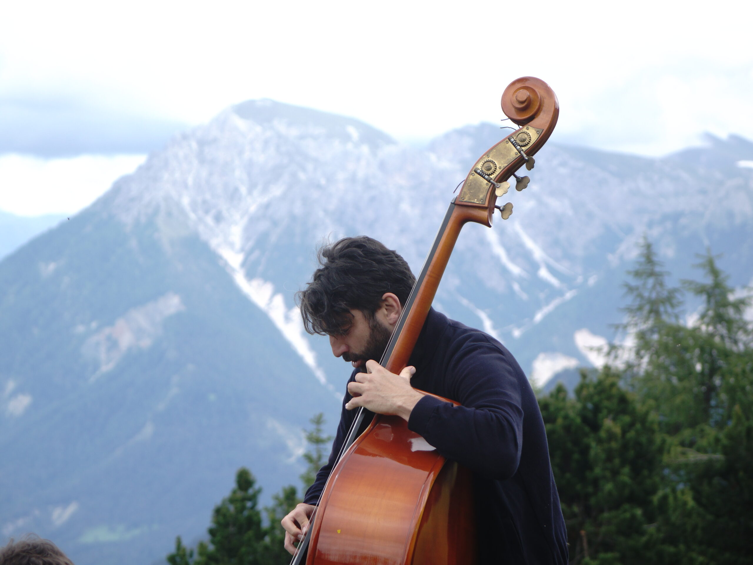 Eine große Entdeckung des Festivals kommt aus Ungarn. „András Dés Rangers“ sind eine erfahrene, junge Jazzband, die den musikalischen Feinsinn auf die Spitze treiben. Im Gespräch äußerten sich die Musiker hinterher selber verblüfft, wie sich der Dialog mit Landschaft und Natur anfühlt. Zunächst wird in einem idyllischen Wald hoch über Bozen Aufstellung genommen. Die friedliche Stimmung, die Gerüche und alles, was um sie herum passiert – alldas atmen die vier Musiker tief ein. „Ausgeatmet“ wird ein leichtfüßiger Kammerjazz voll beseelter melodischer Linien und subtiler Finesse. Schlagzeuger Matyas Szansei zeigt sich dabei als detailverliebter Rhythmiker mit dem wohl ungewöhlichsten Schlagzeug auf dieser Welt. Wenn er nicht gerade mit den Drumsticks auf einem Felsen sein Solo trommelt oder Body-Percussion betreibt…