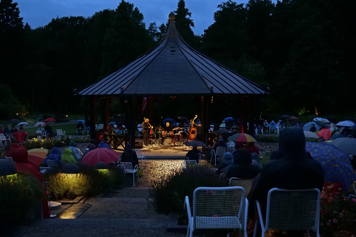 Fünf Sommernachtskonzerte fanden dieses Jahr im Botanischen Garten statt. Angefangen vom Billy Hart Quartett, über das Julian Lage Trio, dem Ramón Valle Trio, der Formation Humair-Blaser-Känzig und als krönenden Abschluss Nik Bärtschs Ronin. Das Publikum hat die Veranstaltungen sehr gut angenommen und so spielten die Bands vor ausverkauftem Pavillon. Einzig das Wetter ließ dieses Jahr ein wenig zu wünschen übrig. Während es bei Billy Hart zu regnen begann, konnten Lage und Valle an lauen, trockenen allerdings kühlen Abenden auftreten und Schlagzeuglegende Humair begeisterte mit seinem unorthodoxem Programm das Publikum trotz anhaltendem Regen. Man muss sich halt zu helfen wissen. Das Augsburger Jazzsommerpublikum lässt sich vom Wetter nicht abschrecken.
