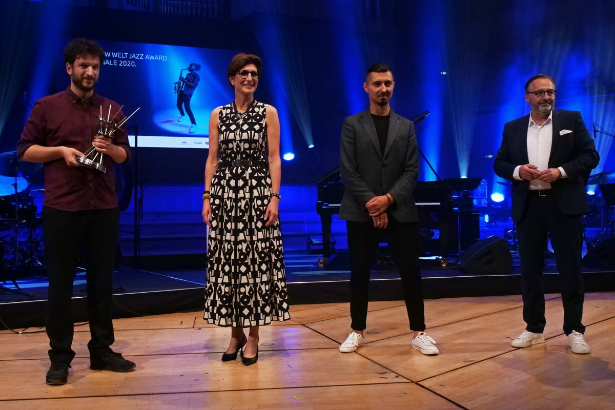 München. Beim Finale des BMW Welt Jazz Award 2020 konnte das Peter Gall Quintet die Jury von sich überzeugen. Zusammen mit Wanja Slavin am Saxophon, Reinier Baas an der Gitarre, Rainer Böhm am Piano sowie dem Bassisten Felix Henkelhausen setzte sich der Schlagzeuger Peter Gall gegen das Adam Baldych Quartet durch. Den Hauptpreis überreichte Ilka Horstmeier, Mitglied des Vorstands der BMW AG, zusammen mit dem Kulturreferenten der Landeshauptstadt München, Anton Biebl.