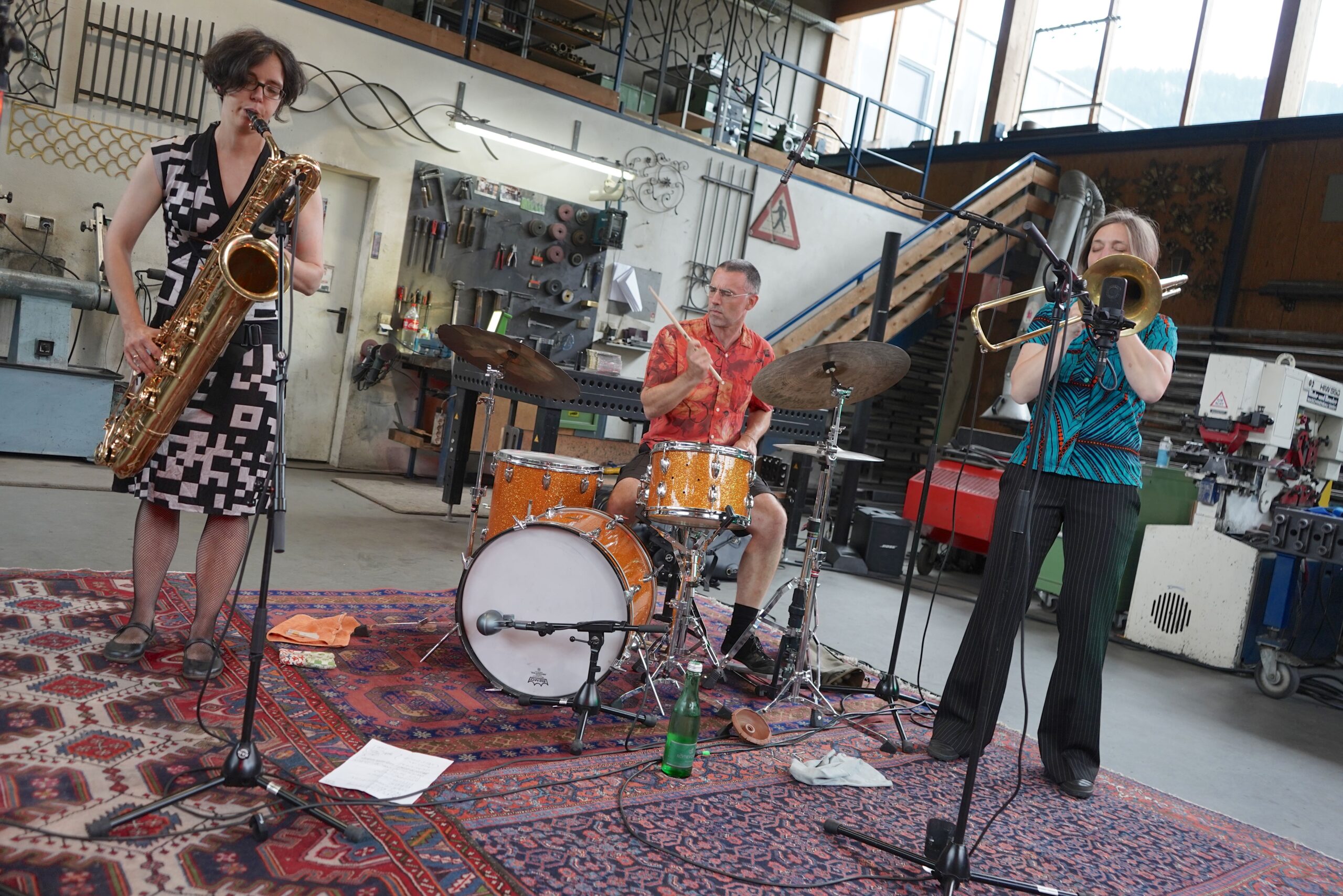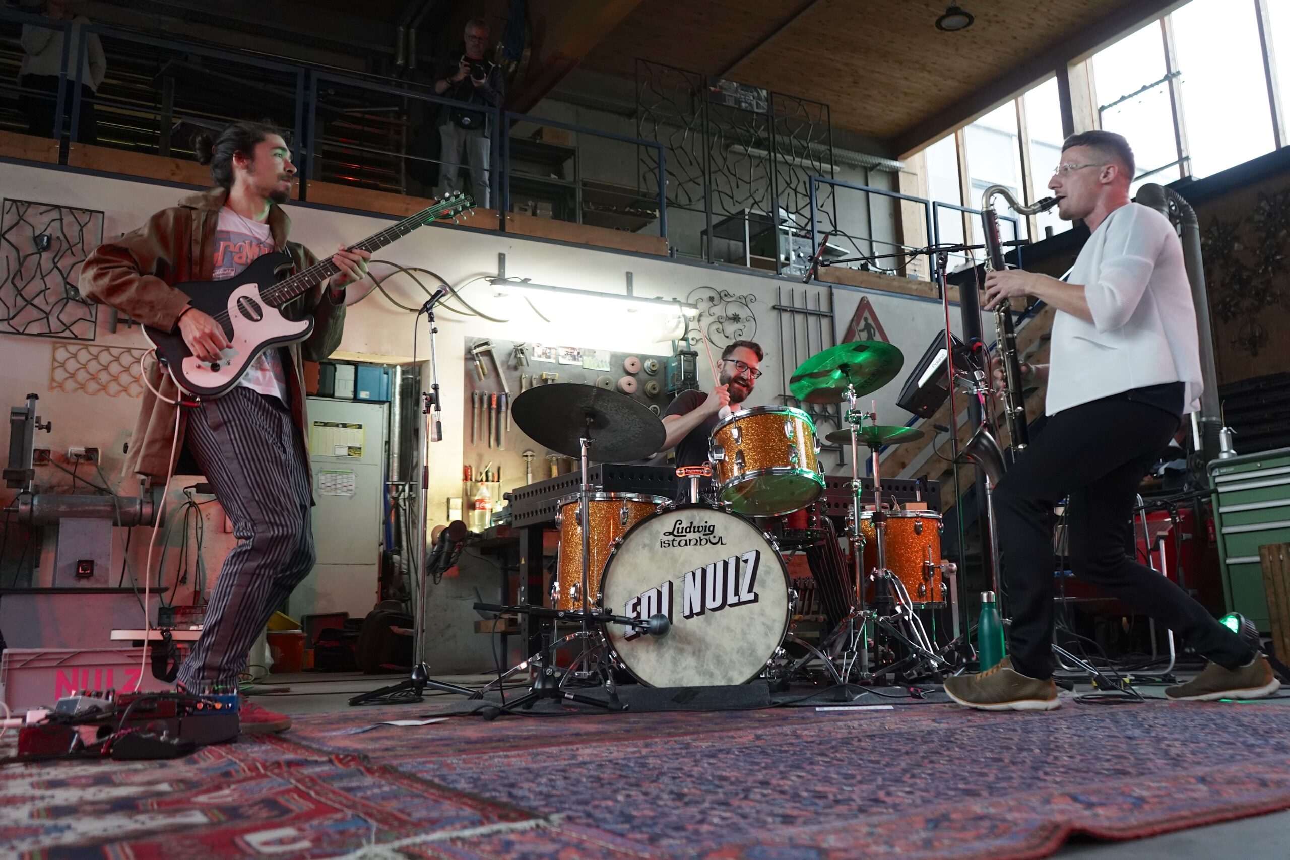 Der andere Risikofaktor waren die Reisekonditionen für die Musiker. Vogel lud Künstler aus Österreich und umliegenden Ländern ein, Frankreich, Deutschland oder Belgien. Und bis auf den verletzten Gitarristen Guillaume Aknine konnten tatsächlich alle kommen, die auf dem Programm standen. So wurden die 14. Bezau Beatz ein Festival rund um das Thema Freiheit und was man daraus machen kann. Die beiden Extreme an den Enden der Parabel bildeten einerseits das Duo des Pianisten Felix Hauptmann mit dem Schlagzeuger Leif Berger und das Trio Edi Nulz auf der anderen Seite, zwischen deren Ideenwelten sich letztlich die anderen Beteiligten positionierten. Hauptmann & Berger standen für den Ernst der Sache, zwei Improvisatoren mit der Neigung zur Humorfreiheit der Abstraktion, auf der Suche nach der Gültigkeit des Komplexen im kommunikativen Dialog, ein wenig so, als würden sie den Chandos-Brief für den Jazz formulieren. Edi Nulz hingegen hatten Spaß am Musikantischen und klitterten mit Tendenz zur anarchischen Geste die Stilideen von Fusion und Free bis Indie und Schmäh, ohne angesichts des Humoresken allerdings die Struktur zu vergessen.