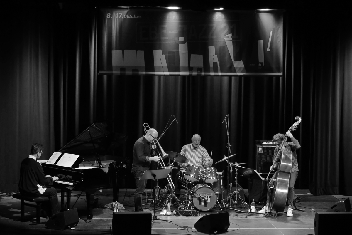 Alle (zwei) Jahre wieder das internationale Jazzfestival EBE-JAZZ, seit 2015! Glücklicherweise ist dieser Plan, Pandemie hin und her, auch diesmal wieder aufgegangen. Auch wenn nach der ersten Terminplanung für EBE-JAZZ 21, im November 2019, dann im Frühjahr 2021, als man begann das konkrete Festivalprogramm zu planen, noch nicht wusste wie sich pandemietechnisch alles entwickelt und vor allem wen man im Herbst verbindlich einladen kann.