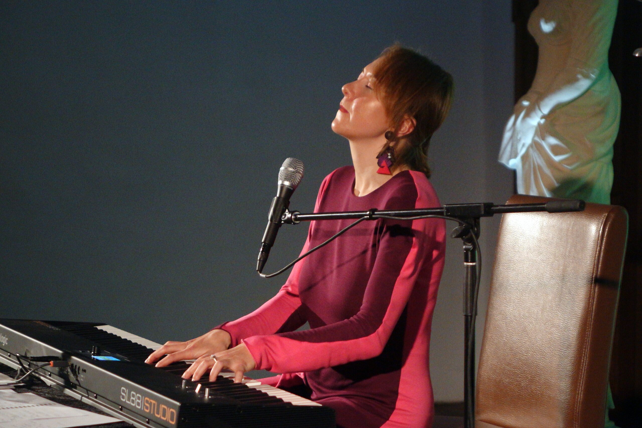 Eine leichtfüßige Scat-Improvisation zum Aufwärmen macht auf Anhieb deutlich, was die in Köln lebende Künstlerin auszeichnet: Virtuosen Stimmeinsatz mit faszinierend vielseitigem Klavierspiel zusammen zu bringen – oft so, als würden hier zwei Musiker und eben nicht nur eine Person agieren. Aber dann geht es schon ans literarisch Eingemachte: Clemens Brentanos zärtlich-trauriges Wiegenlied „Singet Leise“, Balladen von Novalis, Dichtungen von Theodor Fontane und Reiner Maria Rilke nähren die lyrisch-musikalische Inszenierung in vielen Facetten. Am Anfang standen Worte, die sie verzaubert haben, beschreibt die gebürtige Ukrainierin in ihren ausgiebigen Anmoderationen den kreativen Prozess. Töne und Harmonien gingen als unmittelbare Resultate aus einer solchen Einfühlung hervor.