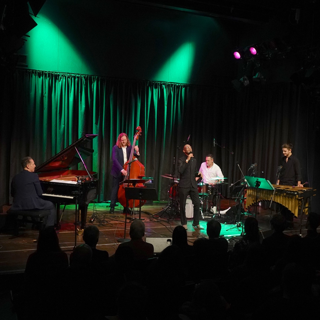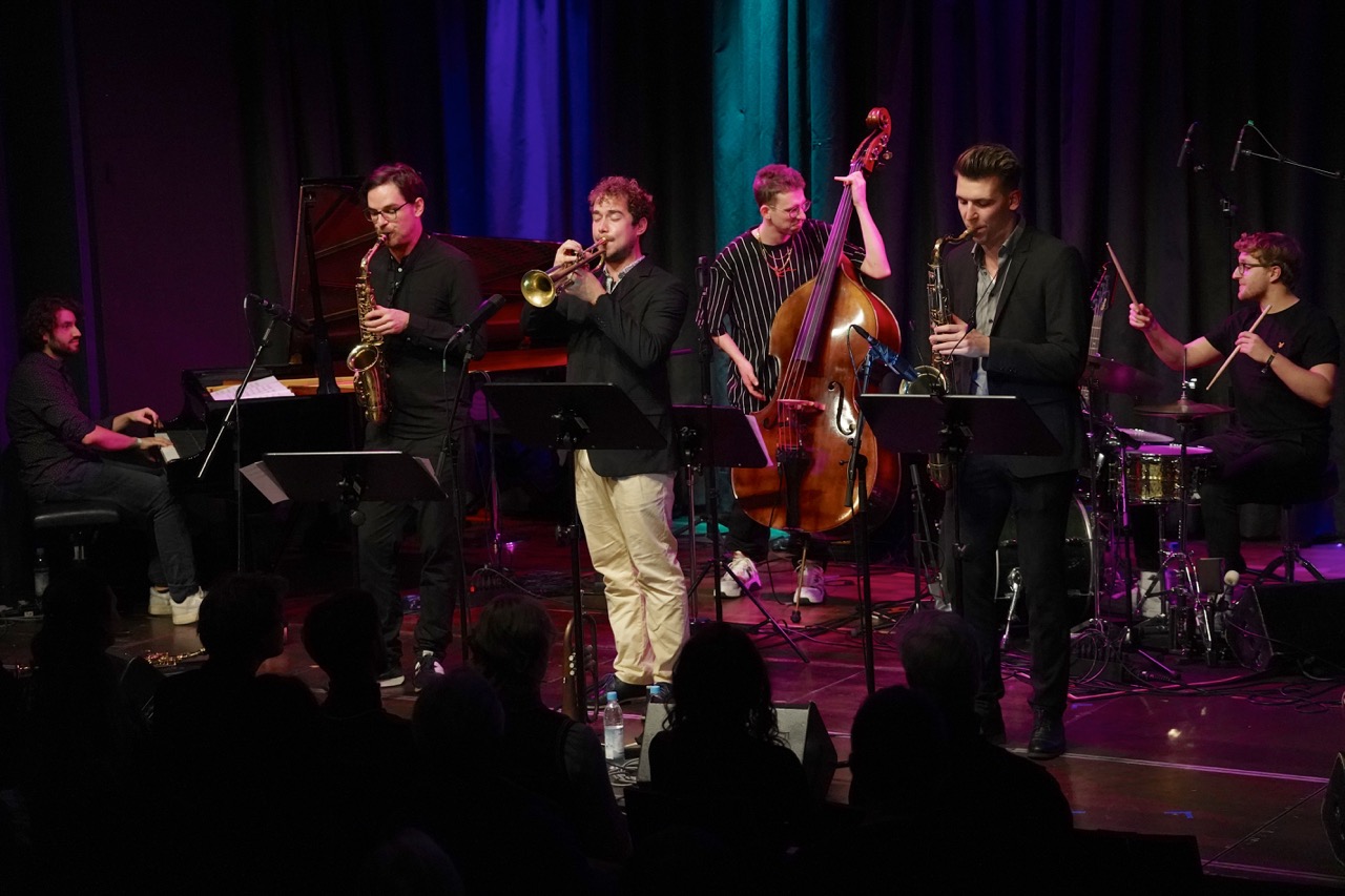 Das musikalische und gestalterische Niveau war dabei so hoch, dass kaum etwas wirklich schief gehen konnte. Trotzdem gab es Überraschungen, die die Skala der Erwartungen noch einmal revidierten. So erweis sich das Tab Collective am finalen Abend als souveräne, aus des Mitte des Soul heraus agierende Combo, die mit ihren wechselnden Besetzungen ein musikalisches Spektrum von Randy Crawford bis Bill Witwers aufzurufen verstand. Martin Scales hatte einen immensen Spaß daran, die trocken angezerrte, mit Blues im Sound getönte Gitarre der Siebziger auszupacken („Sie haben gesagt, ich soll Jazz spielen. Also habe ich Jazz mitgebracht!“). Ein echtes Power-Paket aber war das Sextett von Valentin Renner, das mit Bastien Rieser, Anton Mangold und Tom Förster nicht nur eine leichtgängig komplex agierende Bläsersection bieten konnte, sondern mit dem Bandleader, dem Bassisten Nils Kugelmann und dem Pianisten Luca Zambito auch wild energisch die Latin Fusion des Bandkonzepts fundamentierte. Drei Beispiele für eine veranstaltete Vielfalt, die auch im reduzierten Rahmen gedrosselten Tourneewesens, halbgeöffneter Venues und komplizierter Bestimmungen glänzen konnte. Und die so froh war über das Publikum, das sie Musiker mit lebendigem und lebhaftem Applaus feierte.