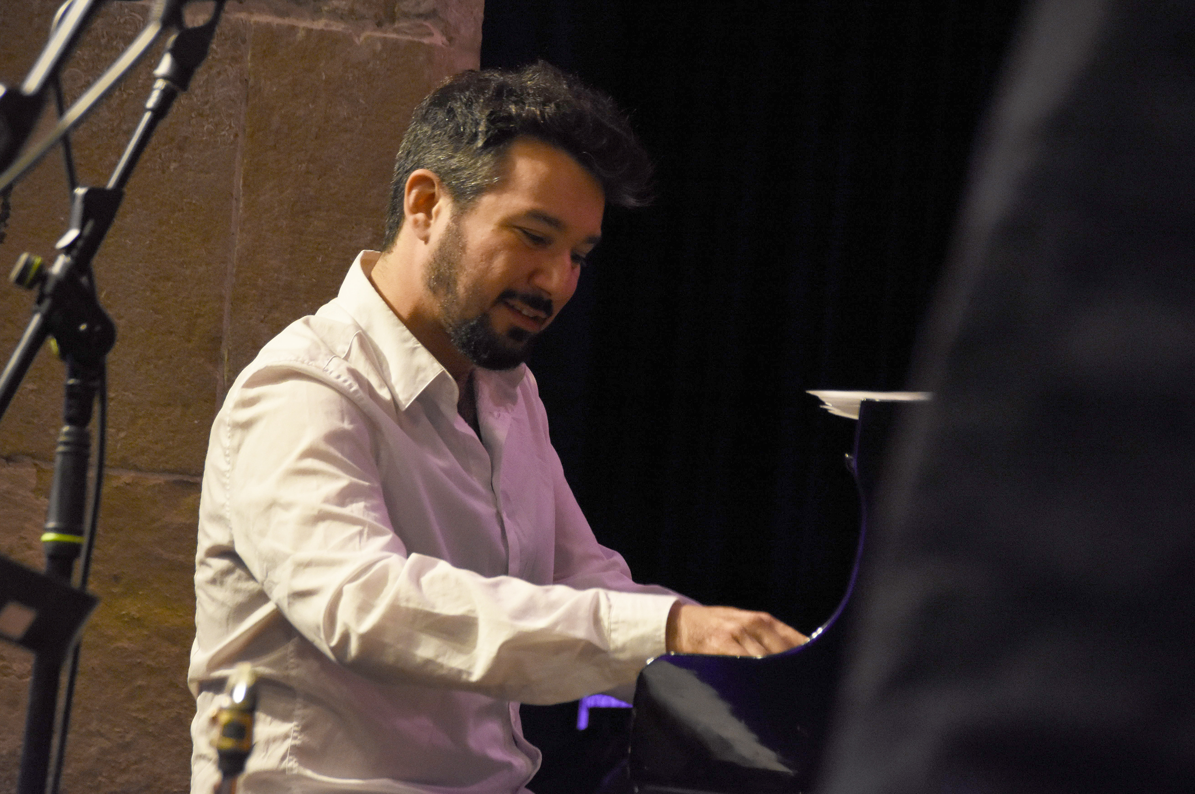 Einhellig begrüßten Vorstandsmitglied beim Jazzclub Alfred Merkel, die Musiker um Tobias Meinhart und das Publikum mit lautem Beifall das erste Konzert ohne die Pflicht zum Tragen einer Maske. „Endlich schaue ich wieder in Gesichter“, freute sich Merkel bei der Begrüßung und Meinhart gestand, dass „wir glücklich sind nach langer Zeit vor so vielen Leuten spielen und euch sehen zu können!“