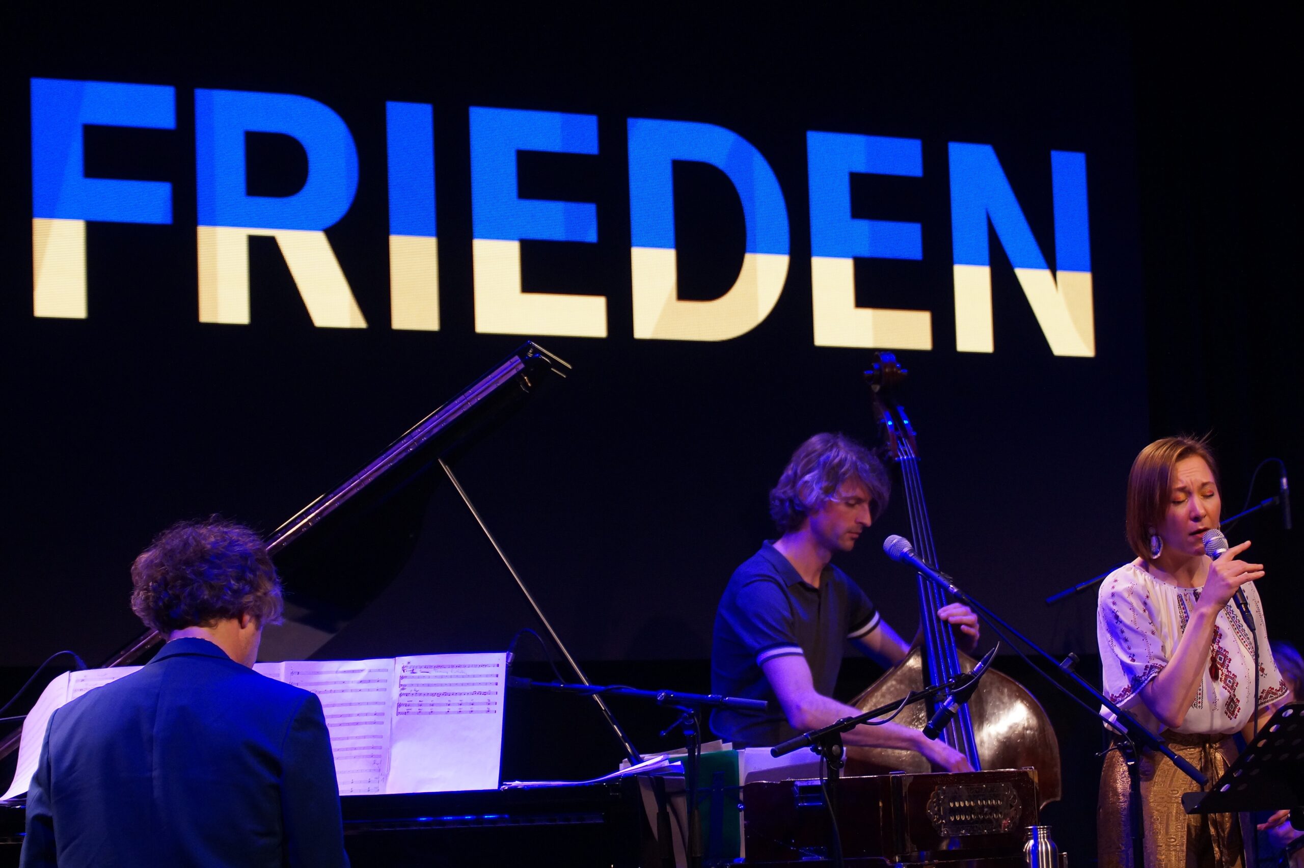 „Noch sind der Ukraine Ruhm und Freiheit nicht gestorben, noch wird uns lächeln, junge Ukrainer, das Schicksal. Verschwinden werden unsere Feinde wie Tau in der Sonne, und auch wir, Brüder, werden Herren im eigenen Land sein“, lautet die erste Strophe der ukrainischen Nationalhymne – und nein, sie ist nicht gerade aktuell in diesen Tagen geschrieben worden, auch wenn dies in so tragischer Weise naheliegt. Der ukrainische Dichter Pawlo Tschubynskyj schrieb im Herbst 1862 das patriotische Gedicht, das später zur Hymne wurde, lange bevor es die Ukraine als eigenständigen Staat gab. Sechs Tage nach dem russischen Überfall auf das osteuropäische Land veranstaltete die ukrainische Sängerin Tamara Lukasheva ein Solidaritätskonzert im Kölner Stadtgarten. Viele Protagonisten der Kölner Jazzszene standen als verlässliche Band hinter den drei beteiligen Sängerinnen Tamara Lukasheva, Mariana Sadovska und Tasja Chernishova.