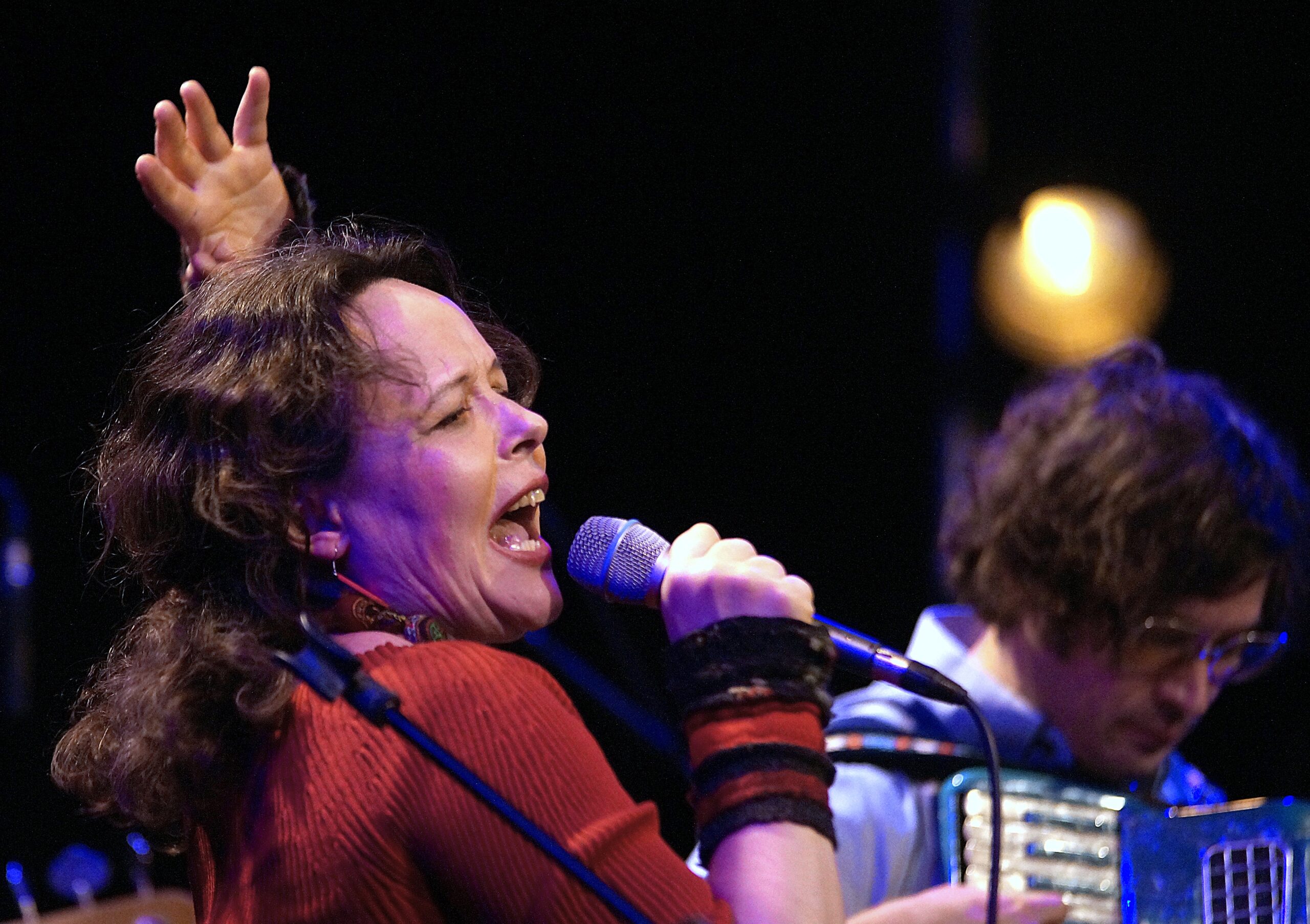 Eine der kraftvollsten Gesten hat der Abend schon direkt nach dem ersten Stück: Gemeint ist diese entschiedene Handbewegung, mit der Tamara Lukasheva beim Schlussakkord der ukrainischen Nationalhymne die Band, die gerade hinter ihr steht, „dirigiert“- was einen Moment lang wie das Ausführen eines unsichtbaren Degens, auf jeden Fall wie ein entschiedenes Ausrufezeichen wirkt.