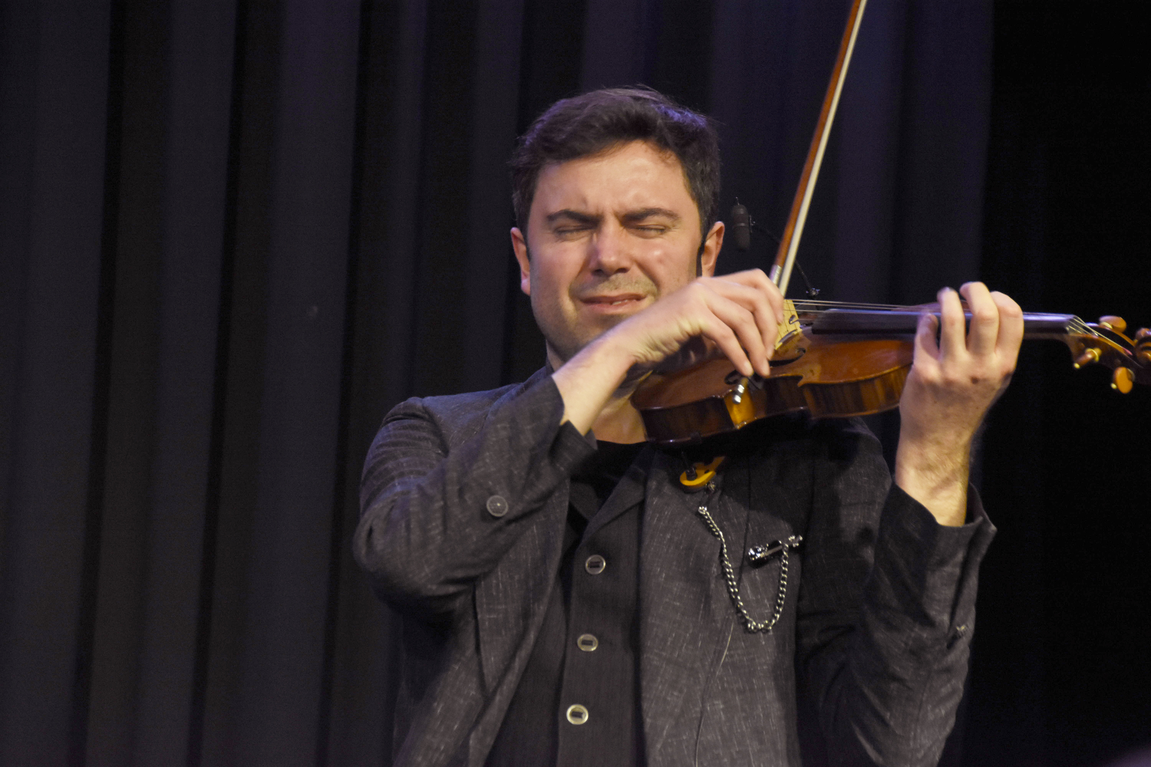„Auch auf diese Eventualität sind wir vorbereitet“, lächelt Rabih Abou-Khalil verschmitzt ins Publikum. Nach der ersten Zugabe hat es dieses nicht mehr auf den zugewiesenen Stühlen gehalten. Alle sind auf den Beinen und rufen mit rhythmischem Klatschen und begeisterten Trillern und Kicksern nach mehr Musik. Den Abschied nach einem zweistündigen Konzert voller Tempo, Innigkeit, getragenen Klängen und mitreißender Power gestaltet der Komponist und Oudspieler mit seinen Partnern Mateusz Smoczynski (violin) und Jarrod Cagwin (drums) mit einem ruhigen Stück.