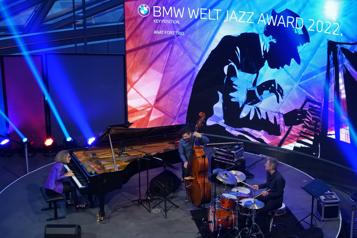 Mit dem Anat Fort Trio ist der diesjährige BMW Welt Jazz Award am 5. April in die dritte Runde gegangen. Unter dem Motto „Key Position“ treten sechs international tätige Pianisten und Keyboarder an. Die Pianistin Fort kennt keine Präludien und kein Drumherum. Vom ersten Ton an erzählt sie packend. In München dauerte die mitreißende musikalische Geschichte dieser Wettbewerbsnacht – inklusive einer Pause – fast zwei Stunden und ging doch vorbei wie im Flug. Anat Fort war mit ihrem Trio aus Israel angereist und genoss es sichtlich, nach langer Corona-Pause wieder auf der Bühne zu sein. Seit über zwanzig Jahren spielt sie mit dem Bassisten Gary Wang und er dem Schlagzeuger Roland Schneider zusammen – die Zwangspause hatte im traumwandlerisch sicheren Zusammenspiel des Trios keine Spuren hinterlassen.