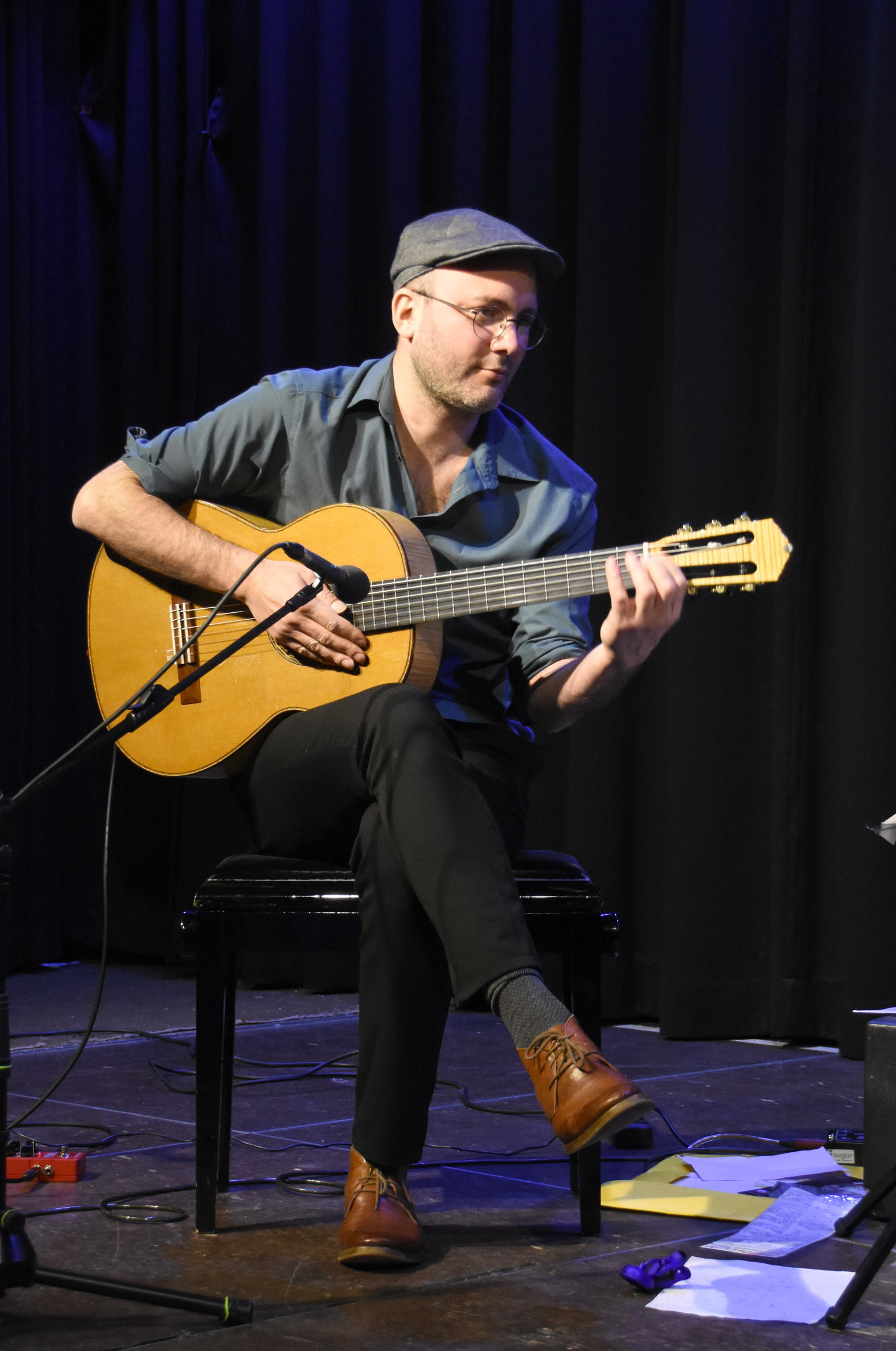 Es ist eine Musik, die den Schmerz und die Trauer in getragenen Stimmungen erkundet, die losgelöst von Erdenschwere zu schweben beginnt und die die Zuhörenden im Leeren Beutel in eine Welt voller Achtung, Zärtlichkeit und leiser Heiterkeit versetzt. Die kühnen Melodien und klanglichen Seiltänze, die Seddikis vollendetes Spiel auf der Gitarre vollführt, öffnen Fenster und Türen in ungeahnte Klangwelten. Dabei wechseln sich die Instrumentalisten in der melodischen Führung und Begleitung andauernd, manchmal mehrmals in einem Stück ab. Es ist ein musikalisch-klangliches und emotionales Ineinandergreifen, eine respektvolle und gleichwohl selbstbewußte Begegnung zweier verschiedener Persönlichkeiten, die dennoch von einer gemeinsamen Wellenlänge angetrieben werden. Vor zwei Jahren haben Matinier und Seddiki diese Ideen in die Aufnahme eines Albums („Rivages“, ECM) fließen lassen, aus dem sie im Leeren Beutel einige gemeinsame Stücke und eigenwillig-schöne Interpretationen vorstellten.