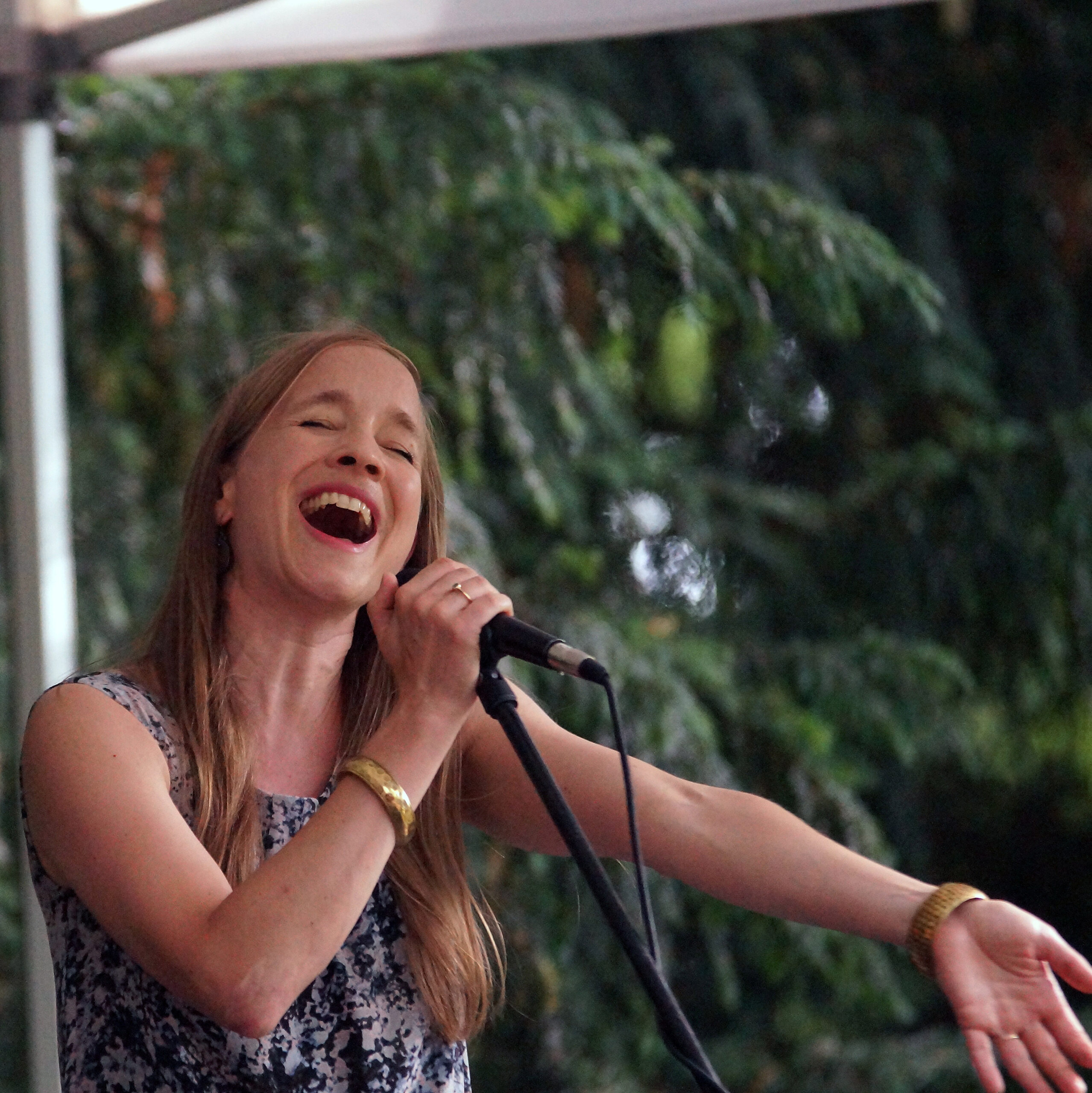 Man konnte auch weiterhin nicht aufhören, in Superlativen zu schwelgen. Die ungarische Sängerin Veronika Harcsa darf man zu den eindringlichsten, empfindungstiefsten Stimmen im derzeitigen europäischen Jazz zählen. Das wurde offenbar, wie sie auf der Wiese vor der Burg im feinen Duo mit ihrem Gitarren-Partner Balint Gyemant ihr Publikum in den fantasievoll verästelten Kosmos ihrer Songs mitnahm. Alle tauchten tief ein und fühlten sich befreit, währen der Springbrunnen in der Burg-Gräfte friedlich rauschte.