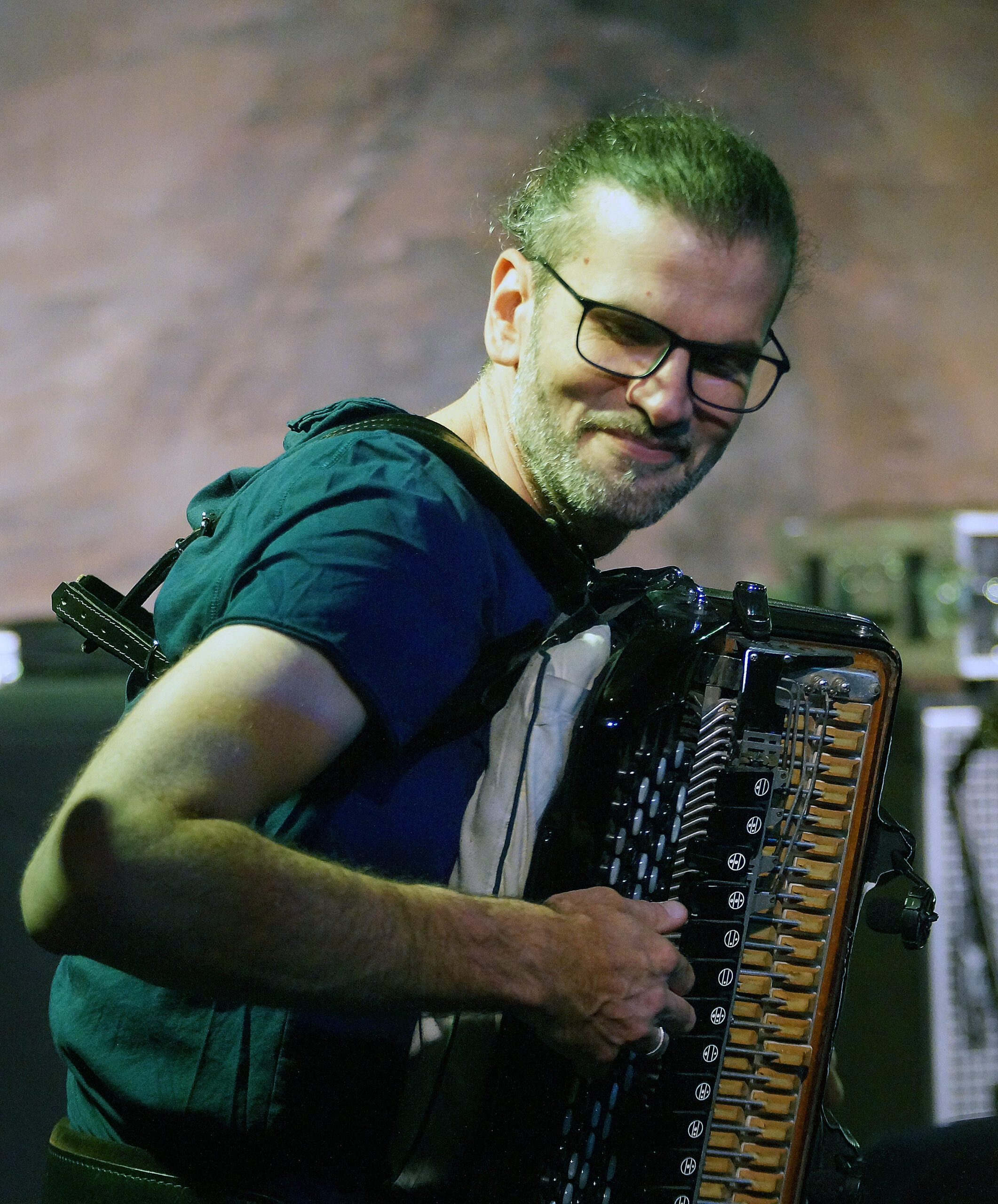 Lief das Ganze so rund, weil der Einstieg am Freitagabend so grandios, ja überwältigend gelang? Die belgisch-ghanesische Sängerin Esinam und ihre Band bringt die Sache gewaltig in Fahrt mit rhythmischem Druck, aber auch einer immensen Farbenvielfalt. Diese heiße Mélange aus Jazz und Afrobeat machte schon fast den einstigen Spirit der African Dance Nights in Moers lebendig. Flötistin und Sängerin Esinam entfaltet dabei eben so viel Charisma wie der ausdrucksstarke Gitarrist sowie sein extrem cooler Schlagzeuger, der zwischen Afrobeat, rockigem Drive und modernen Dancefloor vermittelte. Konnte es danach noch eine Steigerung geben? Ja, das konnte es! Mit der brandneuen Triobesetzung des Akkordeonisten Vincent Peirani servierte das Festival direkt sogleich den zweiten Überraschungs-Kracher. Peirani, dieser „Weltmeister“ auf dem Akkordeon präsentierte hier eine mächtige Trio-Band, die man wohl eher im Bereich „Progressive Rock“ schubladisieren würde und eine hypnotische Intensität entfaltet, bei der auch Gitarrist Federico Casagrande und vor allem der israelische Schlagzeuger Ziv Ravitz zur Höchstform aufliefen.