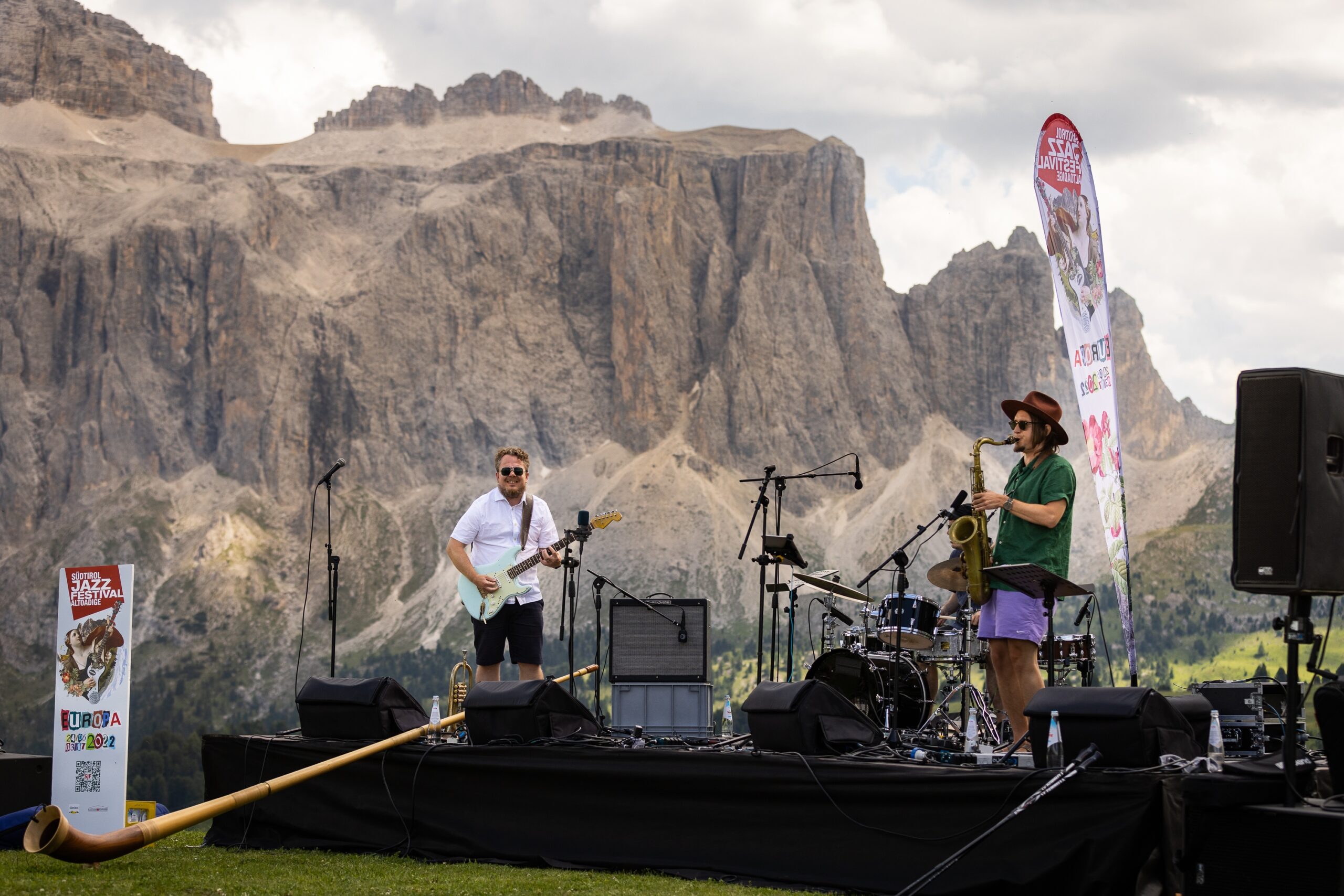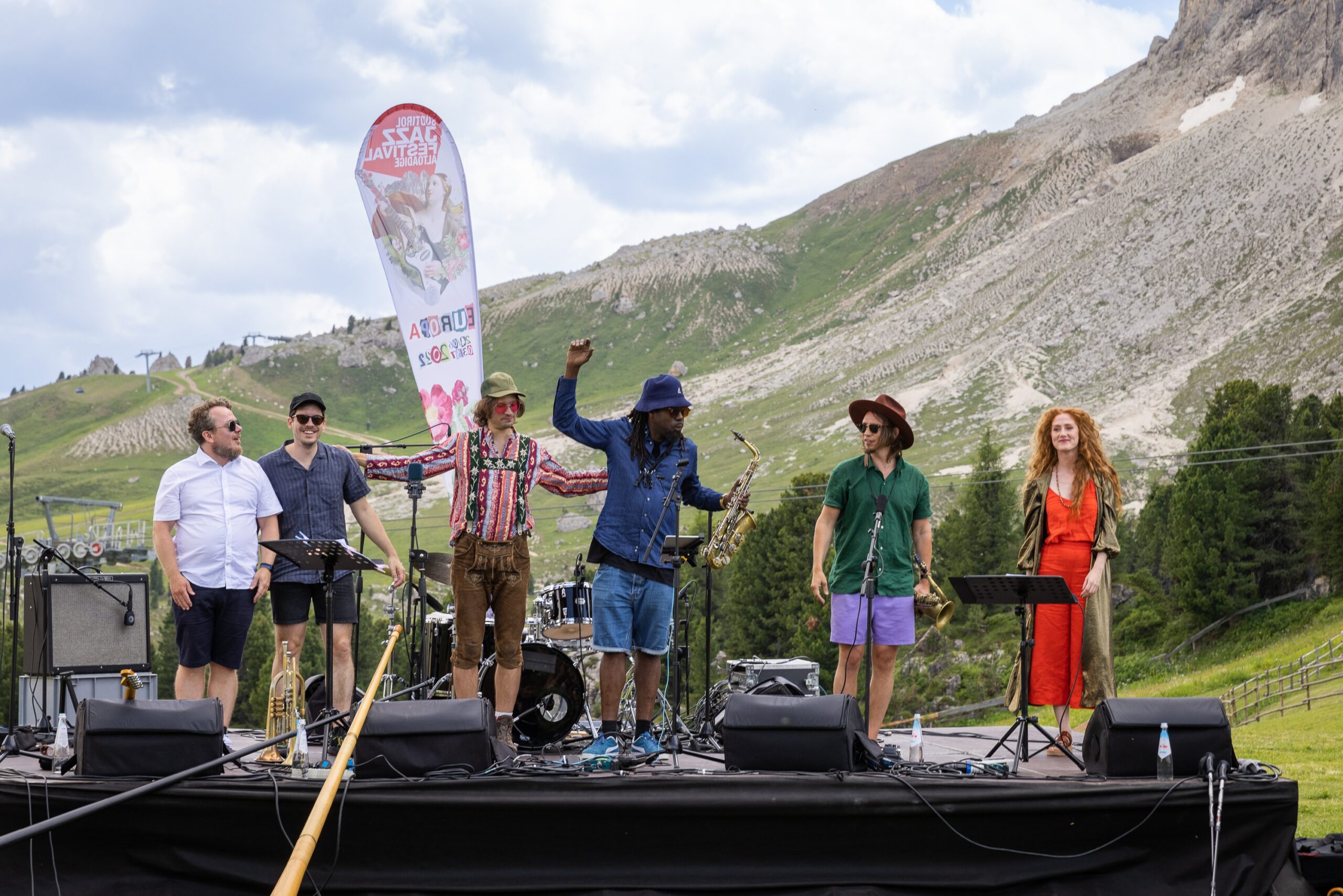 Am letzten Festivaltag nahm wieder eine Band vor der imposanten Kulisse der Langkofelgruppe-Aufstellung, was so manchen an die spektakuläre Inszenierung im Jahr 2014 erinnert haben mag. Wie damals diverse Artisten, inklusive Freeclimber und unerschrockene Musiker direkt aus hoher Felswand heraus künstlerisch agierten, das hat Geschichte geschrieben. Zwar etwas weniger spektakulär, aber musikalisch nicht minder beseelt, bescherten Matthias Schriefl, der Isländer Sigurdur Rögnvaldsson, der Fine Pauli Lüttinen, der Schweizer David Meier, der Brite Soweto Kinch und die Sängerin Anni Elif dem 40., zum letzten Mal von Klaus Widmann kuratierten Festival ein symbolkräftiges Finale.