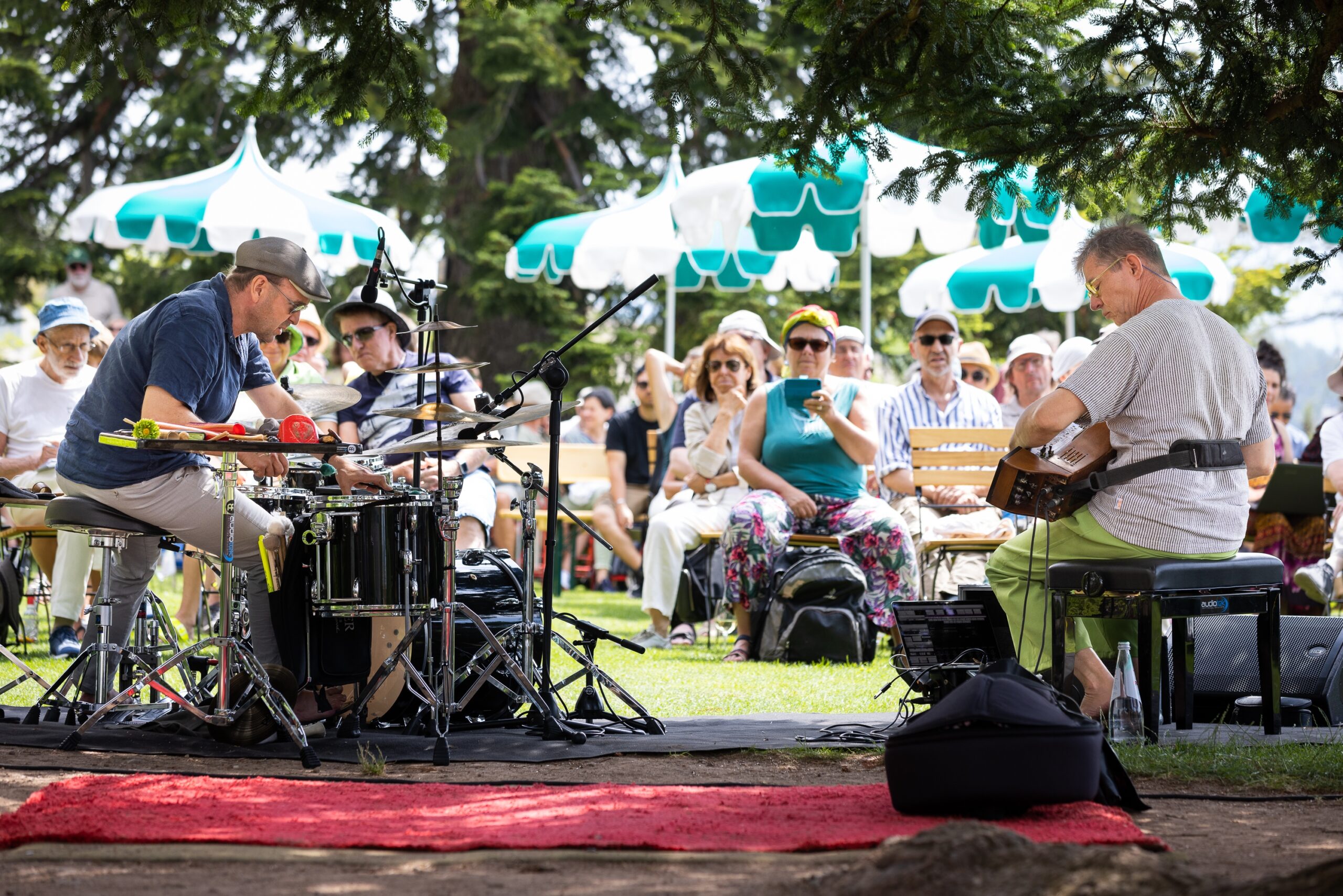 Matthias Schriefl, der schon seit 15 Jahren beim Festival präsent ist, war diesmal den Bergen besonders nah, als er sich im Duo mit Johannes Bär drei Tage lang auf Hüttenwanderung begab. Sich vom Bergsommer in seiner ganzen Pracht verzaubern lassen und dabei offener für neue künstlerische Erfahrungen werden – in dieser Hinsicht besteht Gleichklang zwischen Musizierenden und Publikum. Schriefls drei Hüttenkonzerte dehnten sich zeitlich zum Teil über mehrere Stunden aus. „Abgeholt“ wurde dadurch viel touristisches Laufpublikum, das eben sonst nicht von sich behaupten würden „Jazz-Fan“ zu sein. Aber genau diese Neudefinierung des Horizonts ist ja auch das Anliegen.