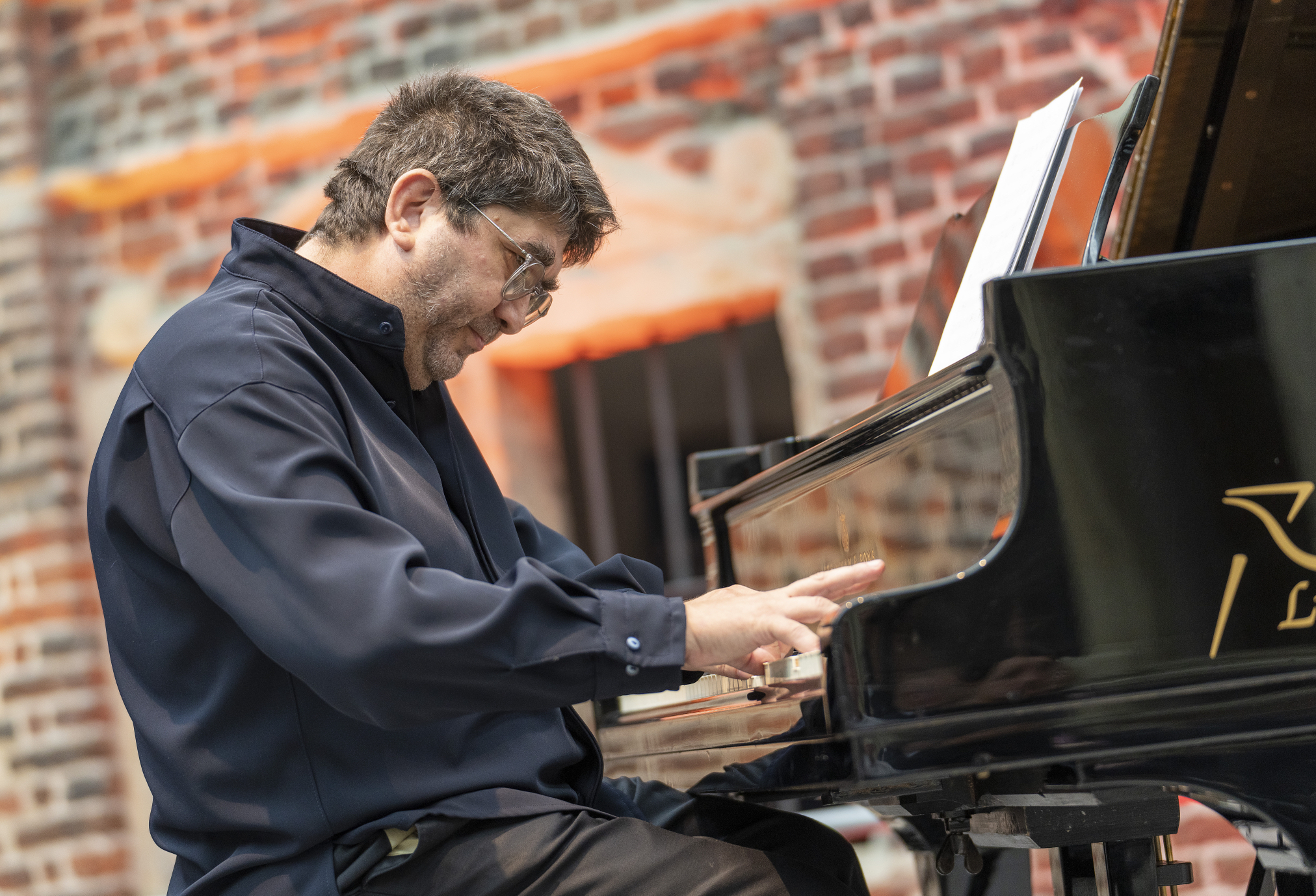 Der Sommer ist vorbei, der Regen schüttet, grau ist die Farbe am Himmel. So etwas produzierte am Festivalsamstag eine starke Melancholie. Dafür erwies sich wiederum die Klangpoesie des Pianisten und Keyboarders Arnold Kasar als perfekter Katalysator. Wie perlende Tropfen breiteten sich die Töne in minimal reduzierten Mollschleifen auf. Zugleich malte der Synthesizer viele zarte und manchmal auch grell aufblitzende Nuancen dazu. Aber Kasar, der sich extrem gründlich mit elektronischer Musik auseinandergesetzt hat, drehte gekonnt die Rollenverteilung um. Meist wurden die Modulationen und Flächen des Synthesizers zur Primärquelle für seine lyrischen Klavierimprovisationen.