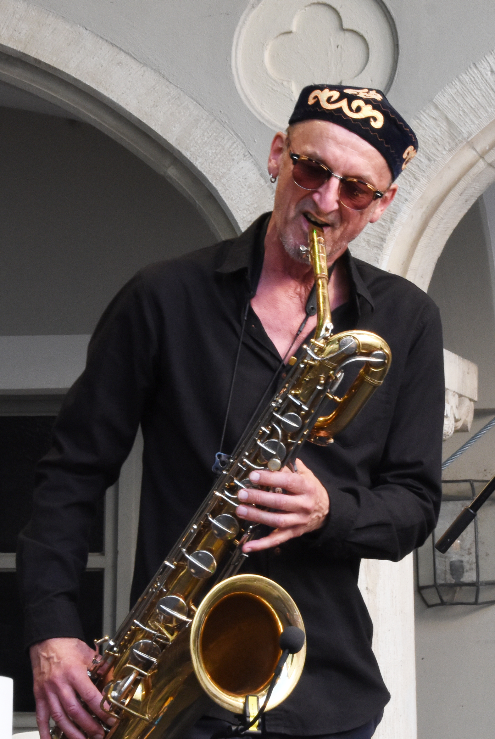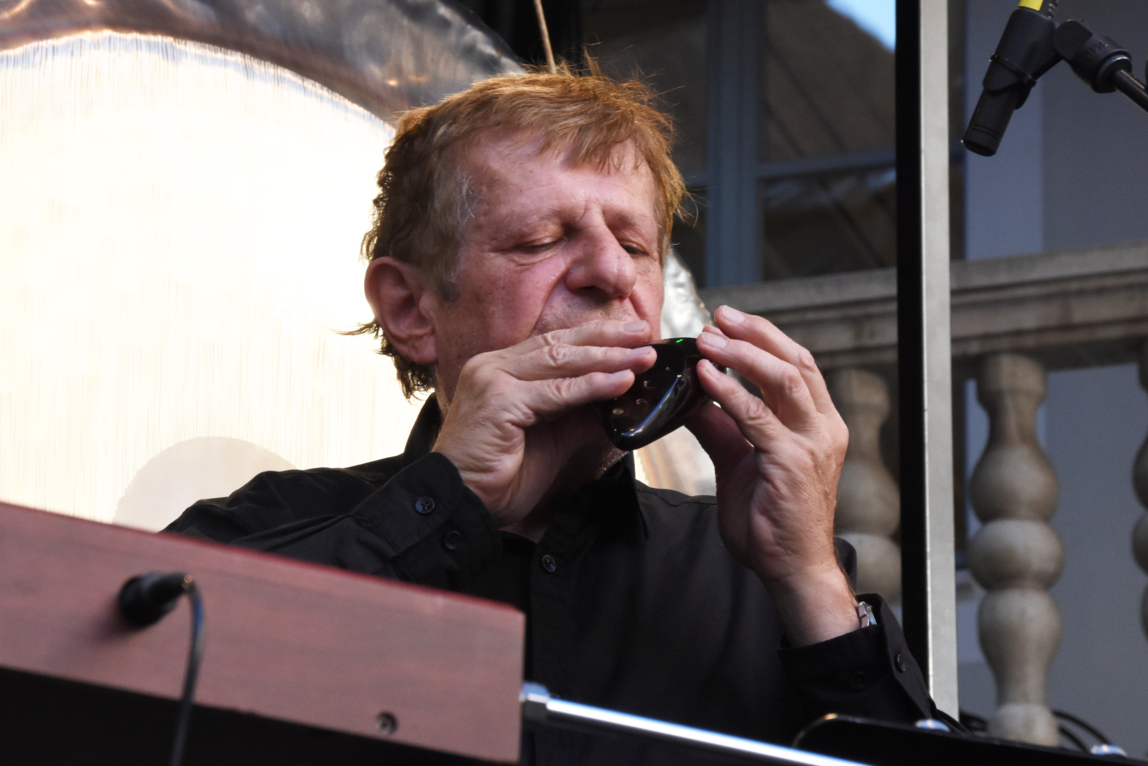 In die „Zwischentöne“, dem Thema des zweitägigen Events im Arcadenhof, fügten sich auch die beiden anderen Gruppen hervorragend ein. Mit drei langjährigen Freunden Fredy Granzer an Geige und Akkordeon, Saxofonist und Gruppenkobold Bertl Wenzl und Helmut C. Kaiser am Perkussions-Baukasten – beglückte Multiinstrumentalist Heinz Grobmeier (mit seiner Gruppe im Titelbild) den voll besetzten Hof mit einer klang- und gefühlvollen Abenteuerreise zwischen folkloristischen Themen, mitreißenden Improvisationen und sphärischen Sounds. Dabei kamen seltene Instrumente wie das Theremin, Tonflöten und klapperndes Kinderspielzeug zum Einsatz.