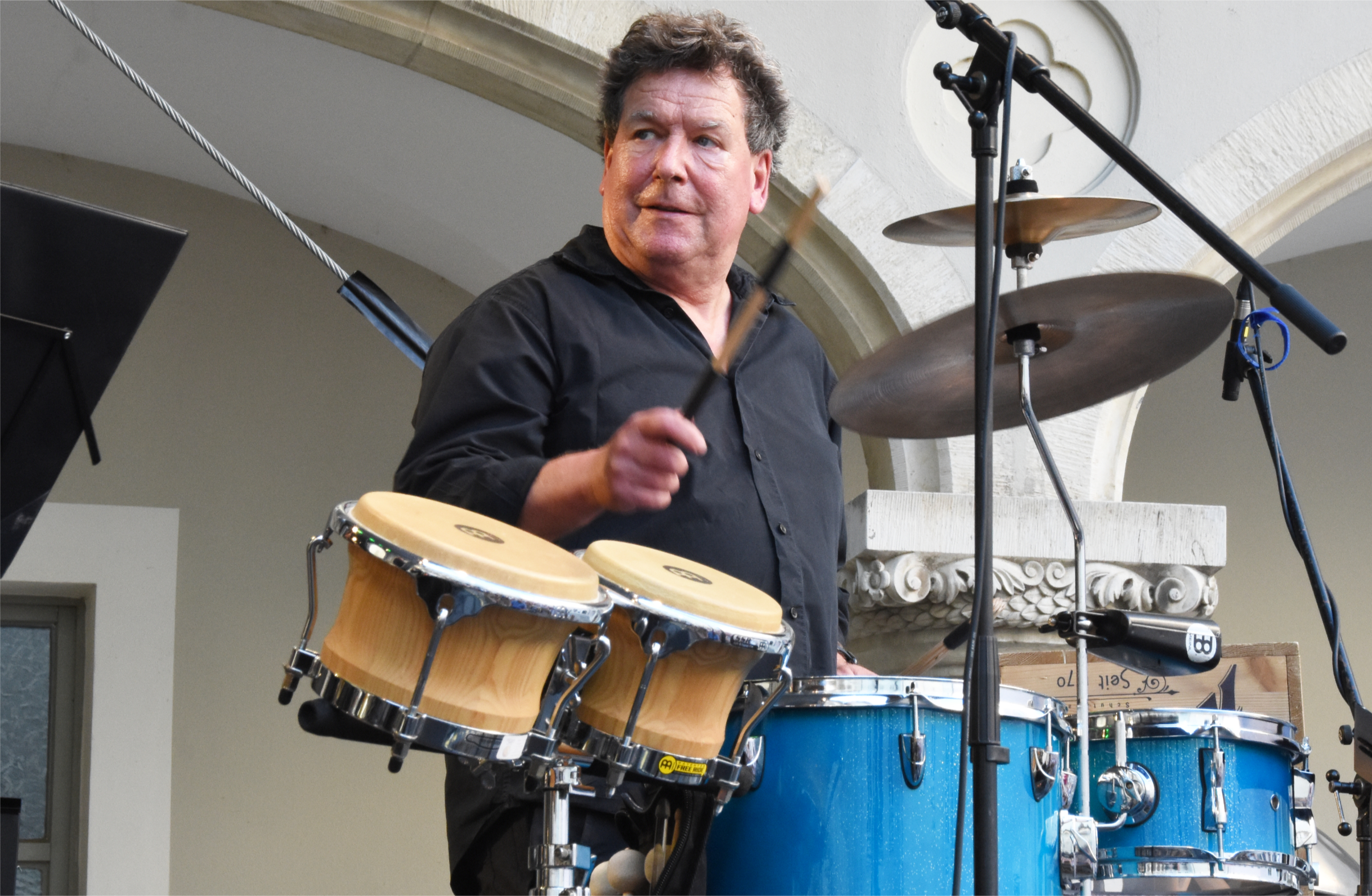 Als „Pflichttermin“ hatte Regensburgs Trommel-Koryphäe Gerwin Eisenhauer vom Strandurlaub aus das Konzert des „unglaublichen Joey Baron“ im Thon-Dittmer-Palais auf Facebook plakativ beworben. Allzu viele haben den Post dann scheinbar nicht gelesen, Jazzclub-Vorstand Bernhard Lindner zeigte sich bei der Anmoderation des Konzerts ein wenig enttäuscht über den Besuch.