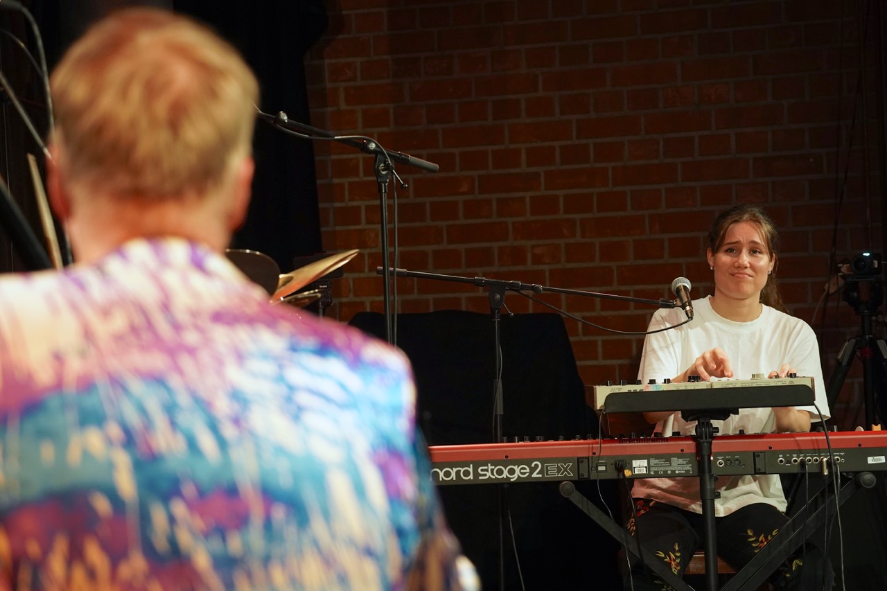 Die Energie auf der Bühne allerdings konnte die fremdbestimmte Eile nicht einbremsen. Rantala war in Form, hatte das Trio der Sängerin und Keyboarderin Maja Mannila als Basis seines aktuellen Quartetts FLOCK und außerdem ein buntes Programm aus neuen Stücken und bewährten Kompositionen mitgebracht. Stilistischer Ausgangspunkt war der unterhaltsame Fusionsound von damals, inzwischen dem Trio Töykeätt wieder näher als frühere Projekte. Zwar spielte Rantala auch den „November“ seines Songs-Solo-Zyklus zum finnischen Wetter oder die Widmungsstücke an seine beiden Söhne. Vieles andere war jedoch frisch, ein bisschen Retro-Bebop, etwas Entertainment-Ragtime und viel fröhlich ausufernde, elegant phrasierende Pianistik in Verehrung von Kraftmeistern des Akkordspiels wie Richard Tee.