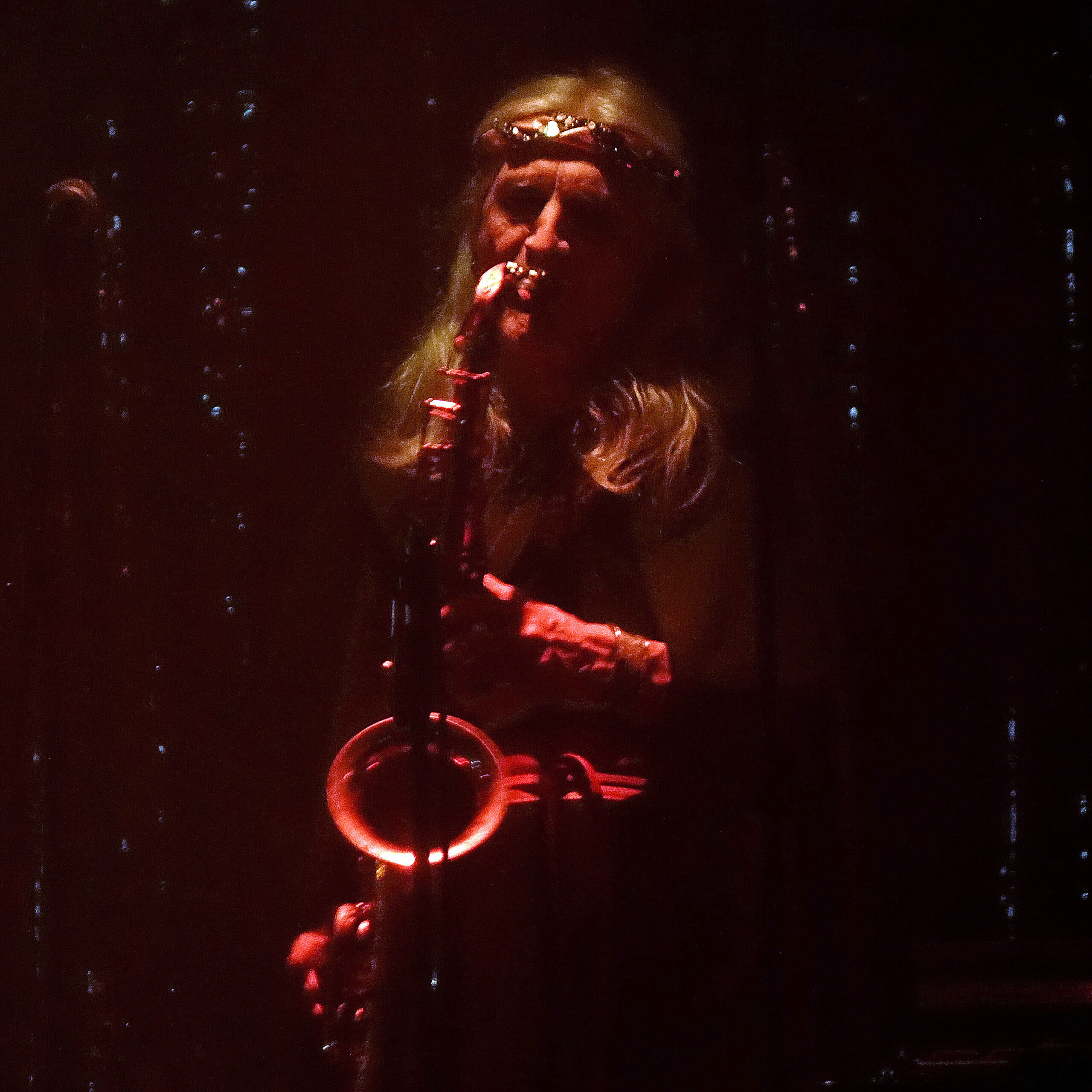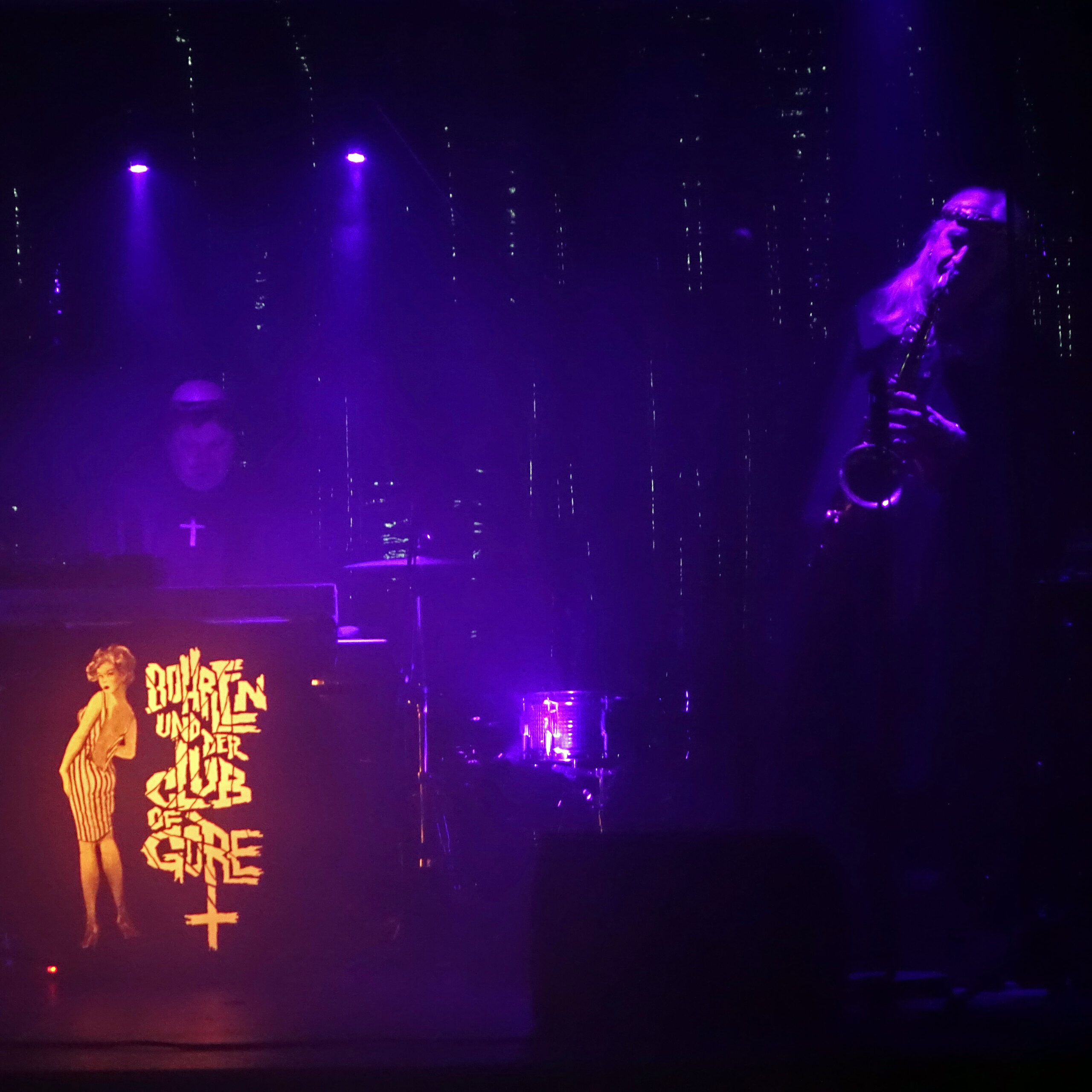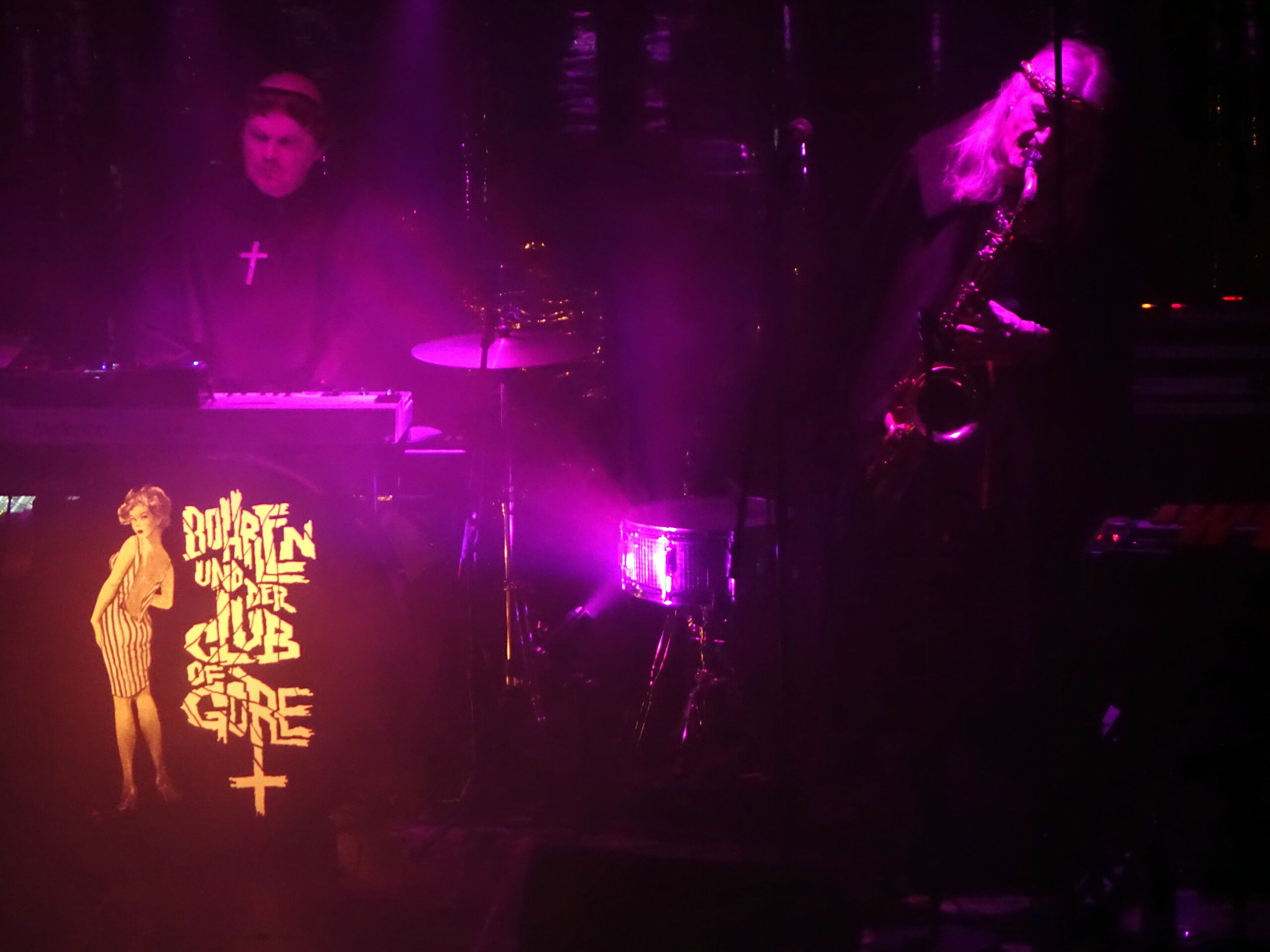 Schwere Klangflächen füllen ein Metrum, das so langsam wie Glockenschläge um Mitternacht dahin wandelt. Jeder Harmoniewechsel ist ein Ereignis für sich, weil eben in so weiträumige Taktung gesetzt. Keine heile Welt und bloß nichts in Dur – das ist Balsam für die Seelen der vielen meist dunkel gekleideten „Karnevalsflüchtlinge” an diesem Rosenmontag, an dem der Auftritt stattfindet. Alles entfaltet durch die radikale Minimierung von Licht und Tempo umso mehr expressive Wucht: Mal ein tieftrauriges Arpeggio über die Gitarrenseiten oder ein Ennio-Morricone-Riff – oder ein einsam klingender, aber bald auch wieder vergehender Hammondorgel-Sound. Über allem schwebt, klagt und betört das bittersüße Saxofon, traurig, tröstend, weiträumig atmend und oft alles zugleich. Sanft plüschige Romantik und tragische Schönheit verführen zum Darinversinken.