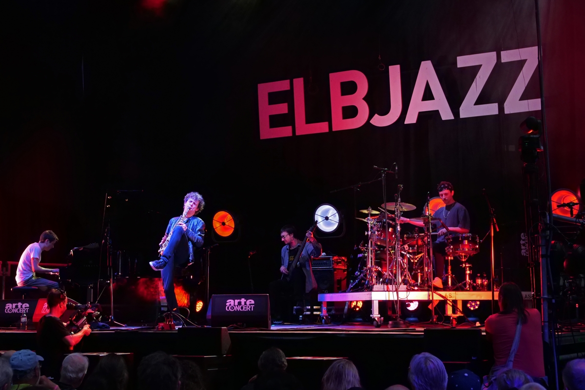 Die verschiedenen Spielstätten beim Elbjazz: Das Blohm + Voss Gelände beherbergt Open Air die Hauptbühne, Am Helgen und einen Jazz Truck, sowie die Schiffbauhalle. Alles in allem fanden hier etwas mehr als die Hälfte aller Konzerte statt. Der Rest verteilte sich auf die Elbphilharmonie, St. Katharinen und die HFMT Young Talents Bühne, wo wir gleich bei der Qual der Wahl eines Festivals sind. Möchte man ein Konzert in der Elbphilharmonie oder gar in St. Katharinen besuchen, muss man die nicht gerade triviale Wegezeit von Blohm + Voss per Bus, Barkasse oder zu Fuß durch den alten Elbtunnel einkalkulieren. Damit erledigen sich dann einige Konzerttermine auf den Open-Air-Bühnen, da man es, einmal runter von Blohm + Voss, kaum noch schafft wieder zurück auf das Festivalgelände zu kommen. Auch die anfängliche Begeisterung für die Elbphilharmonie hat dieses Jahr nachgelassen. Konzerte wie z. B. das Tomeka Reid Quartett waren nur zu 40 Prozent gebucht. Das nächste Problem sind die Konzerte in der Schiffbauhalle. Einmal drin ist alles gut, wenn man zwischendurch aber ein Open Air Konzert besuchen möchte, wie z. B. das Michael Wollny Trio auf der Bühne Am Helgen, hat man am Abend dann kaum noch eine Chance wieder hinein zu kommen, geschweige denn einen guten Platz in der bestuhlten Halle zu bekommen.