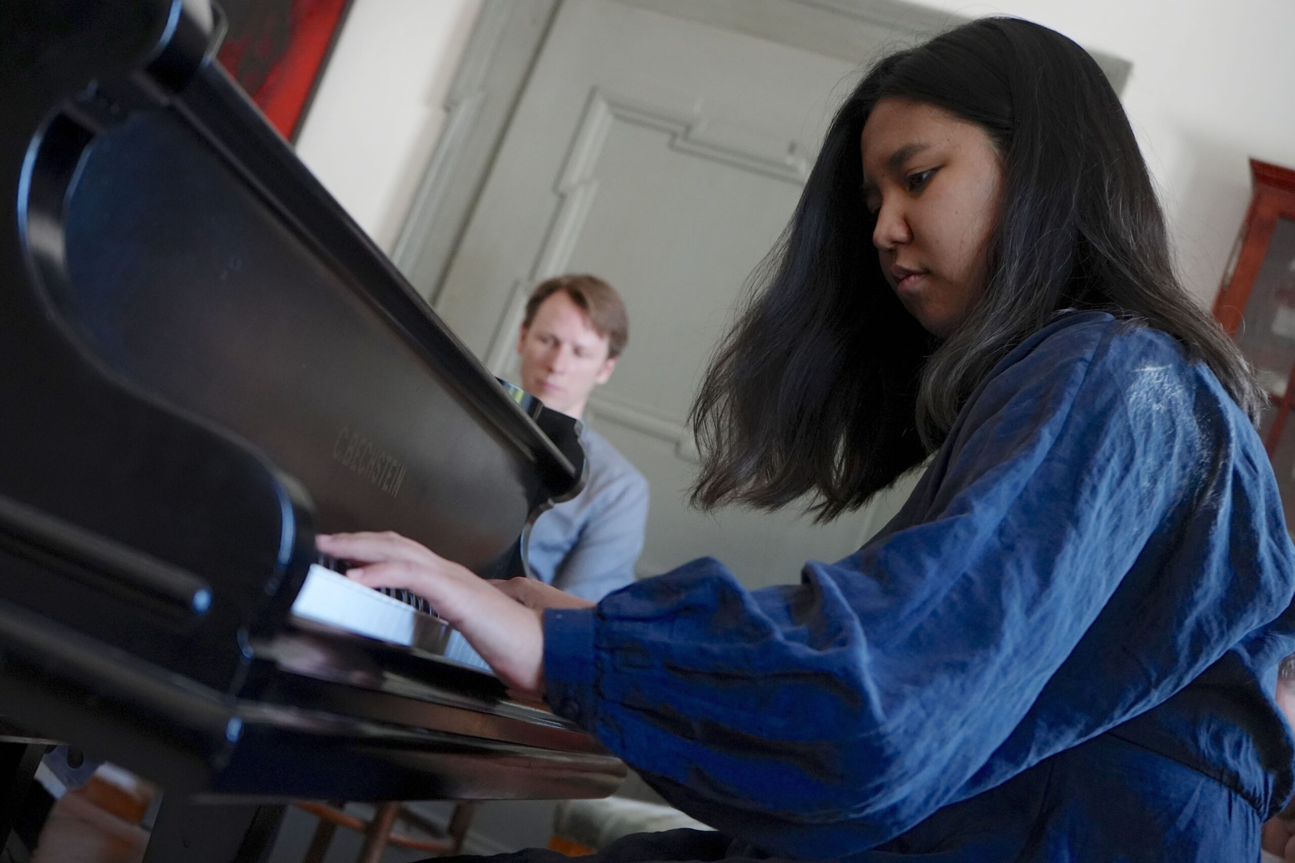 Der Pfarrhof wurde einer der Spielorte, in dessen Privaträume die Witwe des Komponisten Gerhilde Winbeck mit charmanter Grandezza einlud. Die Pianistin Shuteen Erdenebaatar und das Duo Manuel Adt und Kathrin Isabelle Klein präsentierten im Salon des Hauses Stücke aus eigener Feder, von Kokurator und Moderator der Veranstaltung Henrik Ajax und von Adriana Hölszky, ernst dunkle, aber auch schweifend harmonisch schwelgende Klavierexkurse mit der Tendenz, im Hören aus den Räumen hinaus in eine Welt zwischen Abstraktion und Emotion zu führen. Das Publikum genoss Musik und Stimmung zwanglos über die Räume verteilt, ein schon beinahe surreales Kontrasterlebnis von intellektueller, interpretatorischer Verdichtung und regionaler, lebensweltlicher Präsenz.