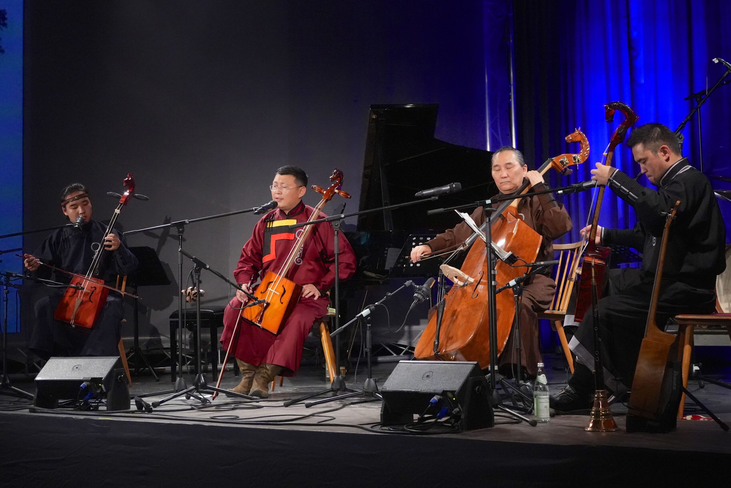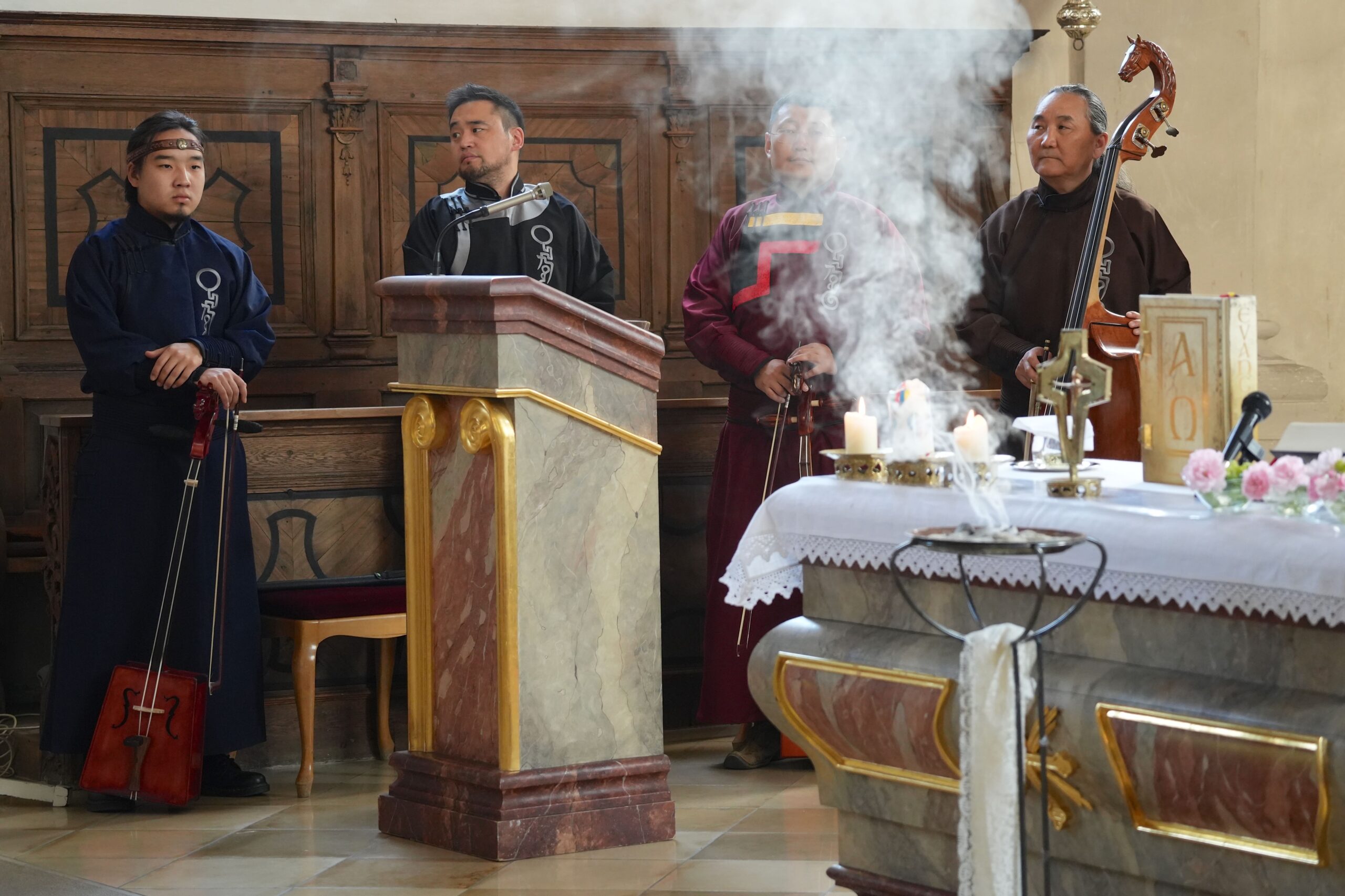 Mehr noch bekam man dieses Gefühl bereits in der Früh, beim ersten Programmpunkt des Tages. Die Pfarrkirche St.Johannes lud zur Messe, Robert Lehner gestaltete die Orgelpassagen frei und pathetisch voluminös, das mongolische Quartett Ensemble Tengerton integrierte Kehlkopfgesang und Kniegeigen in die Liturgie. Rituelle Welten trafen aufeinander, die Nähe des katholischen Gottesdienstes mit Weihrauch, gewohnten Abläufen und die Ferne einer Klangkultur, die überraschend melodisch und betören profund die Menschen rührte. Abends zog das Ensemble dann in die Drei-Burgen-Halle weiter und stellte nach Henrik Ajax „Rhythmusstörung“ mit Adt und Klein seine zwischen Pferdeliedern und Bergblues changierende, trotz tendenzieller Fremde eigentümlich vertraute wirkende mongolisch-europäisierte Stilmischung vor, die dann von Erdenebaatar in der vierteiligen Auftragskomposition „Mother Earth“ mit Klavier und Flöte zu kammermusikalischen Hörbildern verbunden wurde. Ein Jazz-Set mit Erdenebaatars Quartett vervollständigte den „Riedenburger Tag der Gegenwartsmusik“ durch das Element der Improvisation. Der Weg in die Region war eine Erfahrung, ein Erlebnis.