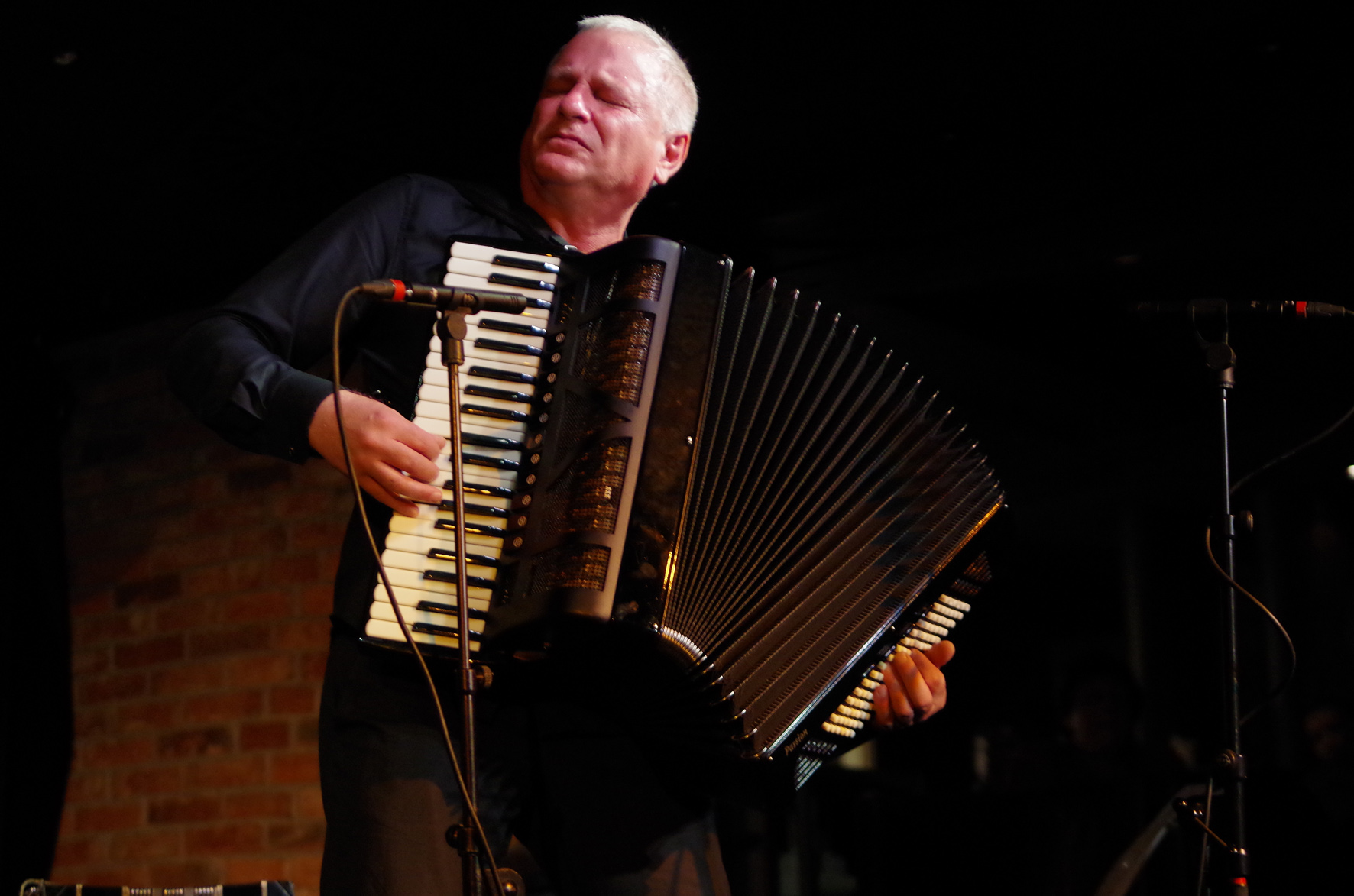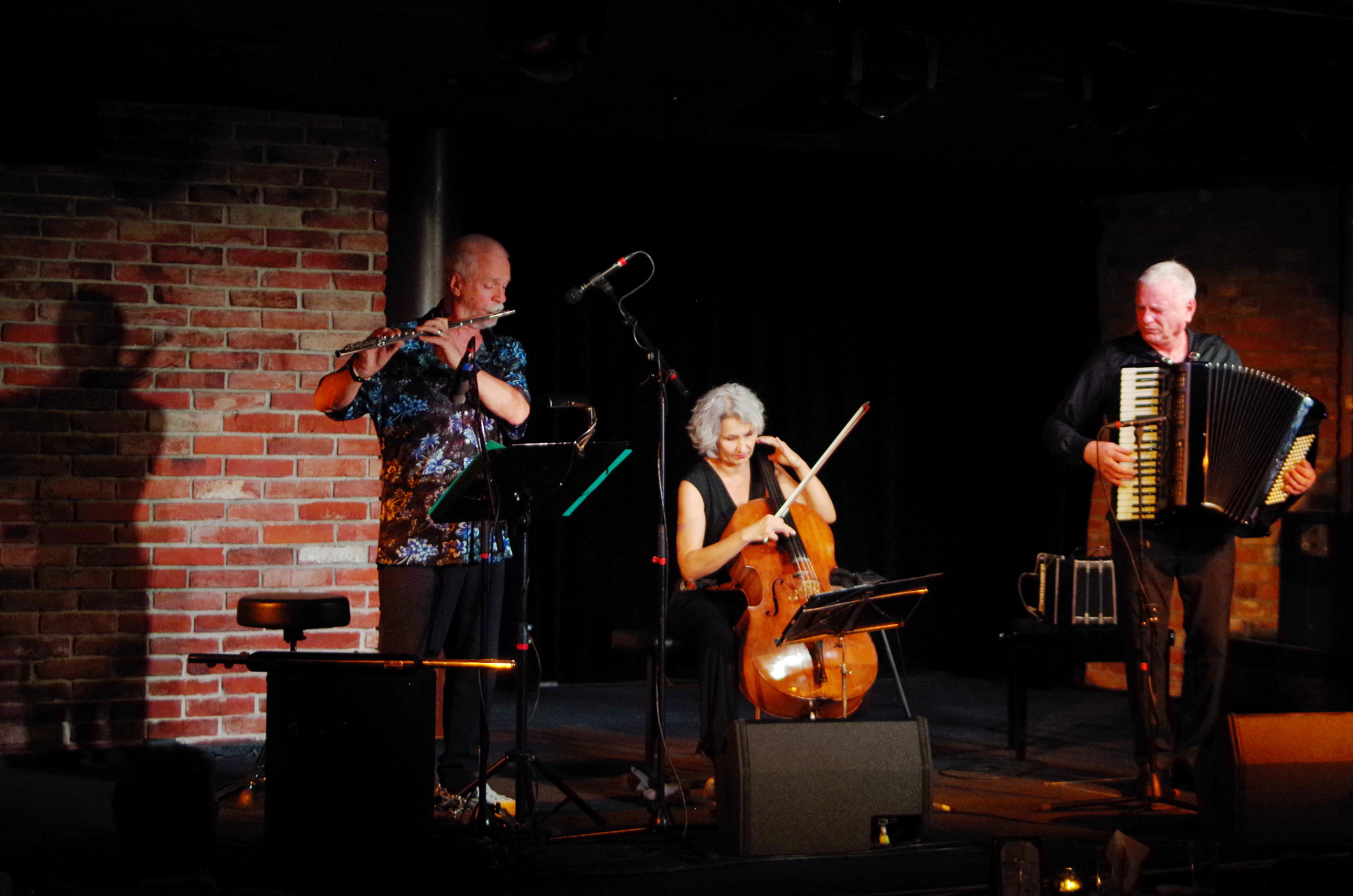 So viel tosenden Applaus gab es erst wieder im Schlusskonzert mit Nils Petter Molvaer, Jo Berger Myhre an Bass und Gitarre und Erland Dahlen am Schlagzeug, für den verhangenen Trompetenklang über einem auf und ab schwellenden Gruppensound mit donnernden Grooves und feinsten leisen Momenten. Dazwischen lagen vier weitere eher leise, von rhythmischen und melodischen Elementen geprägte Konzerte: Das meditative Quartett-Programm „Monkey Mind“ von Pohjola und das freie Duo-Zusammenspiel von Laura Jurd mit Pianist Elliot Galvin, sozusagen einer intimen Hälfte des Quartetts Dinosaur. Dafür holte sich das österreichische Duo Klaus Paier und Asja Valcic an Akkordeon, Bandoneon und Cello erstmals als Gast Wolfgang Puschnig am Alto und meistens an der Flöte hinzu. Und als Kontrast zur Jazzrausch-Bigand erklang anschließend im Night-Club Keller der gar nicht immer wehmütige Fado-Jazz von Pianist Júlio Resende, Bruno Chaveiro auf der portugiesischen Gitarre, André Rosinha am Bass und Alexandre Frazão am Schlagzeug.