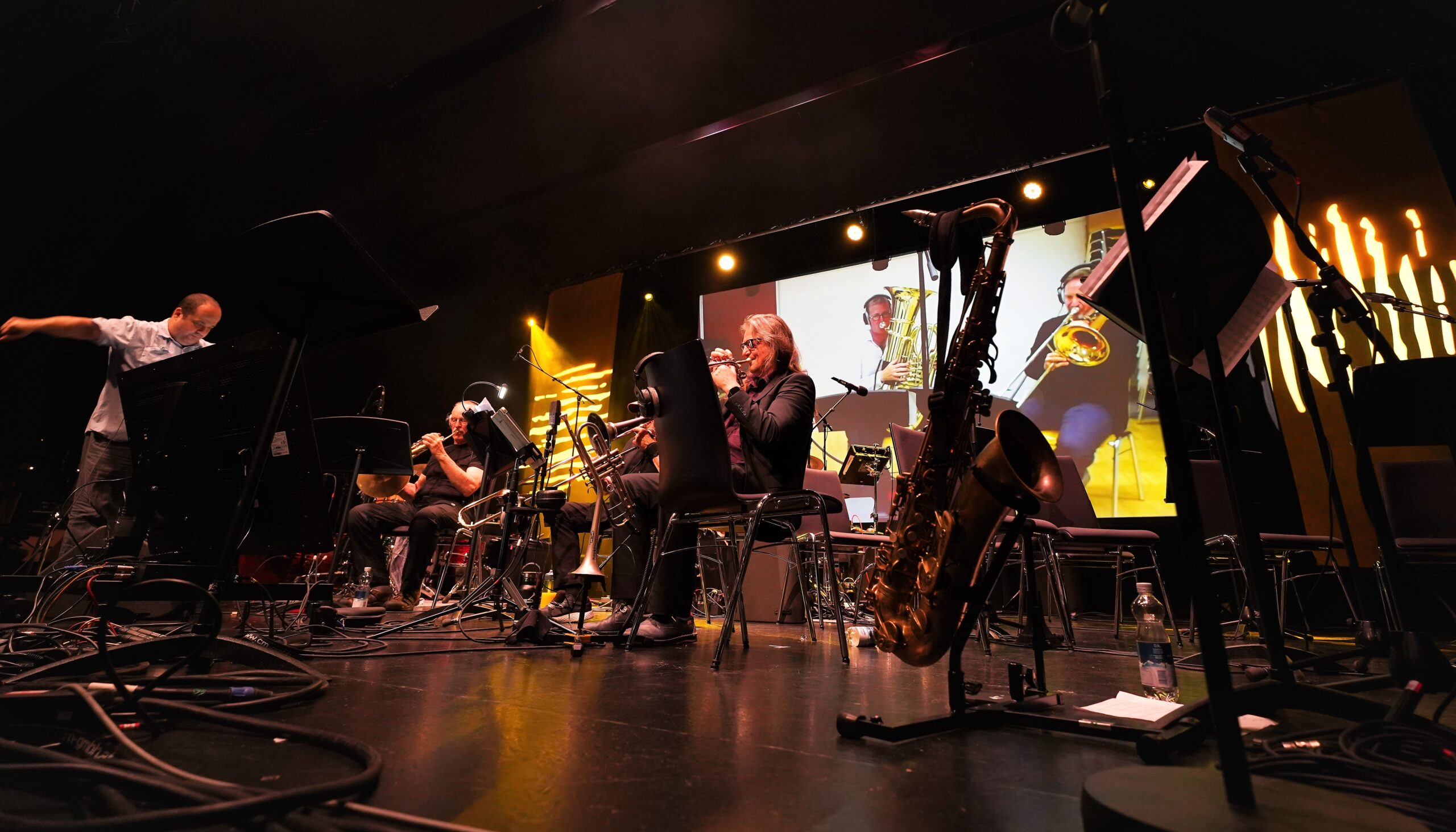 Kaum weniger abwechslungs- und doch beziehungsreich der zweite Abend mit dem dynamisch-überraschenden Sketchbook-Quartett des großartigen Saxofonisten Leonhard Skorupa aus Österreich, dem mit Recht bereits als neues junges Allstar-Truppe gefeierten Quartett des Pianisten Luca Zambito aus München und Hackls traditionell mitmischendem, international besetzten, und mit seiner Blechblas-Tiefton-Wucht begeisternden Outreach Orchestra.