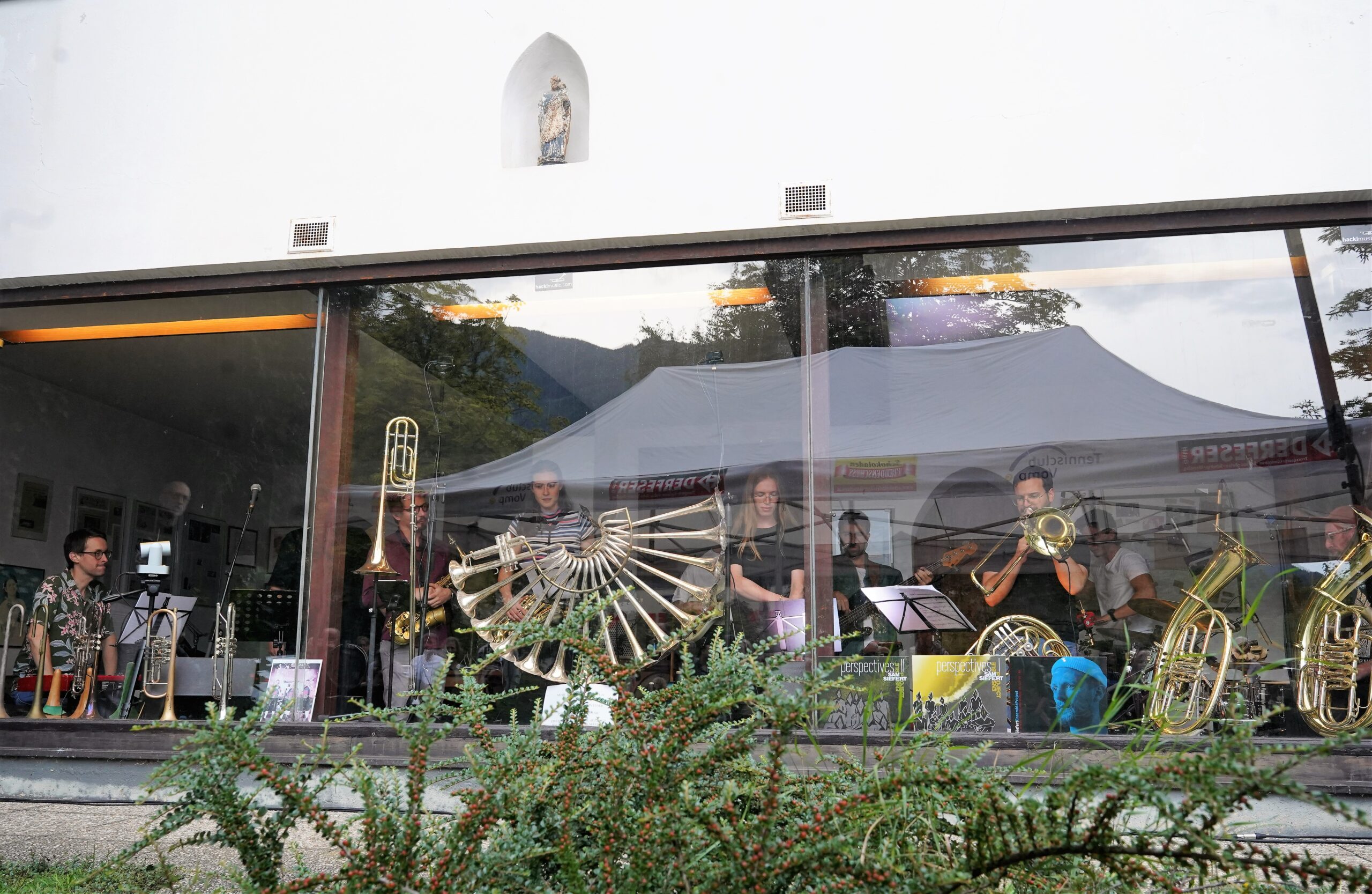 Was sich während Corona aus der Not ergeben hatte, dann als spannende Innovation erwies, hat Hackl beibehalten: Es gibt keinen konventionellen Ablauf mehrerer Konzerte, die drei Ensembles jedes Abends stehen im exzellenten Konzertsaal des SZentrums gleichzeitig auf der Bühne und spielen abwechselnd drei kurze Sets. Der früher eher stiefmütterlich beachtete erste Act hat seinen eigenen Raum bekommen, als über eine ganze Woche gestreute Schaufensterkonzerte in der Hackl’schen Trompetenmanufaktur in Hörweite auf der anderen Innseite. Dort hat damit gleichzeitig die junge Tiroler Szene ihre eigene Plattform bekommen.