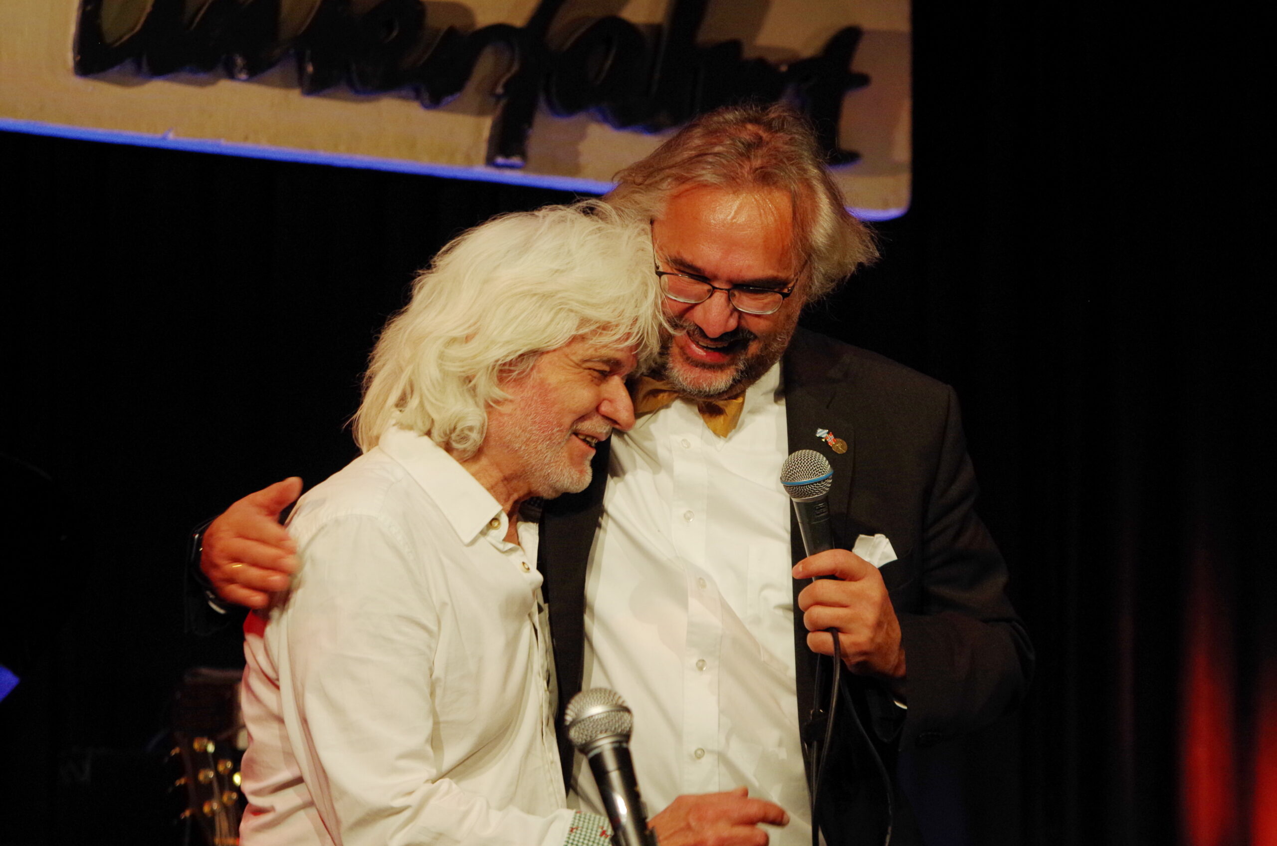 Michael Stückl, Vorstand des Jazzclub Unterfahrt, hatte sich auf Wunsch des Jubilars eigens in Schale geworfen. Schließlich machte ihn dieser als 15-Jährigen erst zum Jazz-Freund und dann -Veranstalter. Und so begrüßte er Wolfgang Schmid, den Bandleader des Abends und Aufsichtsratmitglied des Förderkreis für Jazz und Malerei e. V. besonders herzlich vor dem Konzert.