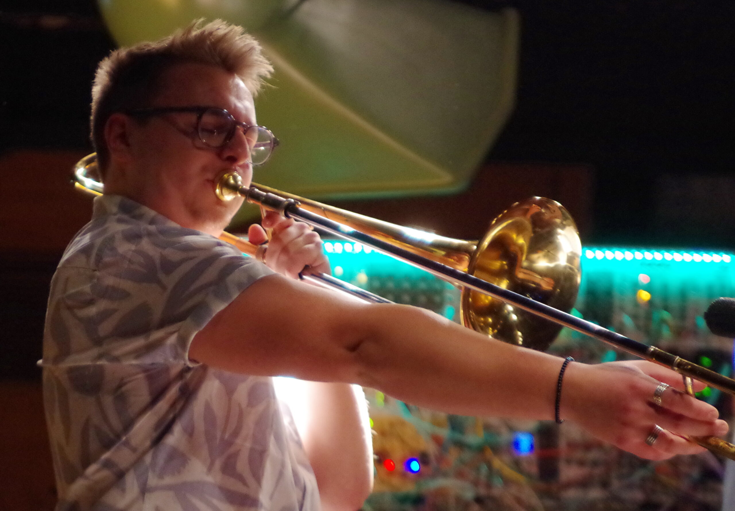 „Renner“, die andere Nachwuchsband des Festivals, heißt nach den Brüdern Moritz und Valentin Renner, Posaune und Schlagzeug, die sich mit dem preisgekrönten Shouting Star Nils Kugelmann am Kontrabass zu einer seltenen, wenn auch nicht vorbildlosen Besetzung zusammen getan haben. Der Auftritt des Trios mit oft getragenen Eigenkompositionen der Brüder war Teil ihrer Preisträgertournee als Gewinner des Kemptener Jazzpreises 2023 des Bayerischen Jazzverbandes. Anschließend bewies der seit langem in München lebende Márcio Tubino mit seinem ARTet mit dem brasilianischen E-Pianisten Ricardo Fiúza, Trompeter Julian Hesse, Bassist Peter Cudek und Schlagzeuger Chris Holzhauser, dass brasilianisches Jazzfeeling nicht zwingend in Sambas und Bossas mündet, wohl aber in lebendige rhythmisch-melodische Musik.