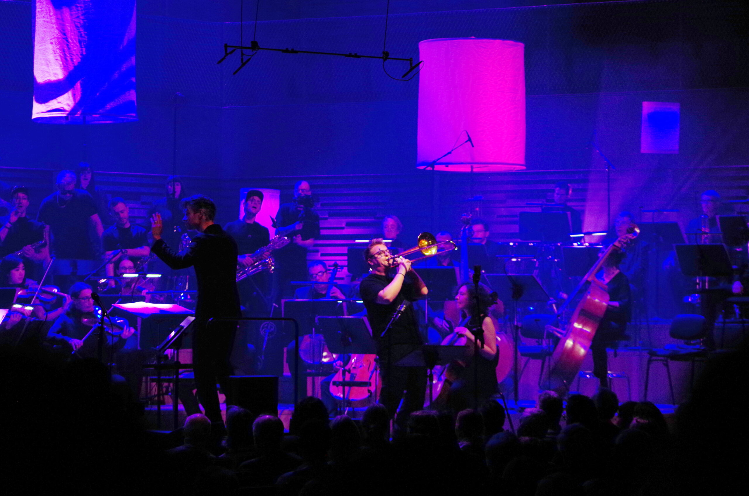 Der so umtriebige wie geschäftstüchtige Band-Gründer und -Leiter Roman Sladek ist mit seinem Weihnachts-Projekt auch beim weihnachtsaffinen Label ACT auf offene Ohren gestoßen; nach dem ersten Album mit dem dieser Bigband Hohn sprechenden Titel „Still! Still! Still!“ folgte folgerichtig im letzten Jahr „Alle Jahre wieder!“. In München gab es heuer mit diesem Programm nach einem Doppelkonzert im Jazzclub Unterfahrt auch wieder ein Weihnachtskonzert in der Isarphilharmonie. Und da Sladek und die JRBB immer für Überraschungen gut und auf der Suche nach Neuem und Ausgefallenem sind, dachte man sich für das Gasteig-Ausweichquartier etwas Besonderes aus. Zusammen mit den ebenso experimentierfreudigen Münchner Symphonikern tat man sich mit Unterstützung der Stadt München für ein weiteres Doppelkonzert zu einem fast 80-köpfigen Klangkörper zusammen, wie er in den USA in den 30-er Jahren beliebt war.