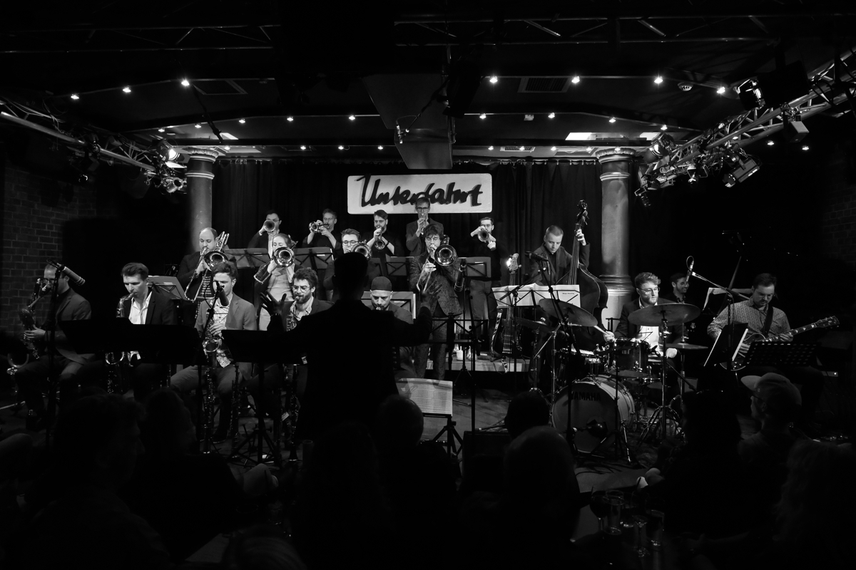 Die Munich Lab Band im Jazzclub Unterfahrt, diesmal unter der Leitung von Vincent Eberle,