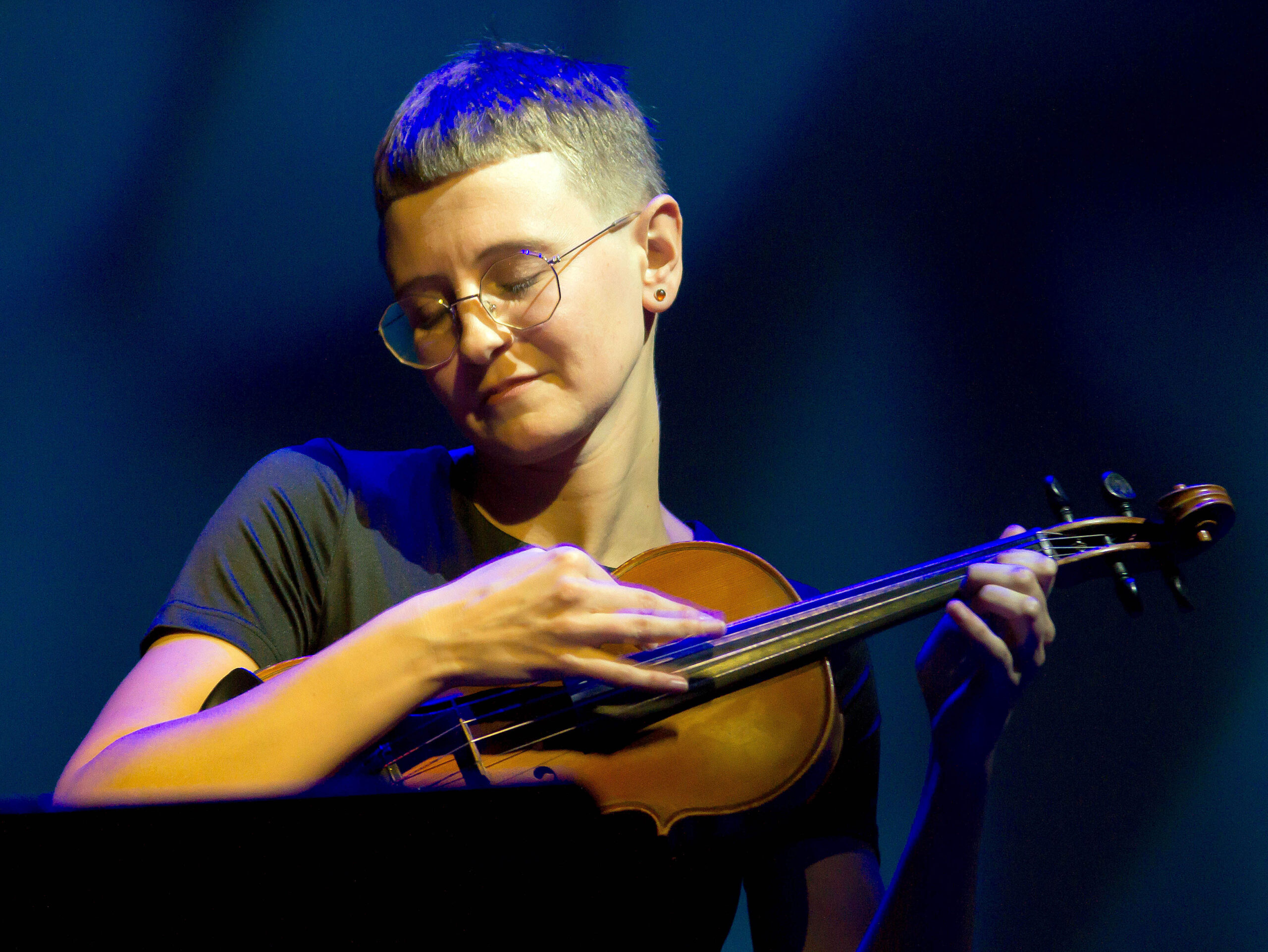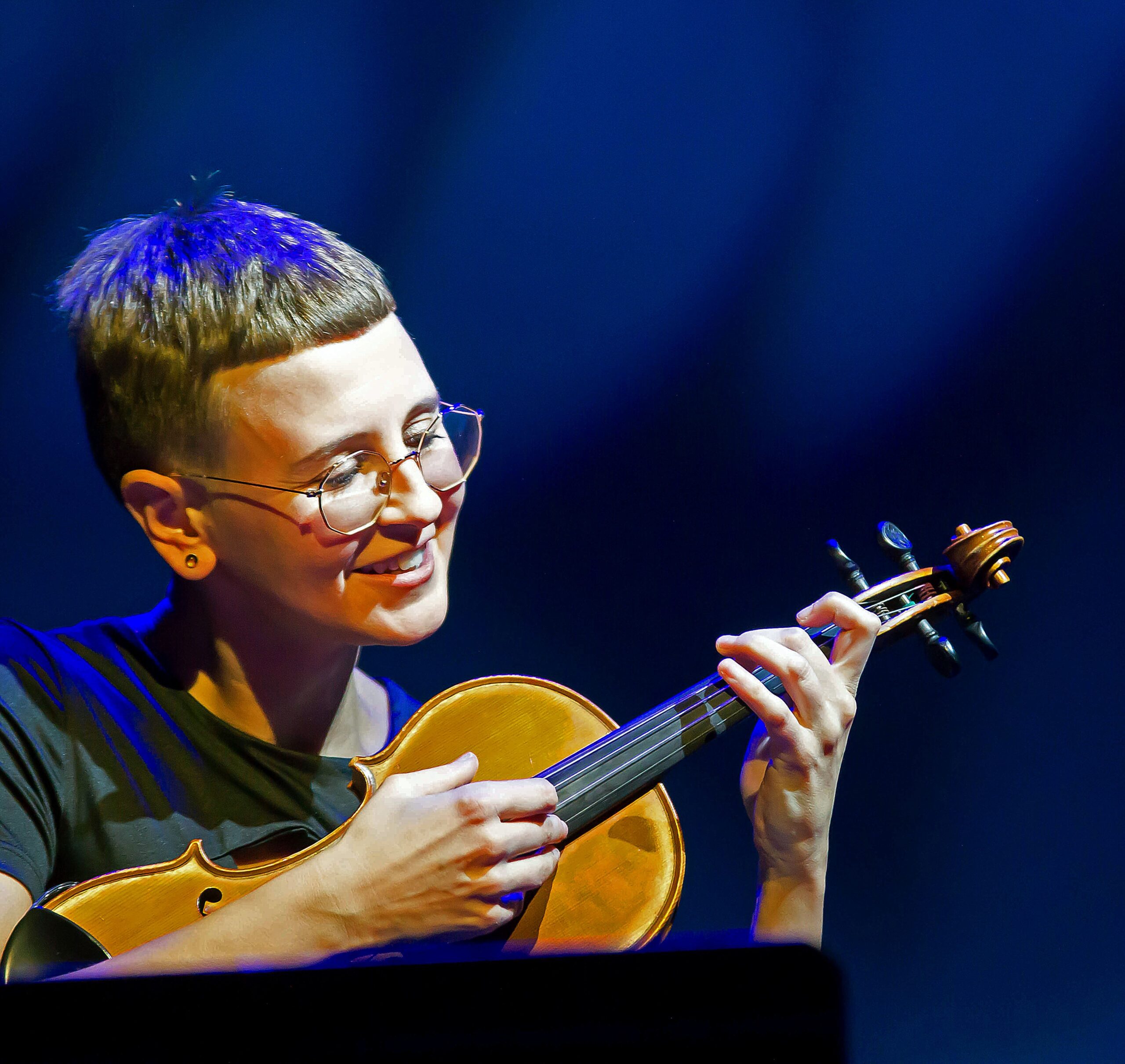 Kann man ein Instrument mehr lieben als diese junge Musikerin, die unter anderem das Orchestra Nazionale Jazz Giovani Talenti unter Paolo Damianis Leitung zu einer ihrer maßgebenden Talentschmieden zählt? Sie versteht und behandelt ihr Instrument ganzheitlich, so viel ist hör-, sicht- und spürbar. Zunächst spielt sich das Trio mit mehreren virtuosen Abgeh-Nummern warm, dann wird mit der Bearbeitung eines John-Cage-Stückes ein Schalter umgelegt: Die minimalistischen Texturen bieten Raum für maximale Improvisationslust. Schließlich nehmen sich die drei der wilden Leidenschaft und Rhythmik der osteuropäischen Musik an, nach wie vor auf einem Level, der die Luft brennen lässt.