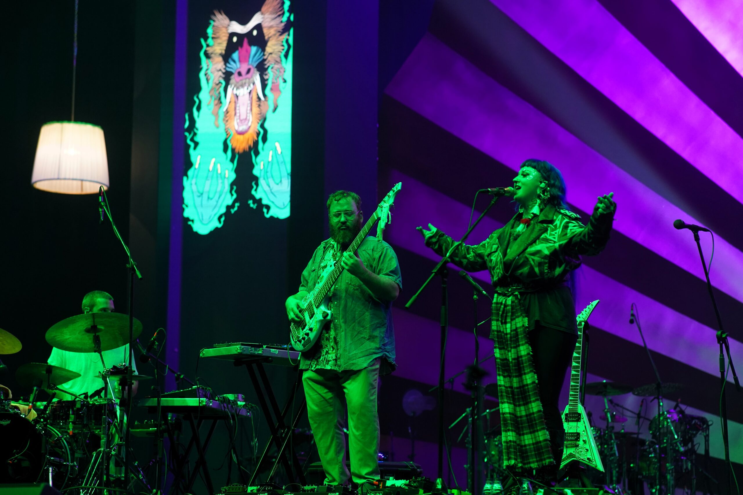 Einen höheren Jazzanteil hatten nur Kokoroko (vor allem dank ihrer Instrumentalsoli mit Trompete und Posaune) und natürlich Saxofonstar YolanDa Brown, in gewisser Weise auch die beiden Lokalmatadoren, die Quartette Majaz und Garwasha mit einem jeweils sehr arabisch eingefärbten Progressive- und Alternative-Underground-Jazz. Garwashas Gitarrist Mazen Lawand hat denn auch das Berklee College of Music absolviert, Bassist Abdulrahman „Koosh” Alkhawashki studiert gerade am Los Angeles College of Music. Beide können sie von der, auch dank der wachsenden internationalen Kontakte, aufblühenden Club- und Musikerszene in Riad berichten („Metal ist gerade am stärksten im Kommen“).