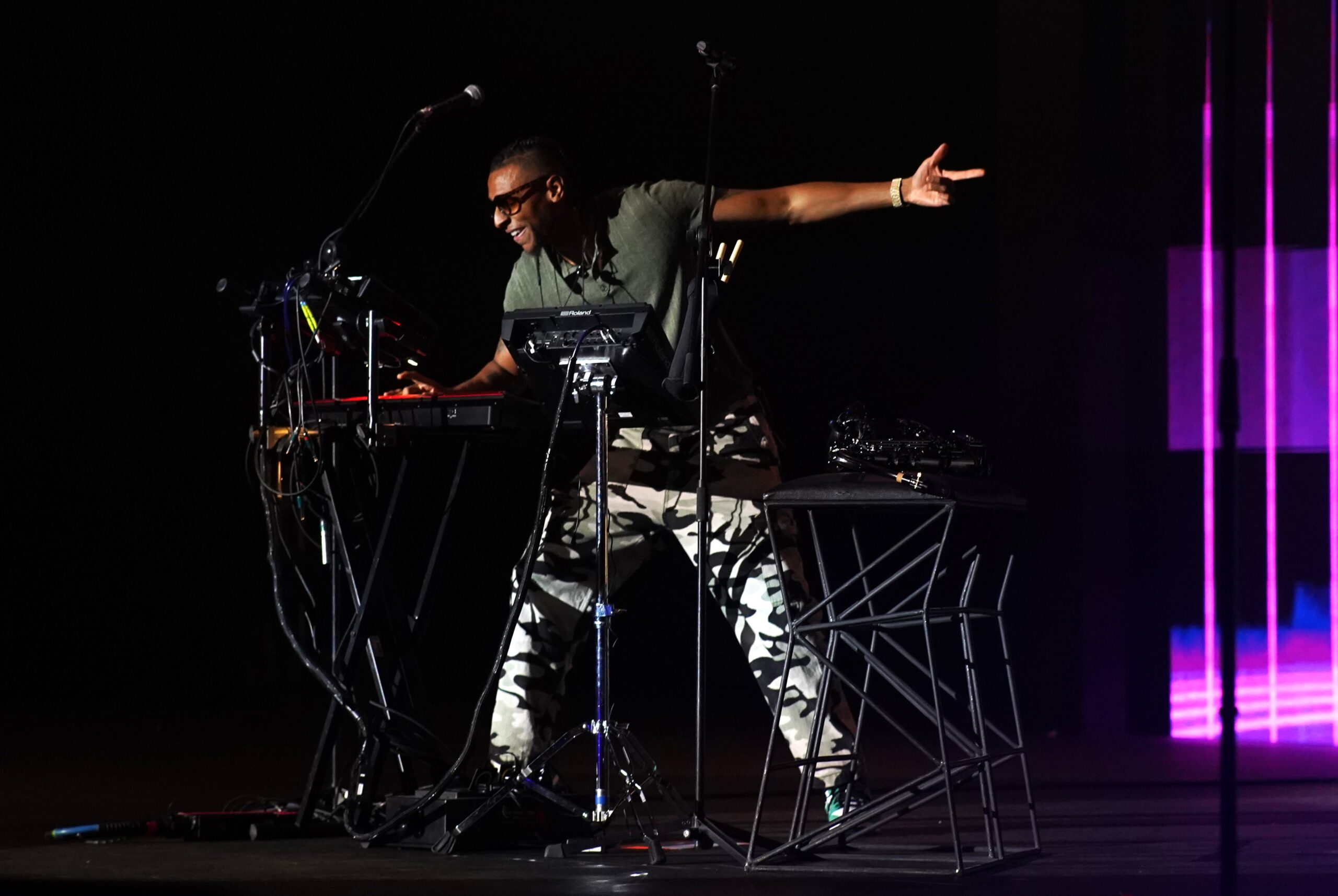 Beim extrovertierten Amerikaner Micah Davis, besser bekannt als Masego, wollte man am dritten Abend noch skandalöseres Verhalten dann doch besser verhindern, mit Sperrgittern in den Abgängen und seitlich Spalier stehenden Security-Leuten. Vielleicht nicht zu Unrecht angesichts seiner typisch amerikanischen Attitüde, und der Tatsache, dass außerehelicher Sex hier immer noch mit dem Tod bestraft werden kann. Umso unüberlegte wie deplatziert wirkt seine Begrüßung: „All I know about this country ist that I have good dates“. Was freilich die lautstarke Begeisterung für den 30-jährigen Grammy-Nominee nicht trübte, der im arabischen Raum noch populärer ist als im europäischen. Mit Recht, wie der sensationelle Auftritt des singenden, samplenden, Schlagzeug wie Saxofon spielenden Multitalents bewies. Rein musikalisch war es der Höhepunkt des Festivals, mit einem sich ständig weiterentwickelnden Stilmix aus Jazz, Hip-Hop, Reggae und Electro, mit der Variabilität eines Jacob Collier und dem Charisma eines Prince.